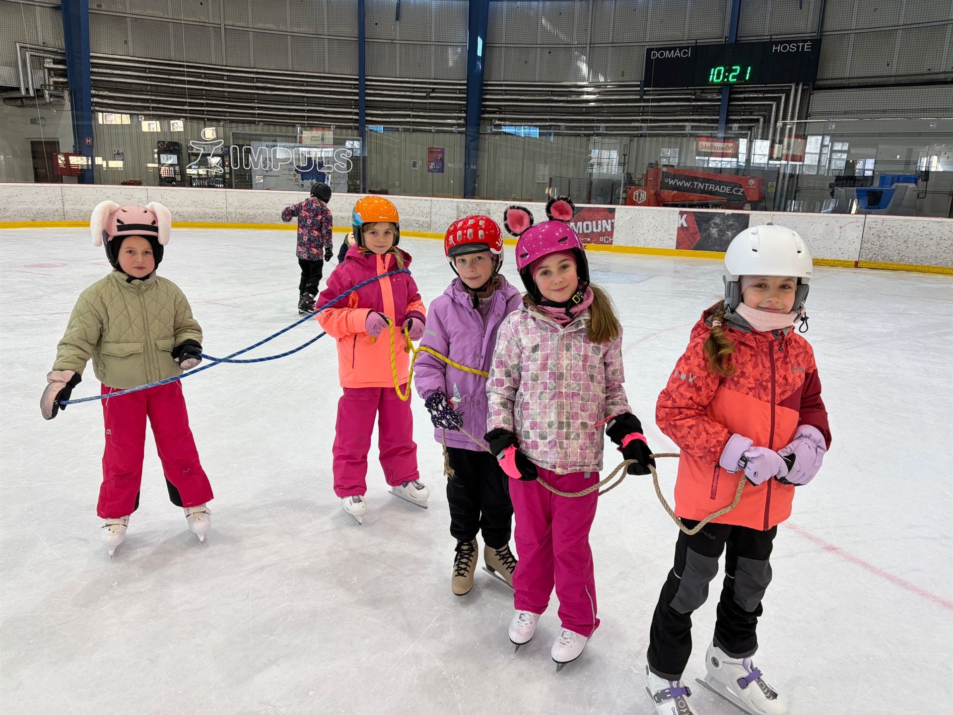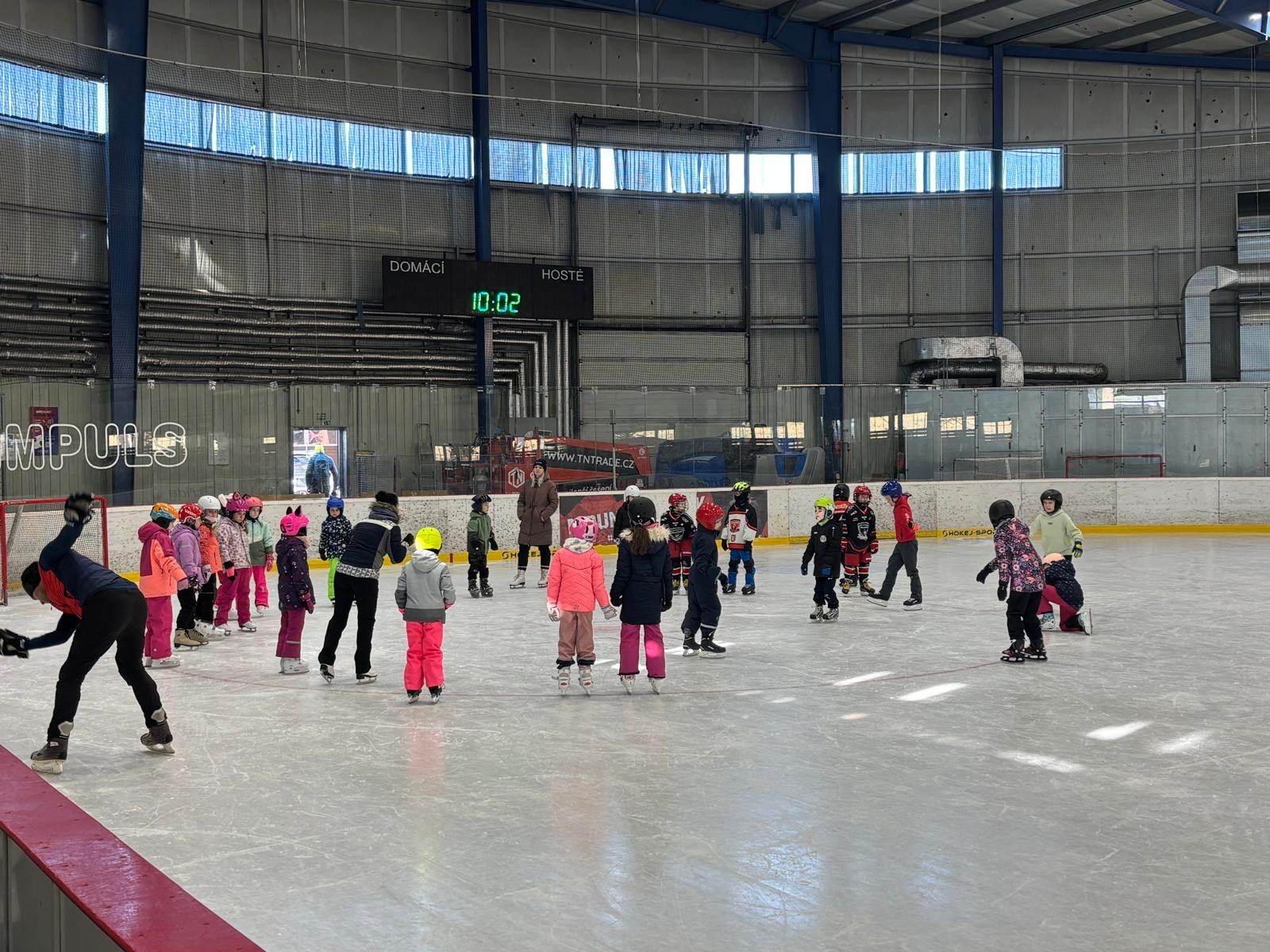 Dnes jsme naposledy zavítali na zimní stadion, abychom potrénovali bruslení. Hrazdičky už jsme nevyhledávali a všichni se statečně snažili bojovat a trénovat zimní sport. V polovině lekce jsme se opět rozdělili na bruslaře a hokejisty, které si převzali tatínkové na ledě a pomohli nám sestavit hokejové týmy. S ostatními jsme trénovali jízdu jednotlivců, dvojic, splnili i pár štafet a honiček. Děkujeme všem našim rodičům za skvělý servis (odvoz, vázání, pomoc na ledě). Brusle ještě uklízet nemusíte, protože s rodiči a kamarády to třeba ještě v závěru sezóny parkrát stihnete.