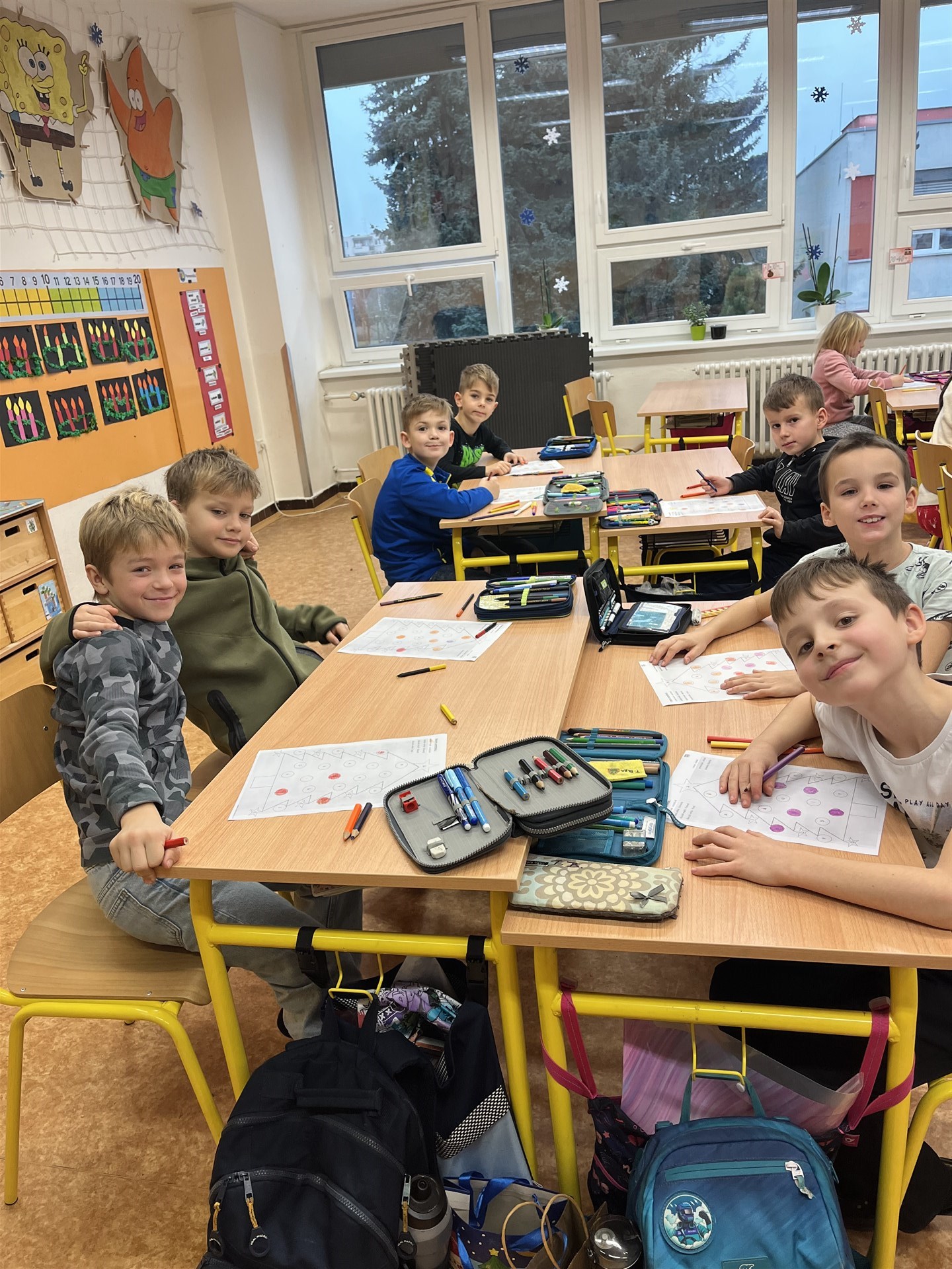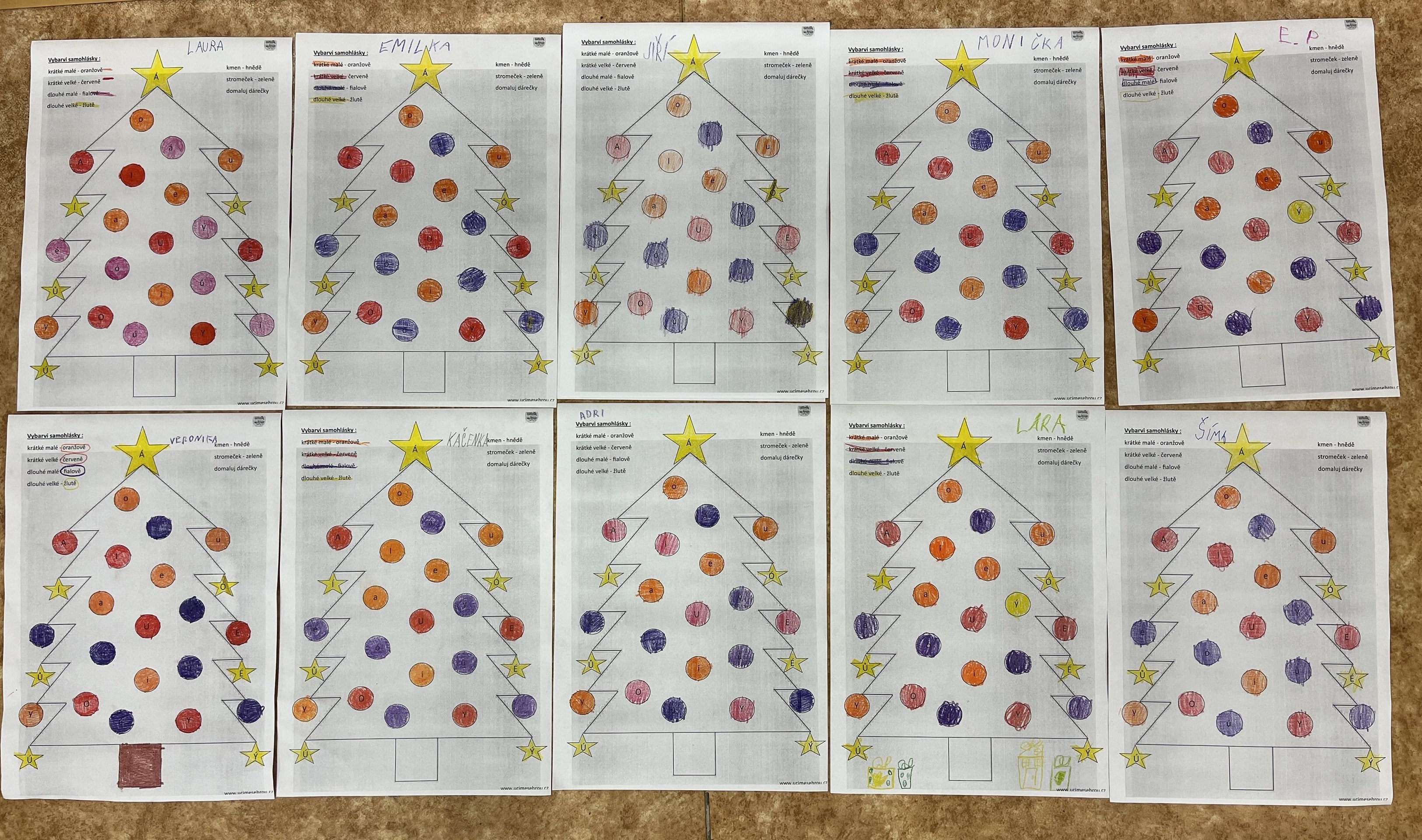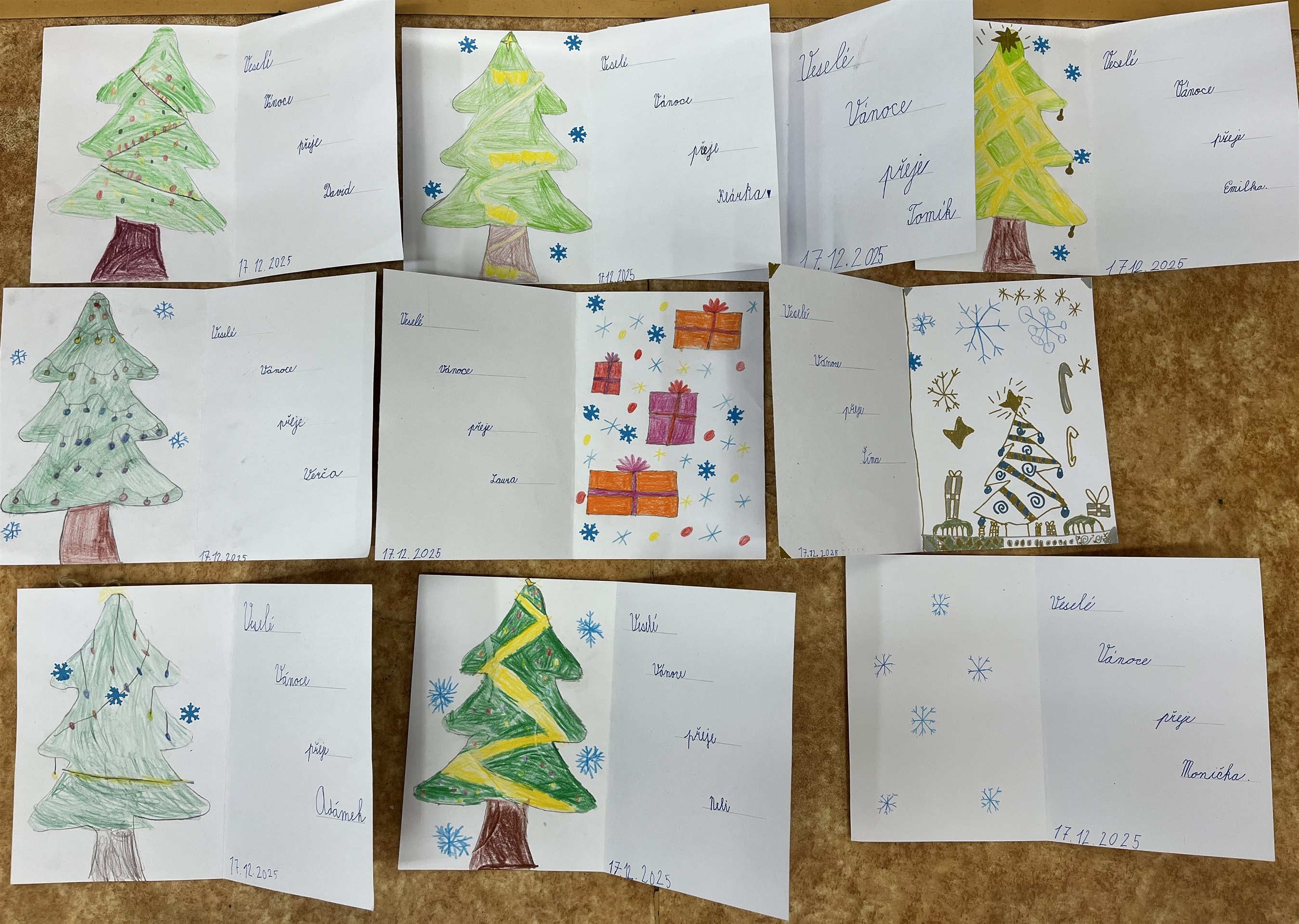 Dne 17. 12. 2025 jsme ve školních lavicích prožili vánoční týmové učení. Od začátku adventu si procházíme Adventní Déčko kalendář a ve třídě si denně plníme ten třídní (např.: O pět minut delší přestávka, Smyšlený příběh, Objetí toho, koho mám rád, …). V hodině českého jazyka jsme si zopakovali nově probrané samohlásky, interaktivně splnili přesmyčky a doplňovačky. Ve výtvarné výchově si žáci vytvořili přáníčka a dnes jsme jim dali i písemnou podobu. V matematice se někteří zabrali do vybarvování barevných počtů a jiní plnili interaktivní matematiku. Nesmělo chybět vánoční bingo. Poslední hodinu jsme se začetli do článku o Vánocích, sestavili stínové domino a za každou řadu vypustili lodičky. Po obědě nás čekal ten největší zážitek – rozbalování dárků od Ježíška. Přeji všem krásné svátky! Straňáková