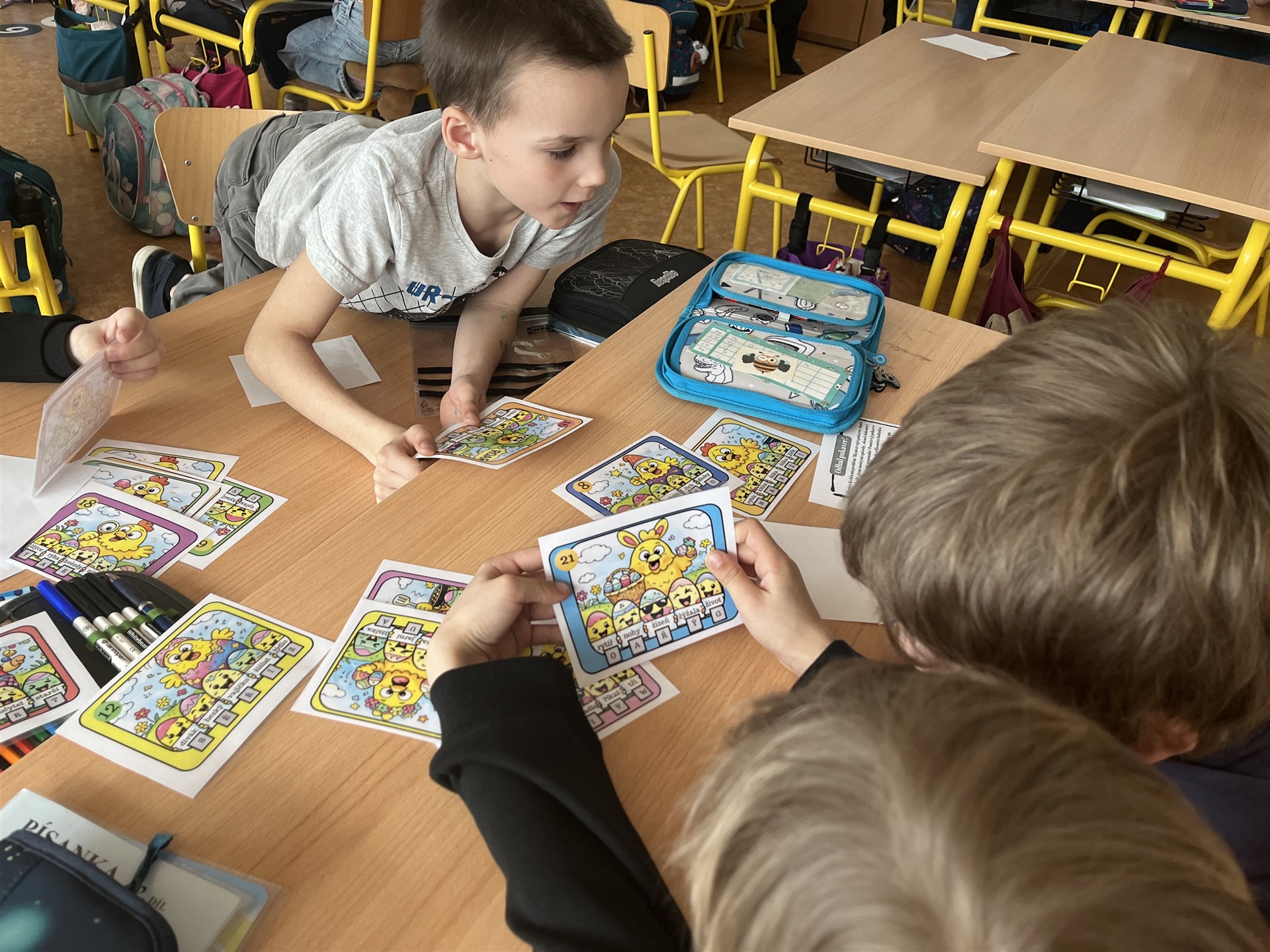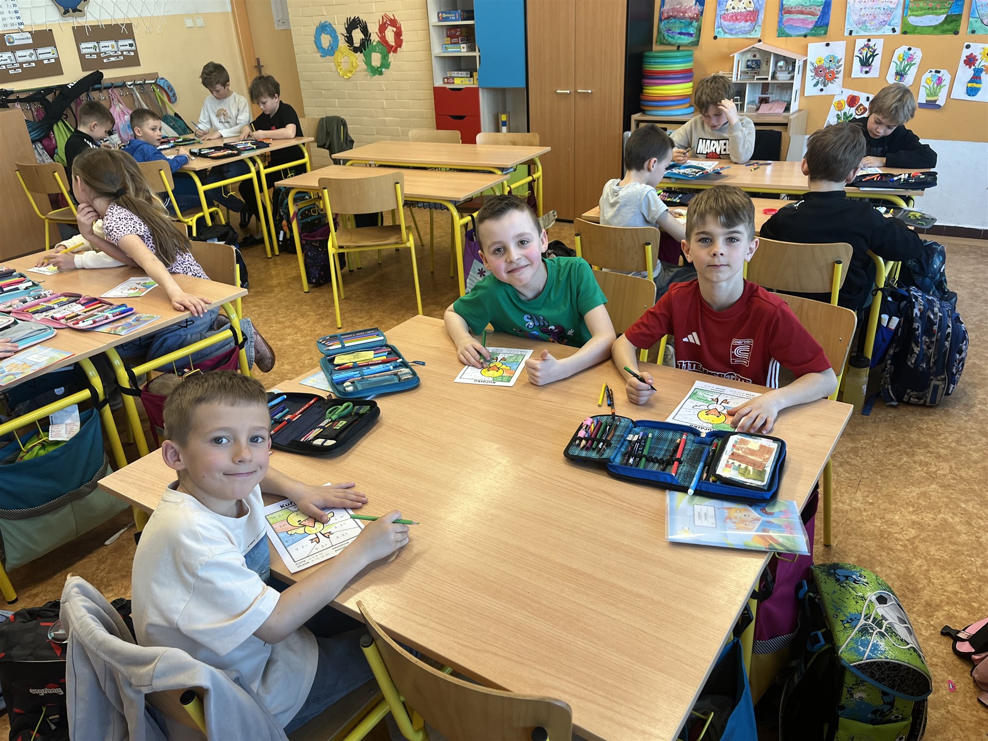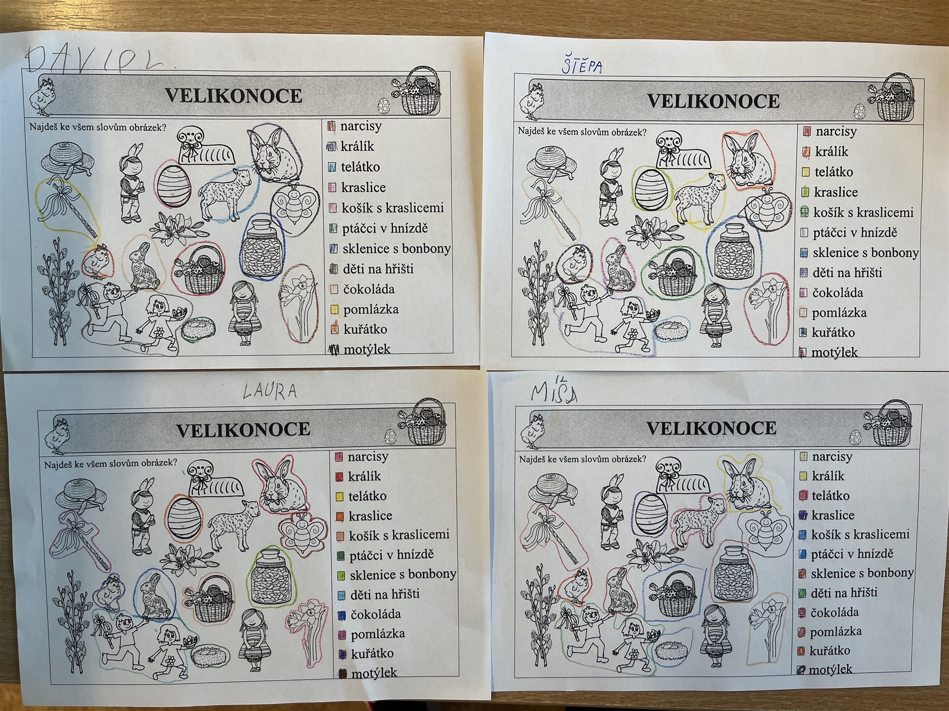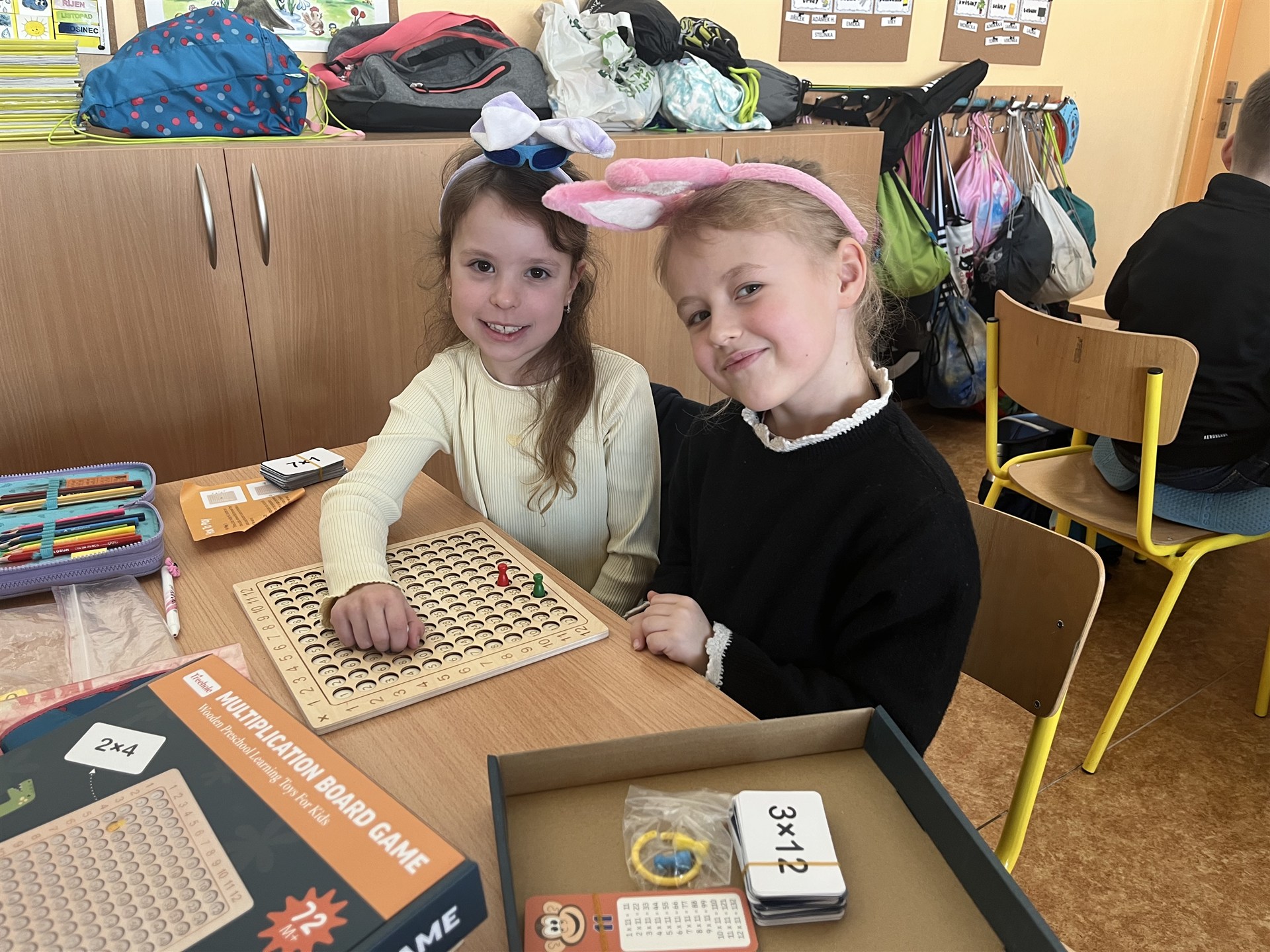 Dne 1. dubna jsme si propojili všechny naše znalosti z oblasti matematiky a českého jazyka a plnili celý den velikonoční úkoly. Nejdříve jsme rozklíčovali jednotlivé sváteční dny. Na interaktivní tabuli vyplnili pár záludných úkolů (osmisměrky, přesmyčky, doplňovačky, hádanky,...). Třetí hodinu jsme si zaskotačili v tělocvičně. Poslední hodinu jsme měli napilno, neboť jsme potřebovali stihnout deskovou hru na násobilku a také rozluštit pukavce slepičce Kvóče. Tajenkou byl vtip, kterému jsme se zasmáli: Jak můžeme vědět, že je mrkev zdravá na oči? Snadno. Už jste někdy viděli...ZAJÍCE, KTERÝ BY NOSIL BRÝLE?