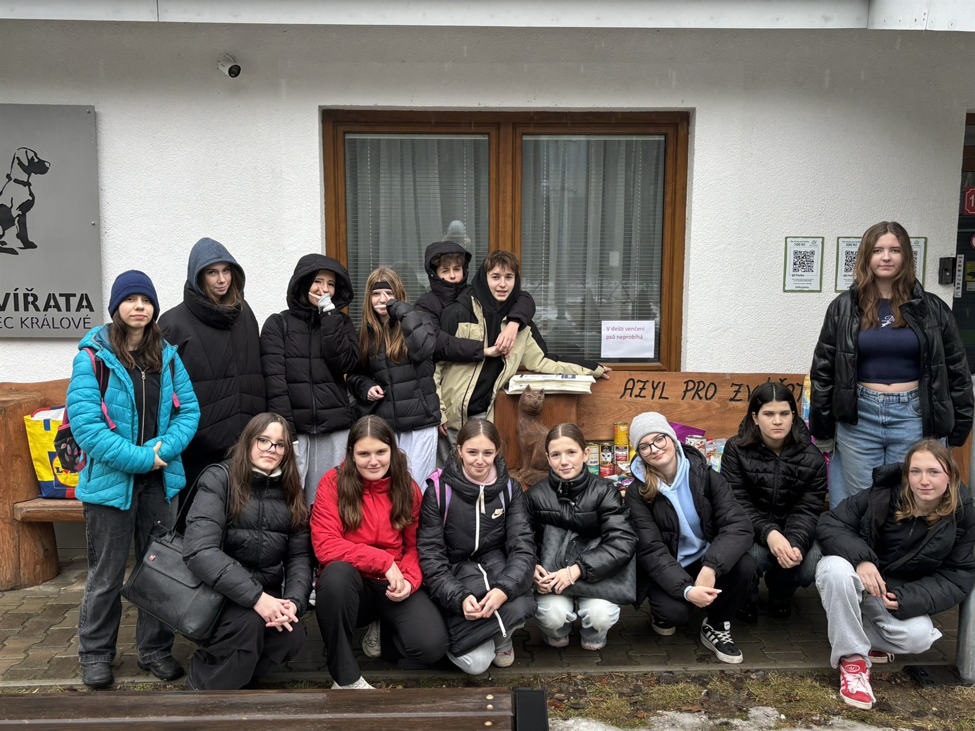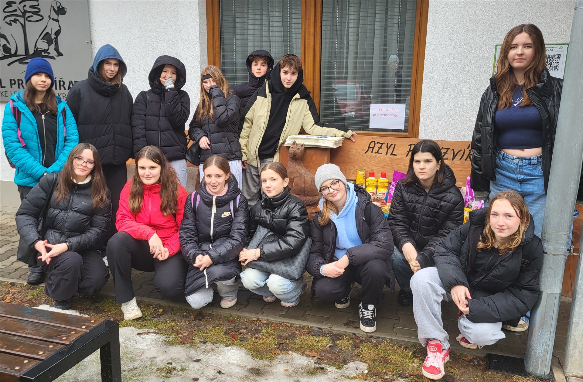 Ve čtvrtek 5. února pak deváťáci předali vybrané peníze i ostatní potřeby pracovníkům útulku.