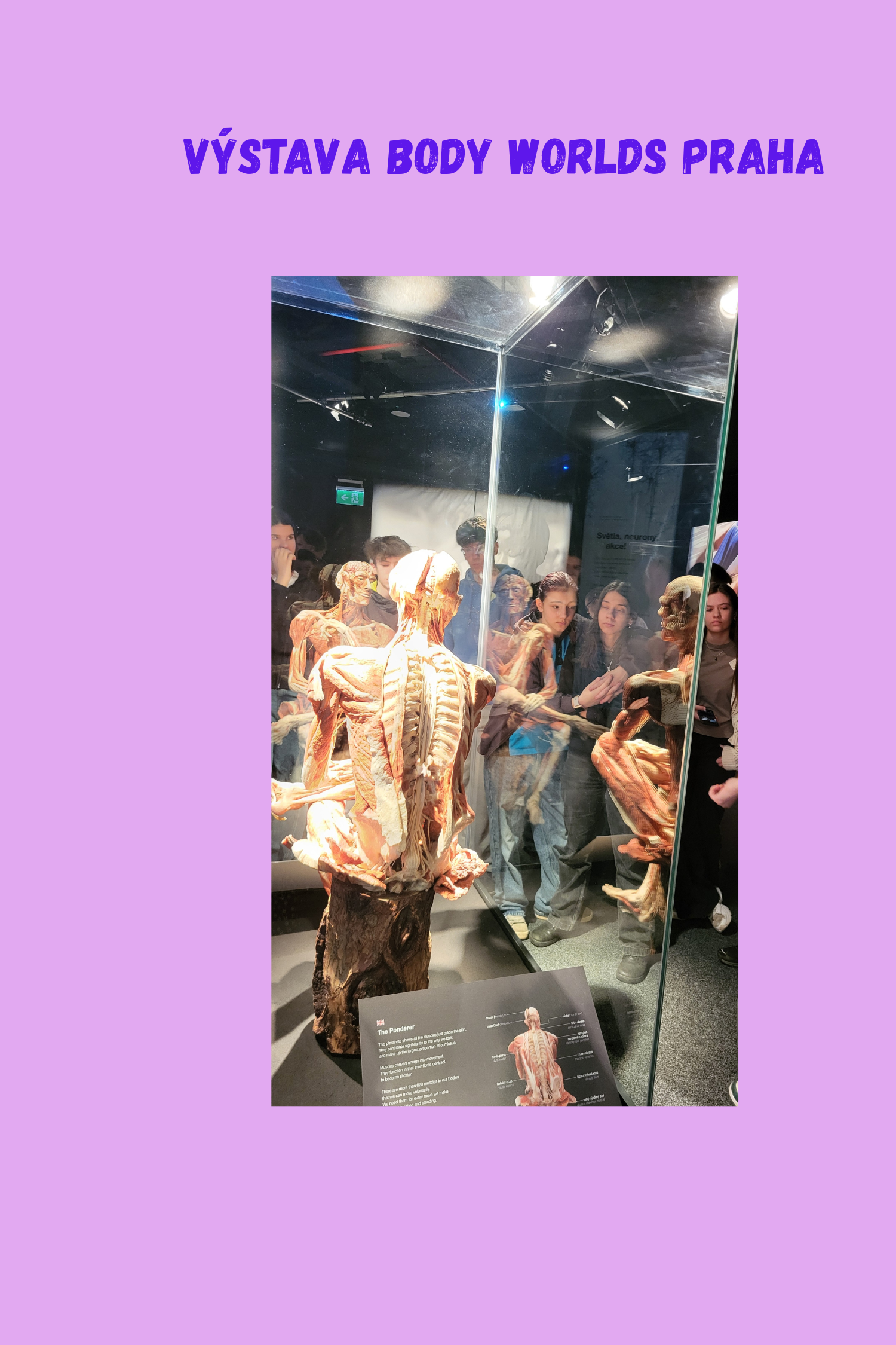 Tato pro někoho kontroverzní výstava poskytla žákům jedinečnou možnost poznání stavby lidského těla a vzdělání se v oblasti civilizačních chorob a závislostí. Žákům byly exponáty přiblíženy formou komentované prohlídky úměrné jejich věku zprostředkované studenty lékařské fakulty. Tím se stala výstava pro žáky mnohem více čitelnější a zajímavější.