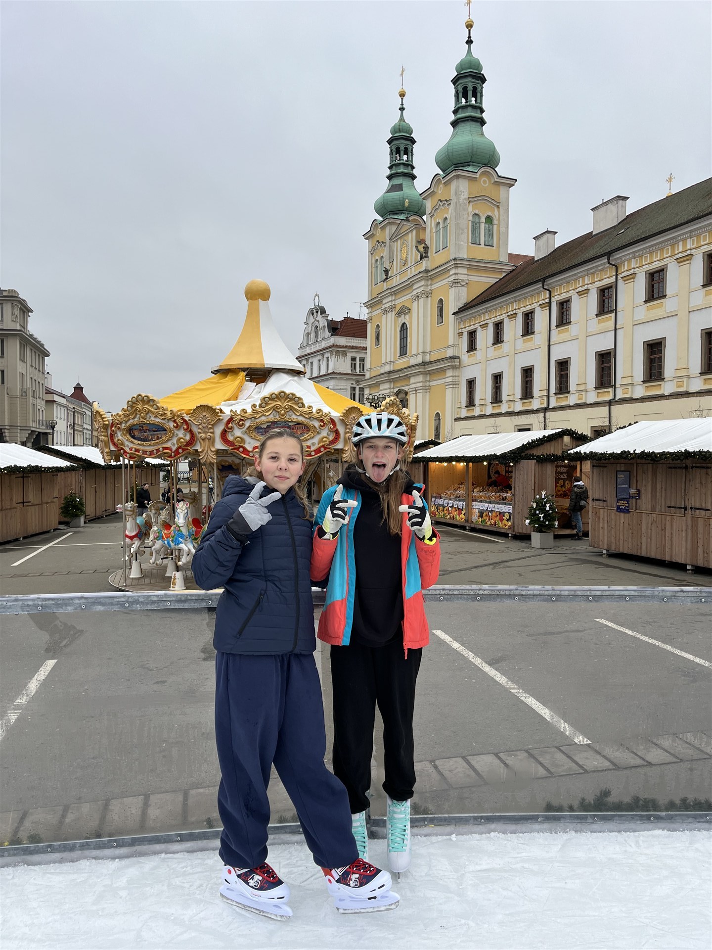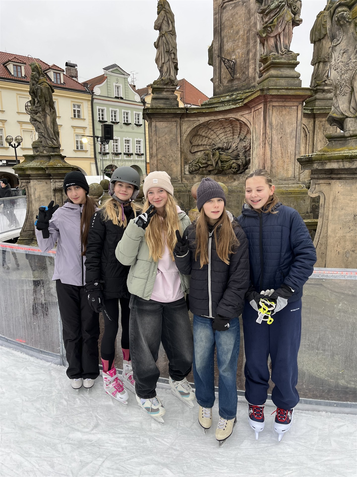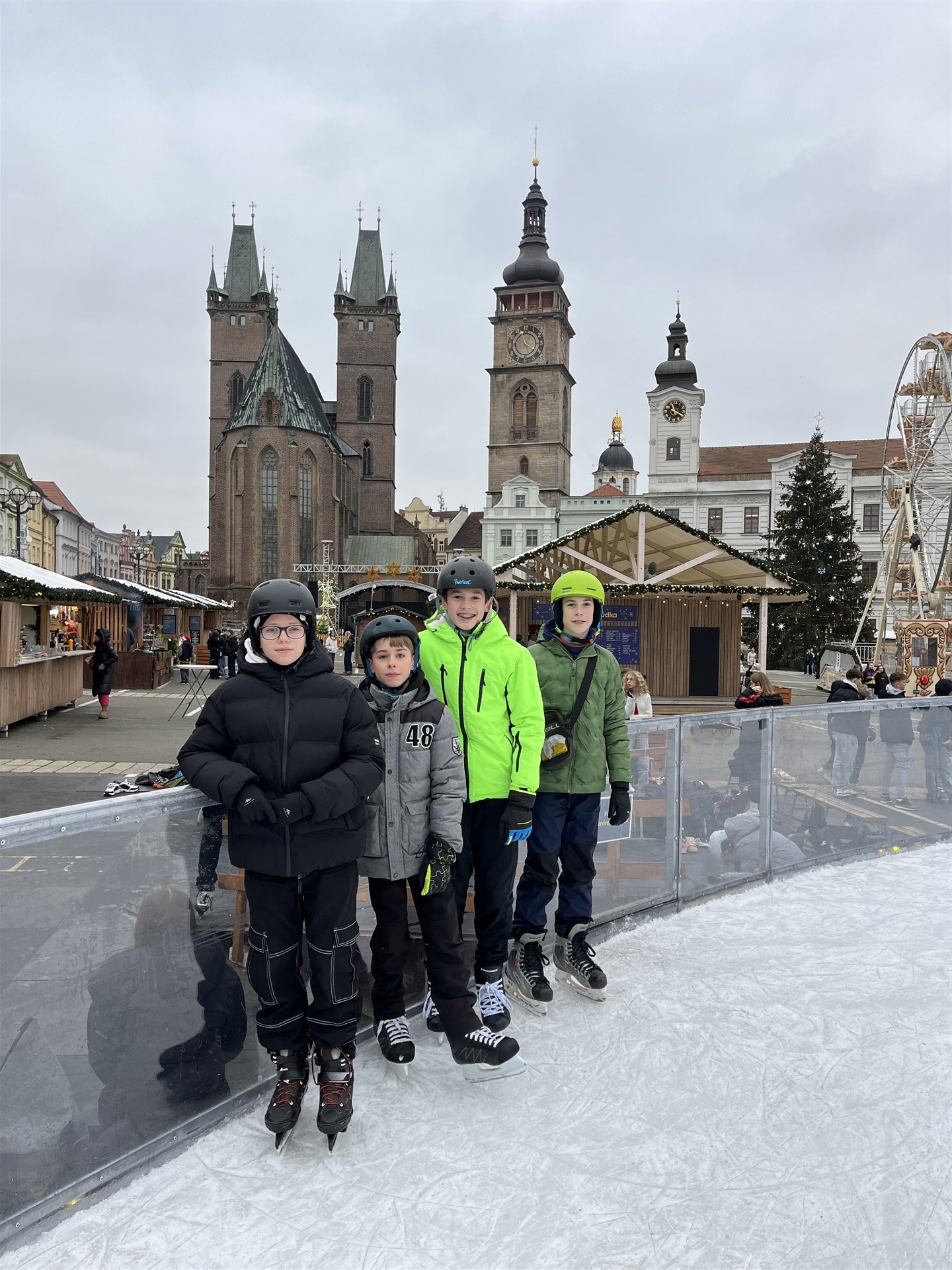 Žáci třídy 7. A si v rámci letošní zimy užili hned dvakrát bruslení pod širým nebem. Poprvé navštívili veřejné kluziště na Velkém náměstí v Hradci Králové, které bylo v období vánočních trhů umístěno kolem morového sloupu. Bruslení v historickém centru města mělo příjemnou atmosféru a pro mnohé bylo nevšedním zážitkem.