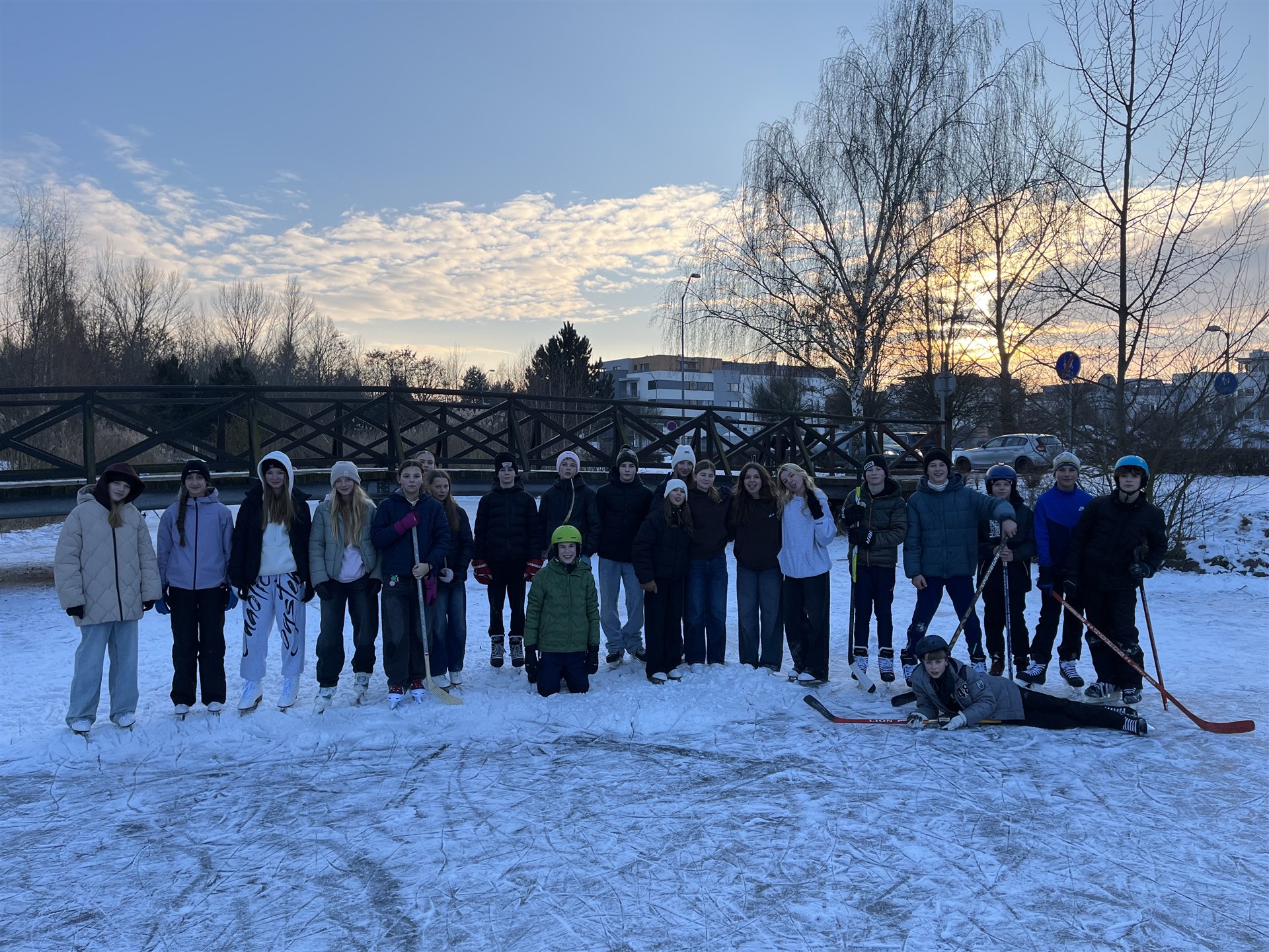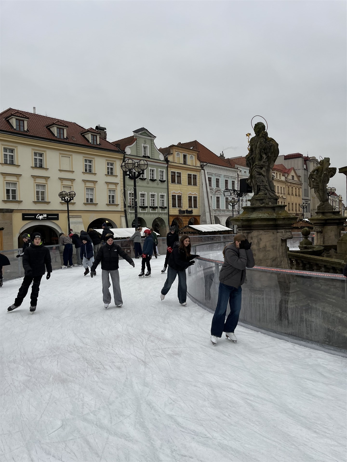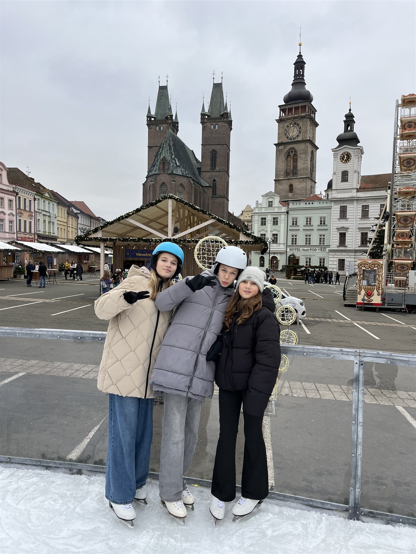 Žáci třídy 7. A si v rámci letošní zimy užili hned dvakrát bruslení pod širým nebem. Poprvé navštívili veřejné kluziště na Velkém náměstí v Hradci Králové, které bylo v období vánočních trhů umístěno kolem morového sloupu. Bruslení v historickém centru města mělo příjemnou atmosféru a pro mnohé bylo nevšedním zážitkem.