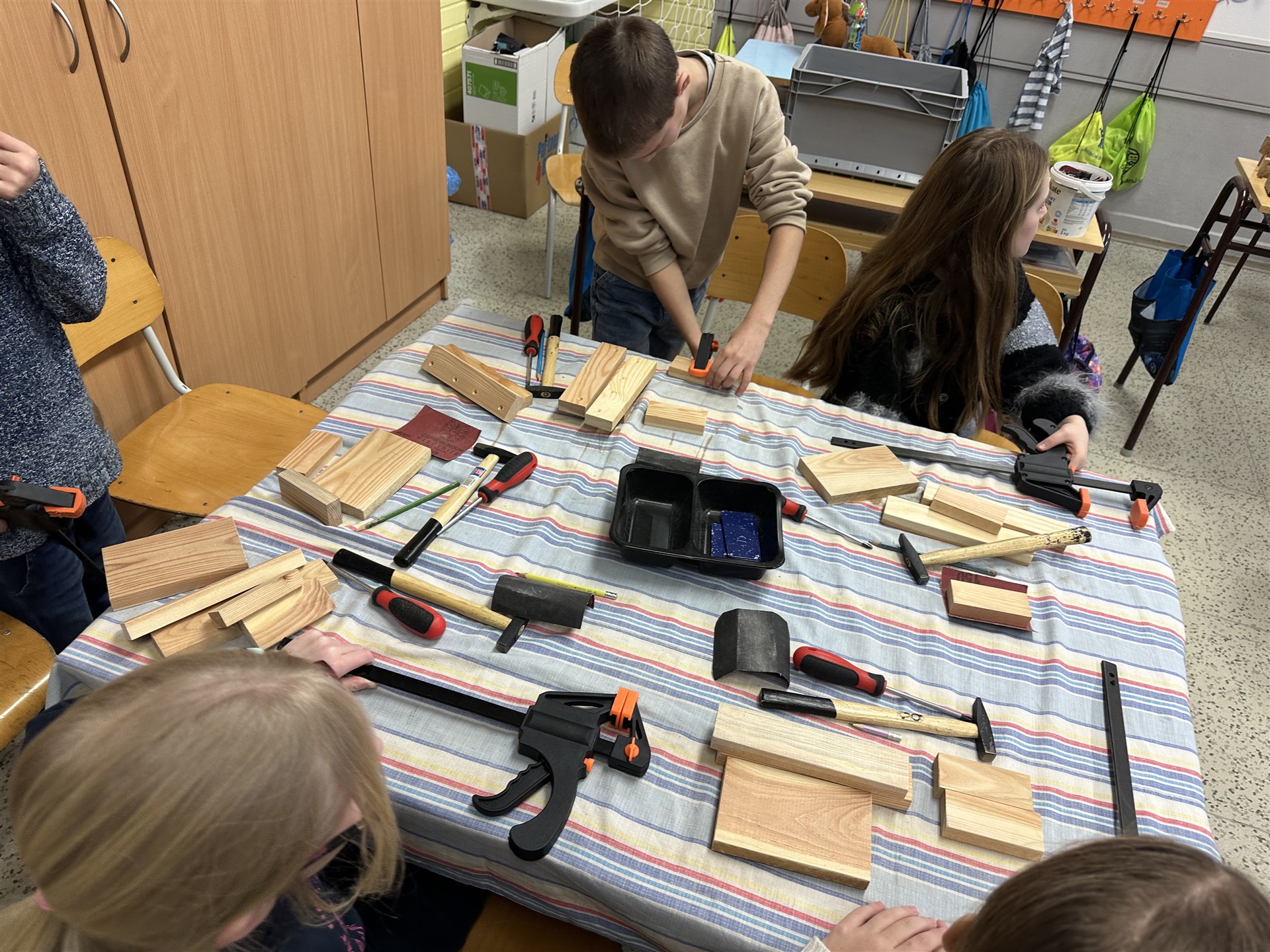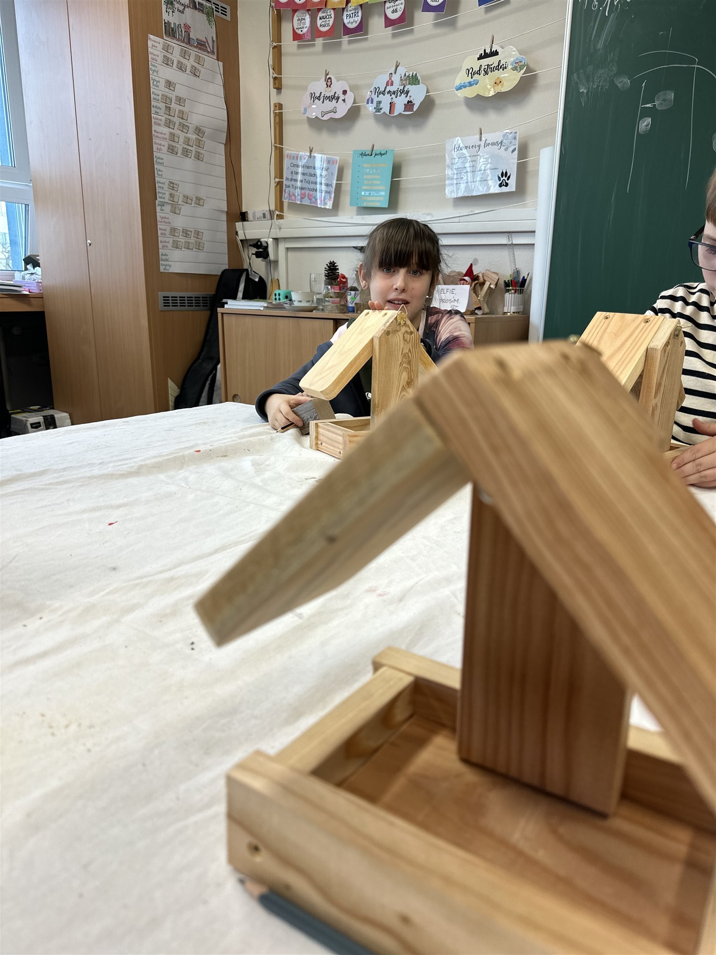 Zkusili si dřevo opracovat, zatlouct hřebíček, zavrtat vruty a sestavit z dílů celý svůj výtvor.
