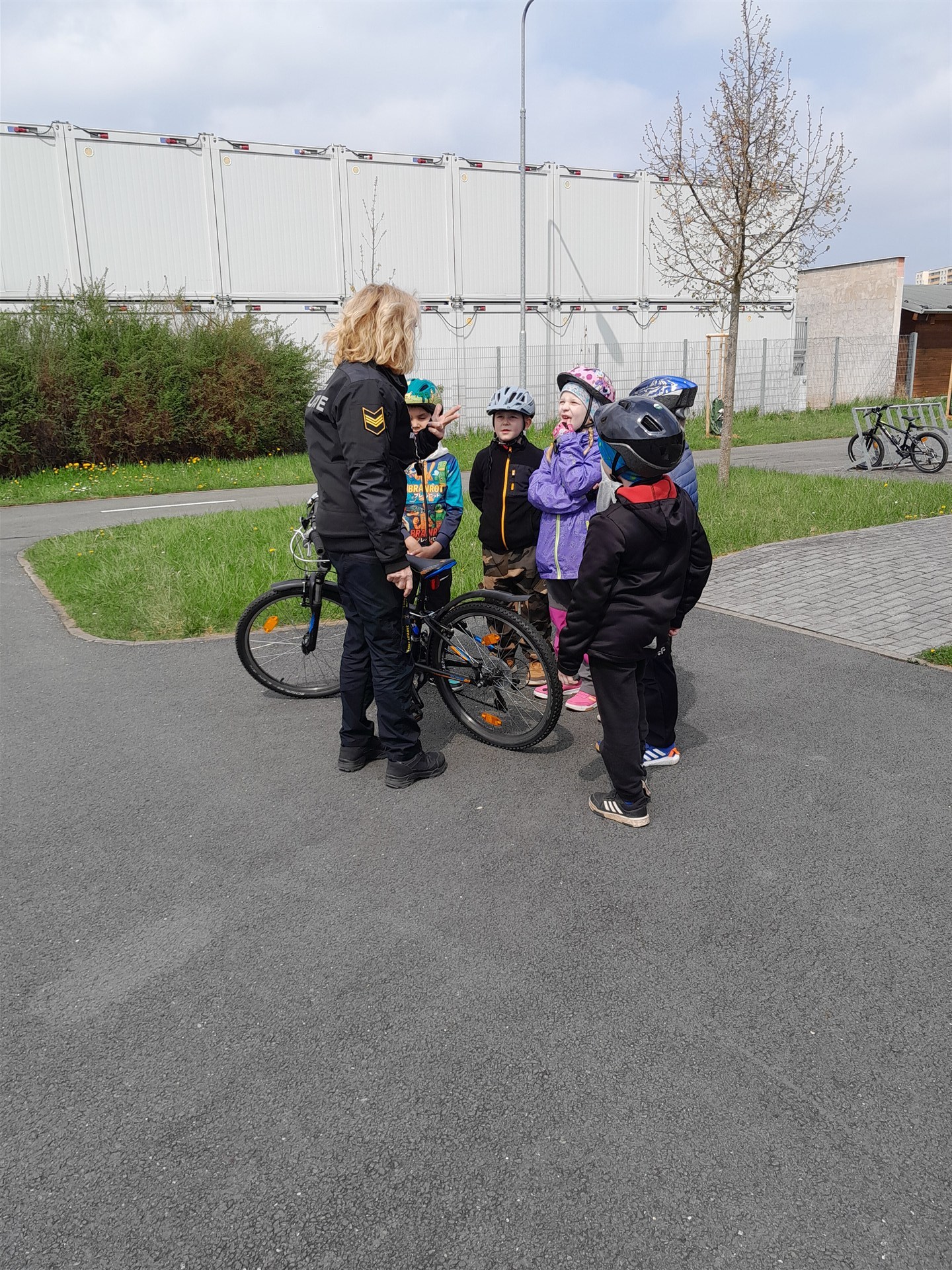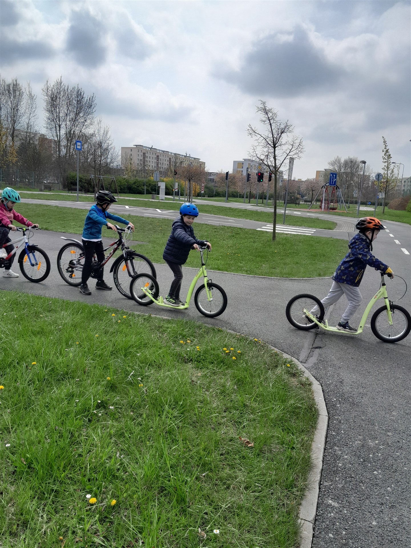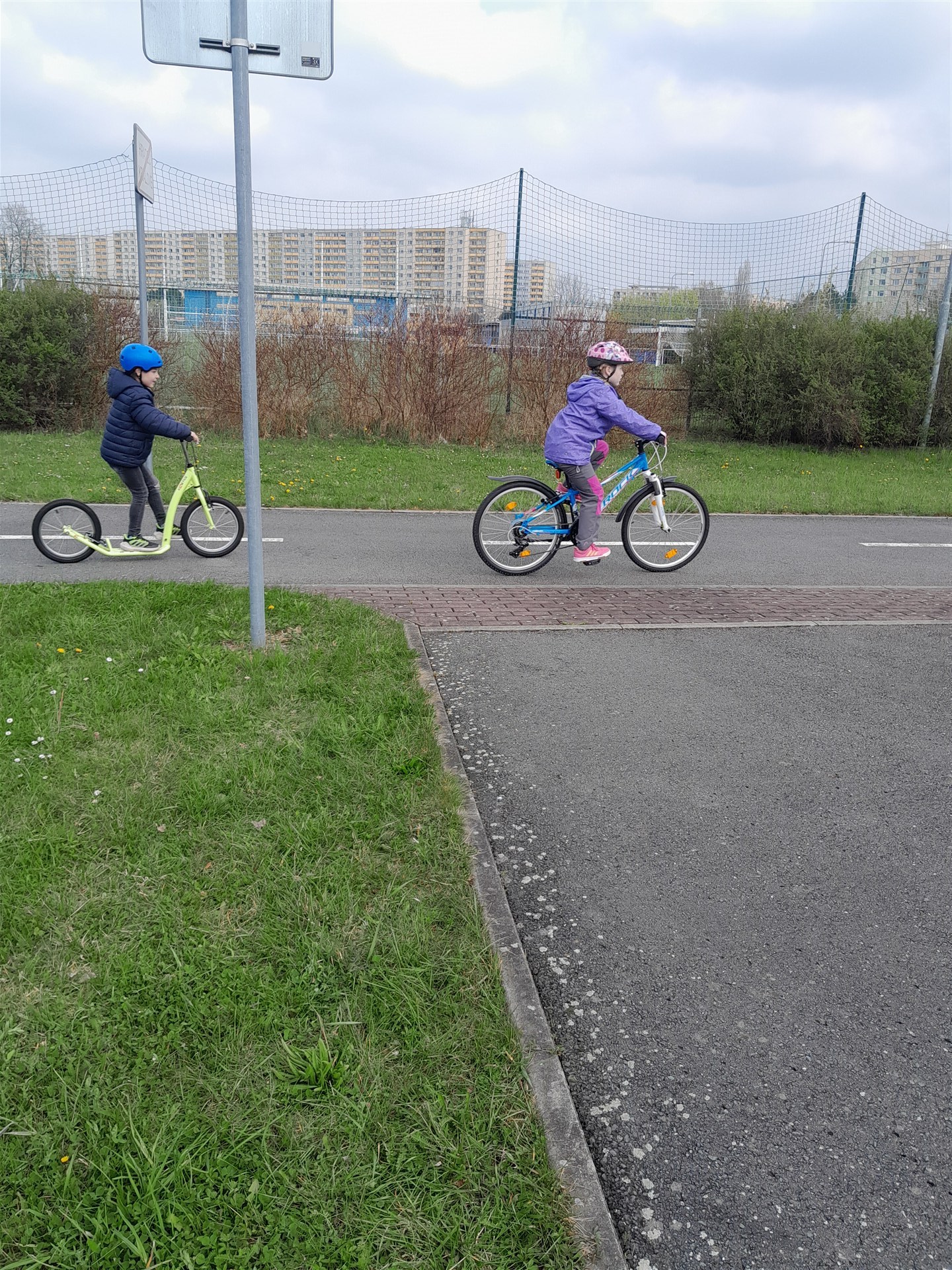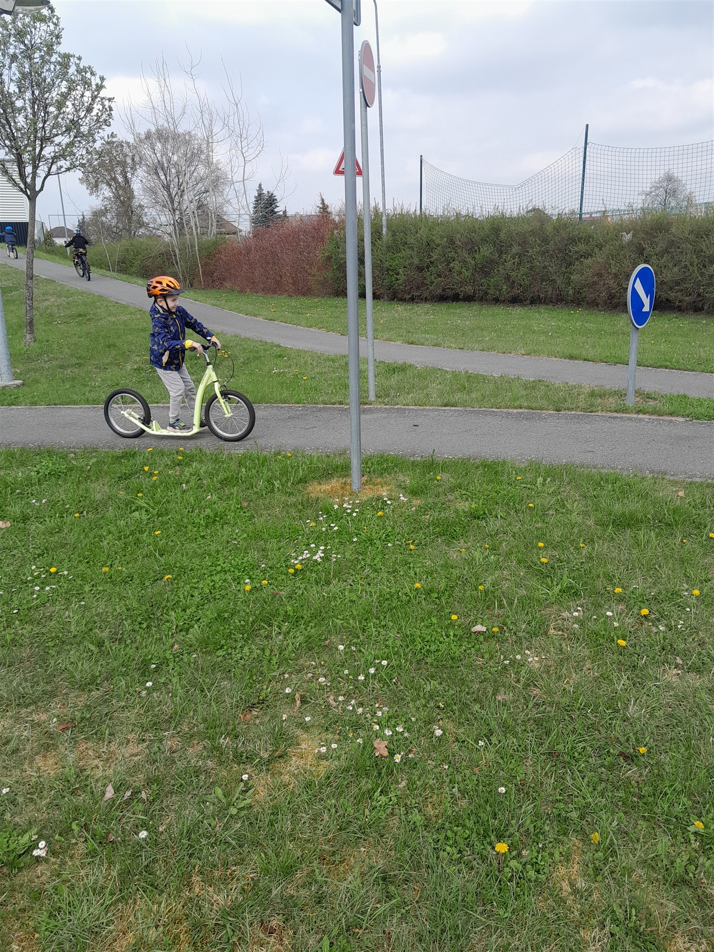 Středeční odpoledne jsme strávili ve společnosti zkušených policistů, kteří děti provedli dopravním hřištěm, vysvětlili jim symbol dopravních značek a upozornili na pravidla přednosti jízdy na křižovatkách. Řádně proškolené děti si půjčily kola, koloběžky, nasadily helmy a vyrazily na pomyslnou silnici.