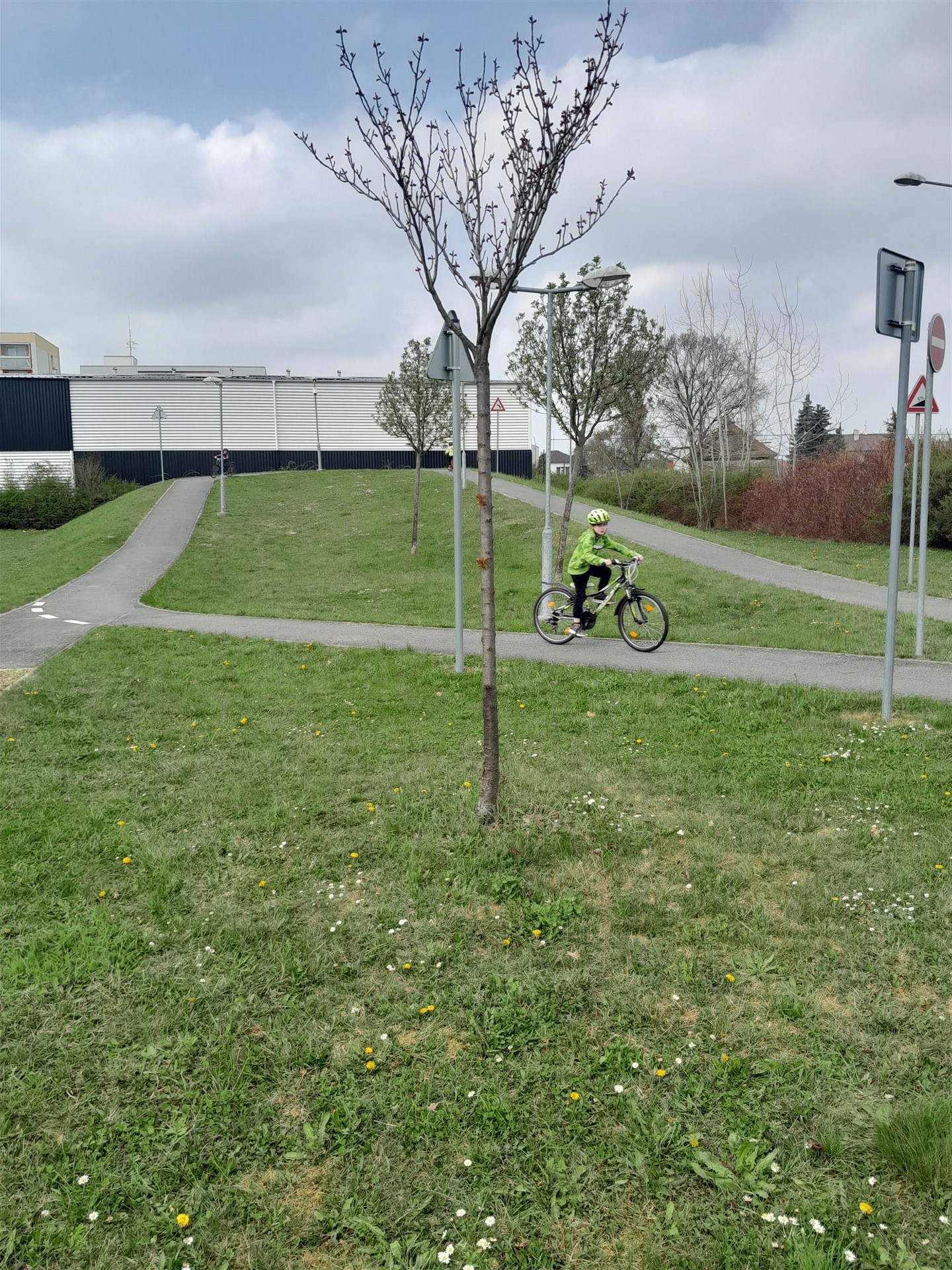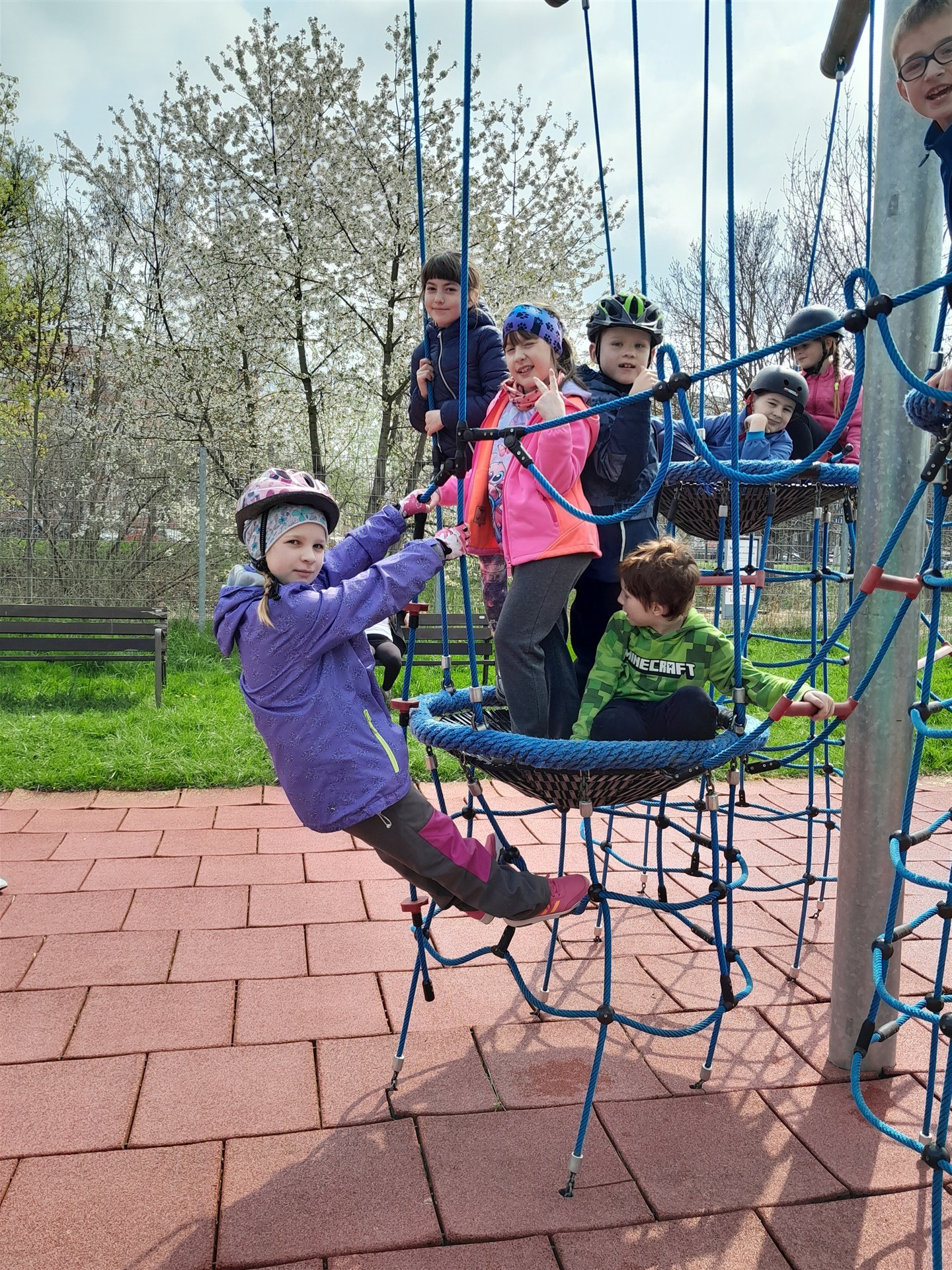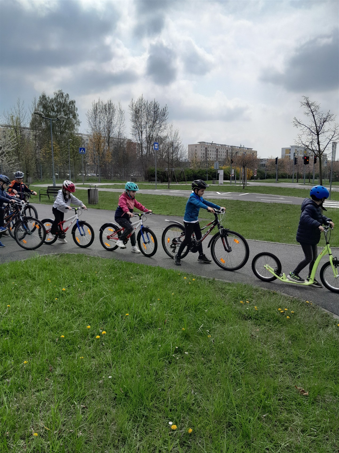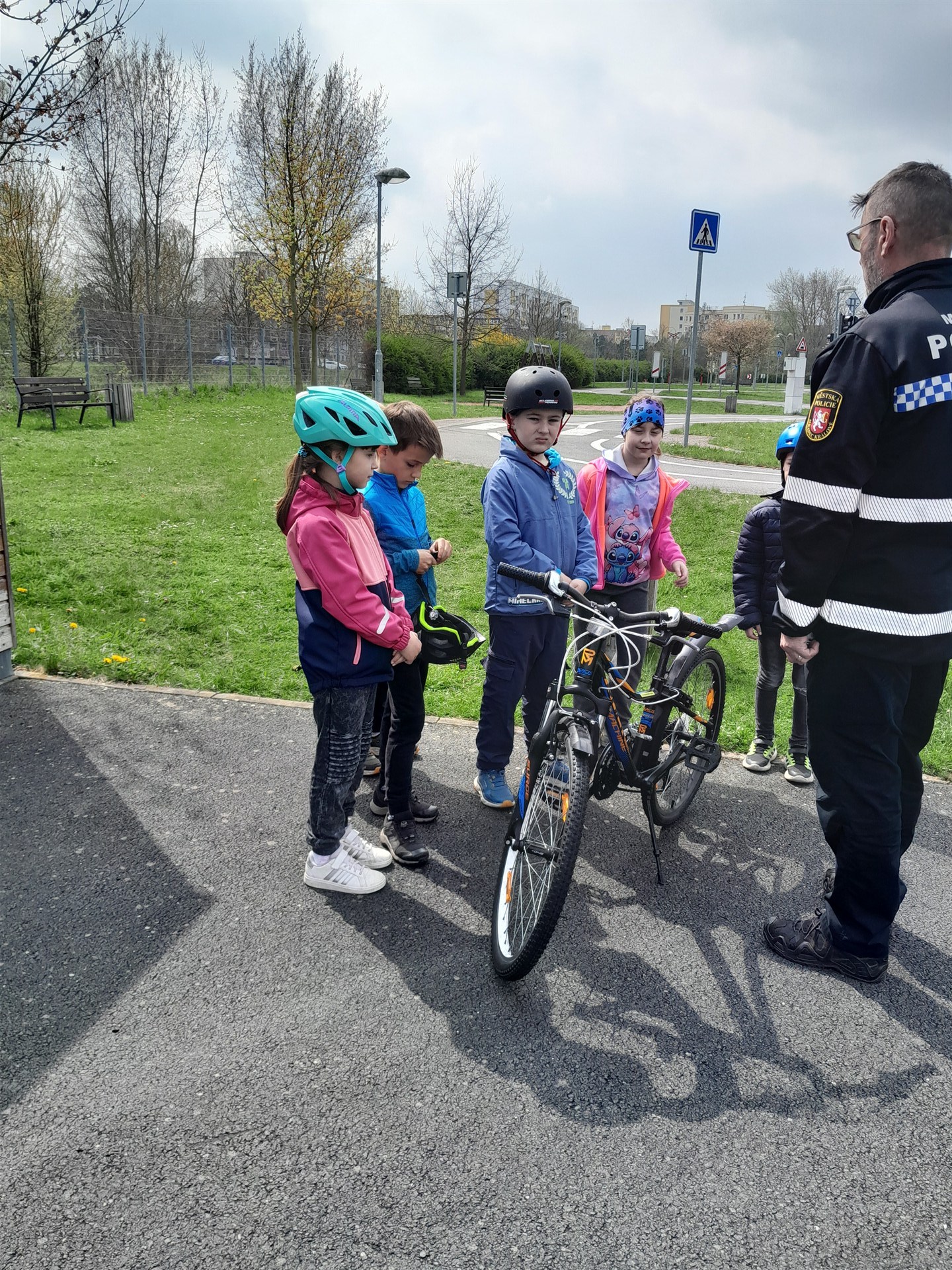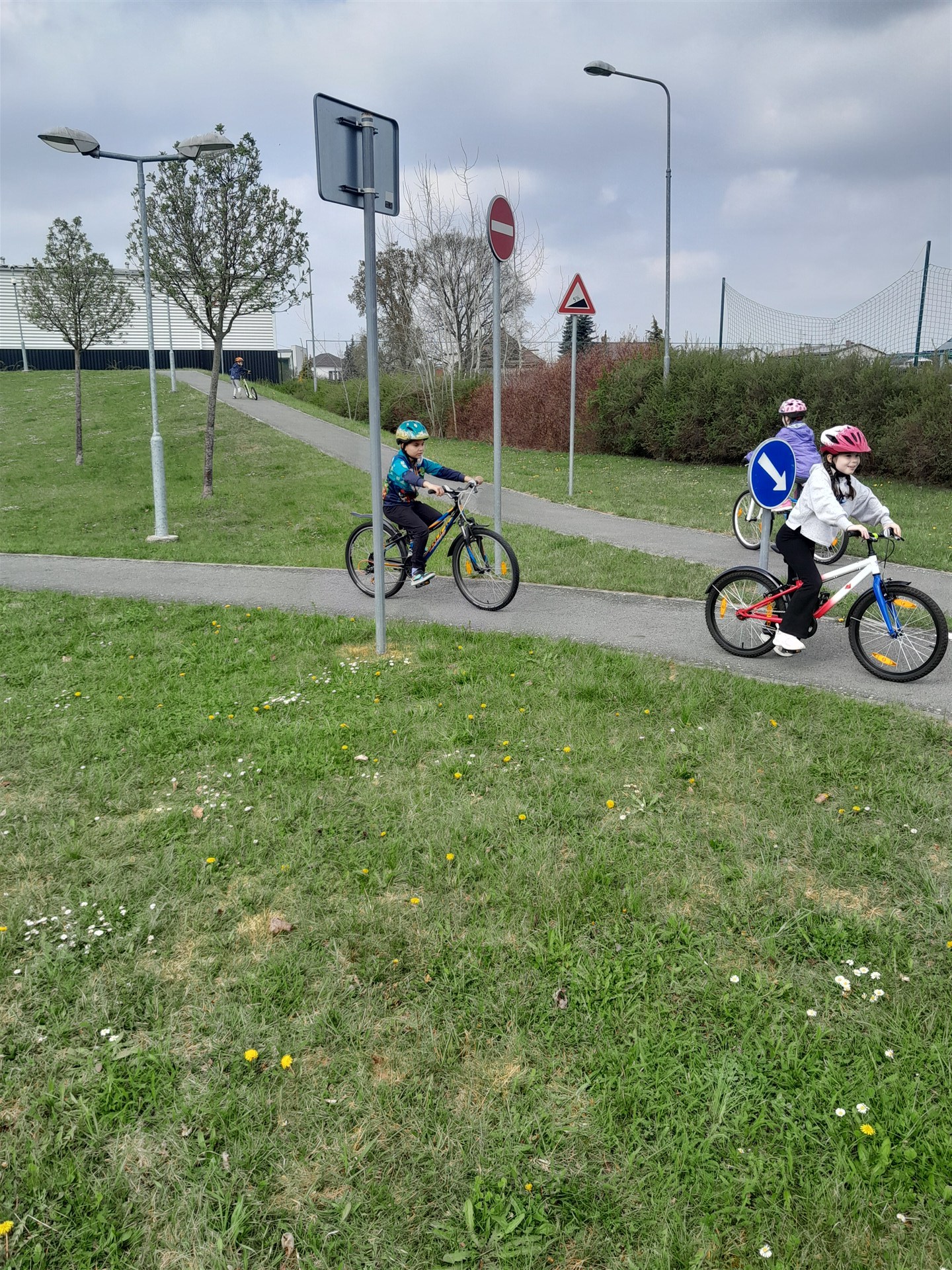 Středeční odpoledne jsme strávili ve společnosti zkušených policistů, kteří děti provedli dopravním hřištěm, vysvětlili jim symbol dopravních značek a upozornili na pravidla přednosti jízdy na křižovatkách. Řádně proškolené děti si půjčily kola, koloběžky, nasadily helmy a vyrazily na pomyslnou silnici.