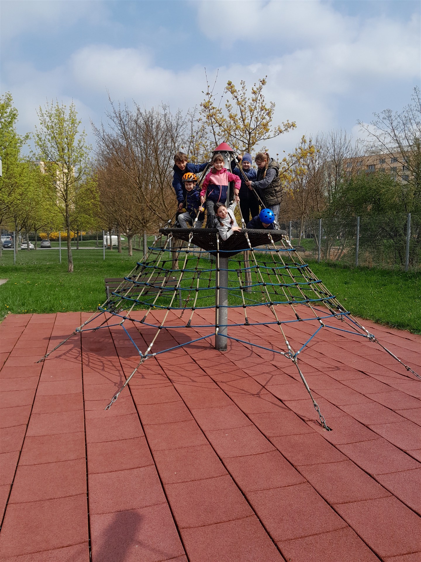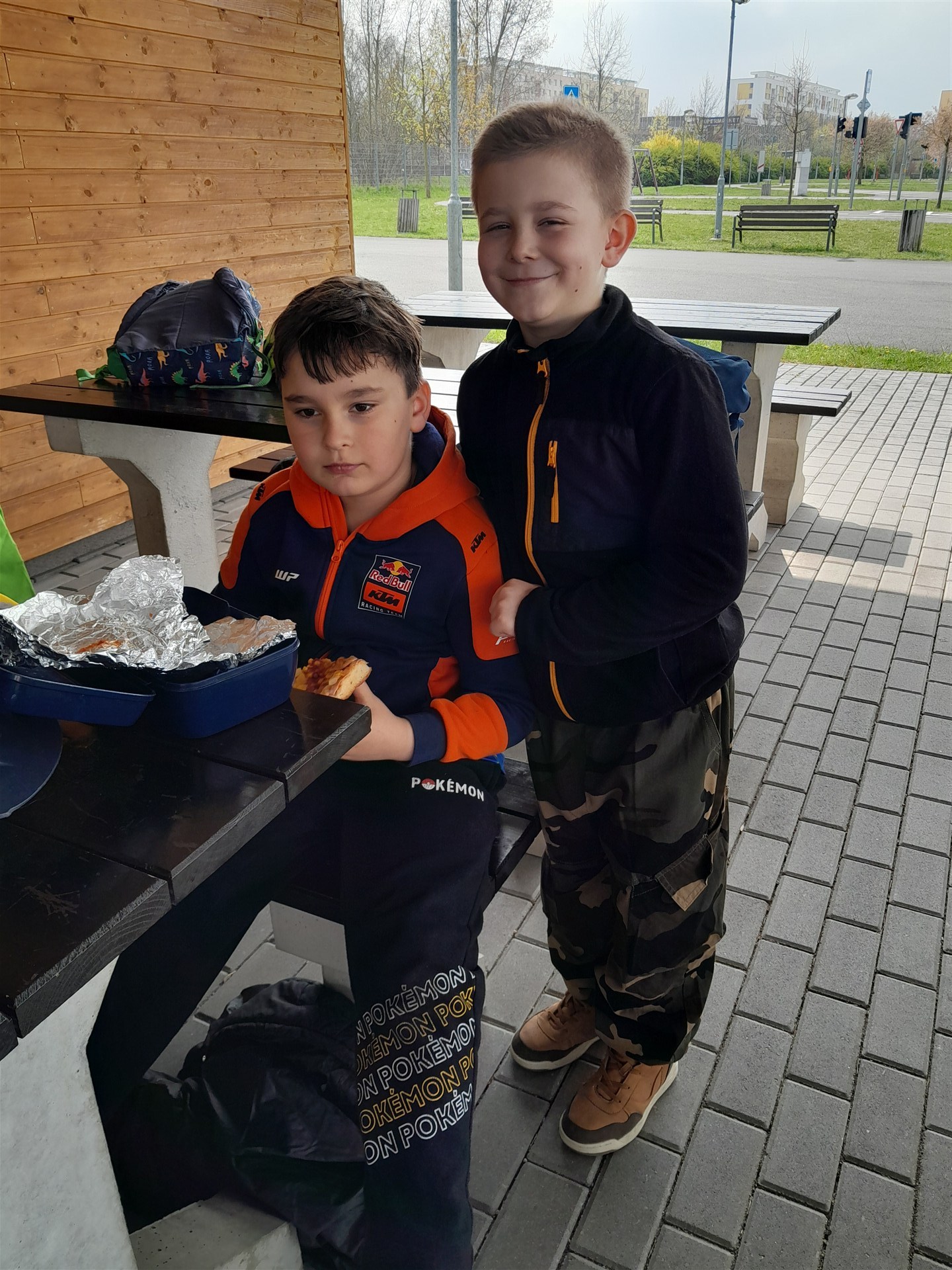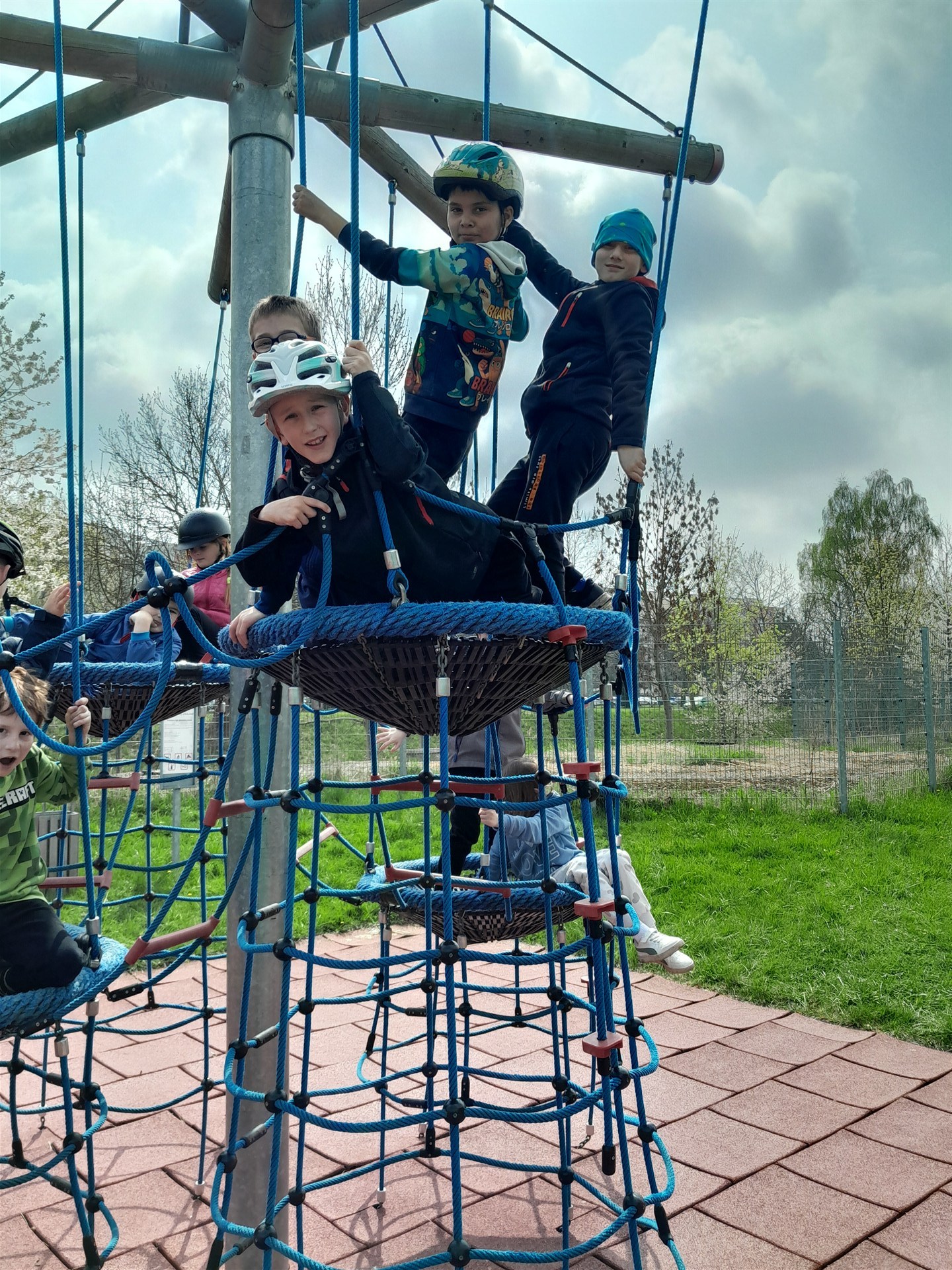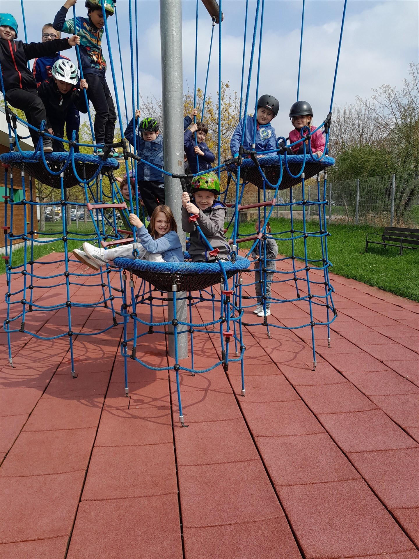 Středeční odpoledne jsme strávili ve společnosti zkušených policistů, kteří děti provedli dopravním hřištěm, vysvětlili jim symbol dopravních značek a upozornili na pravidla přednosti jízdy na křižovatkách. Řádně proškolené děti si půjčily kola, koloběžky, nasadily helmy a vyrazily na pomyslnou silnici.