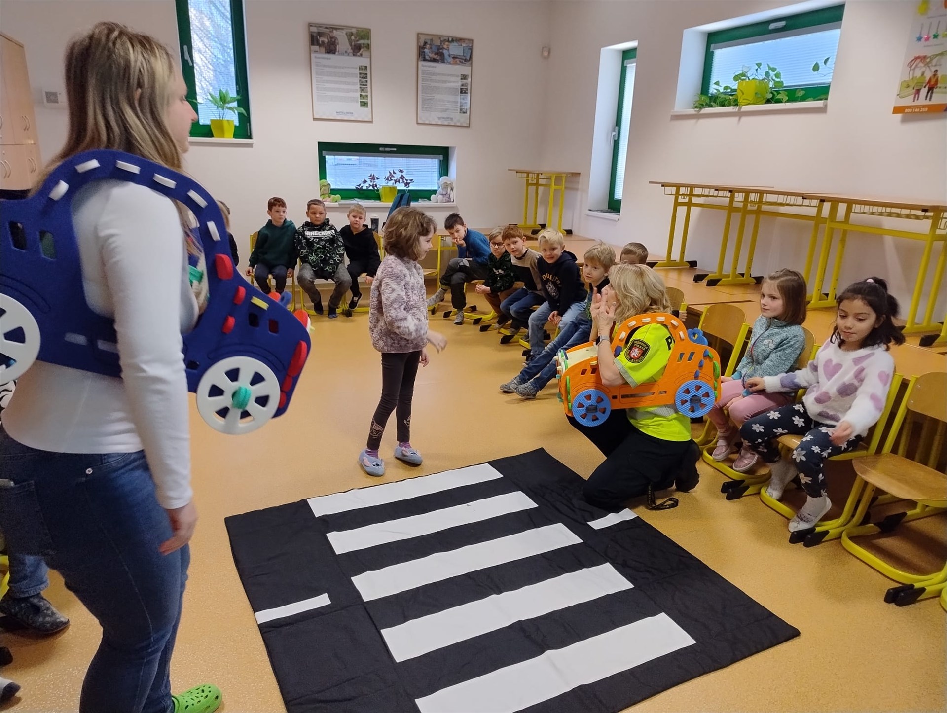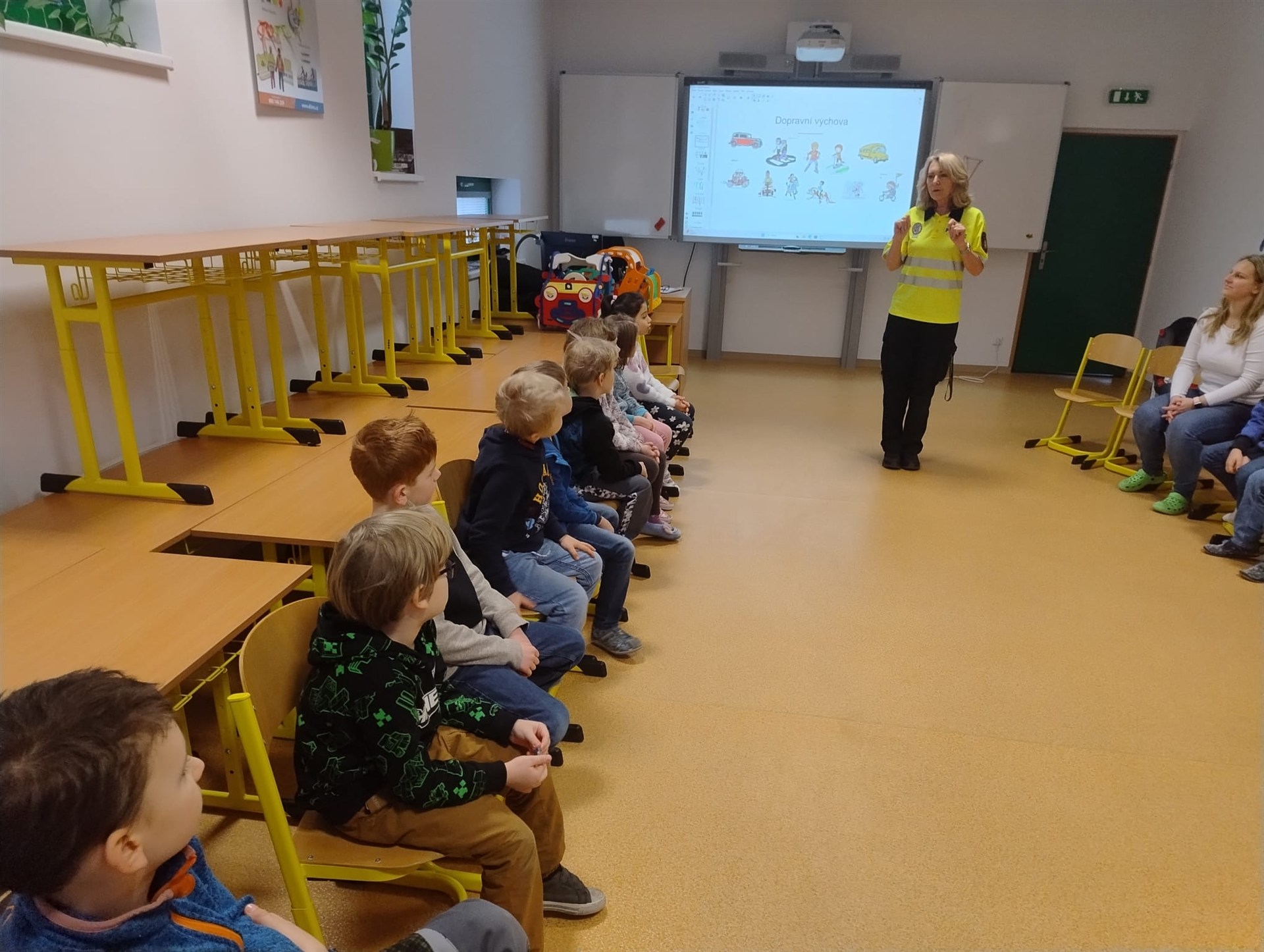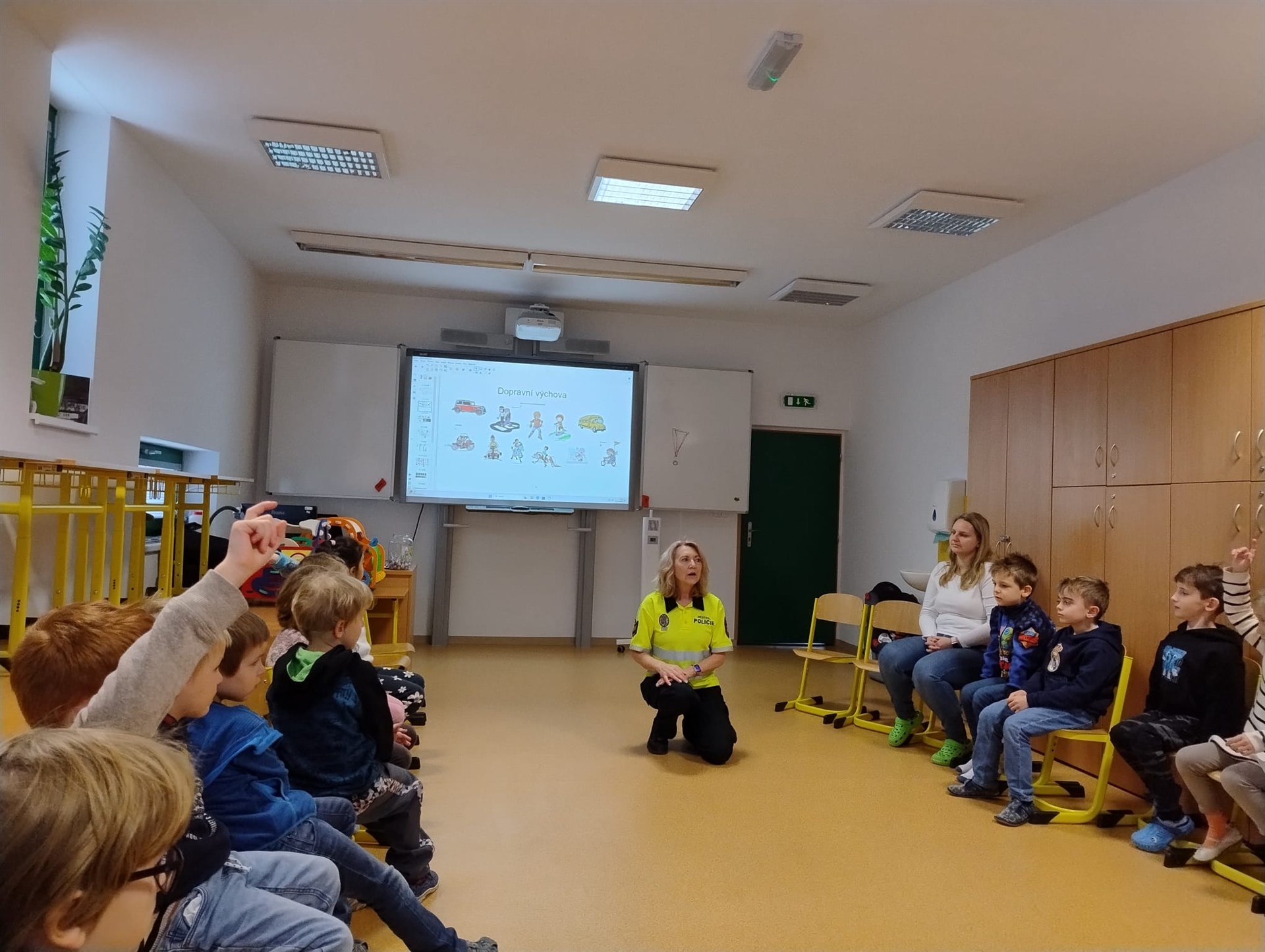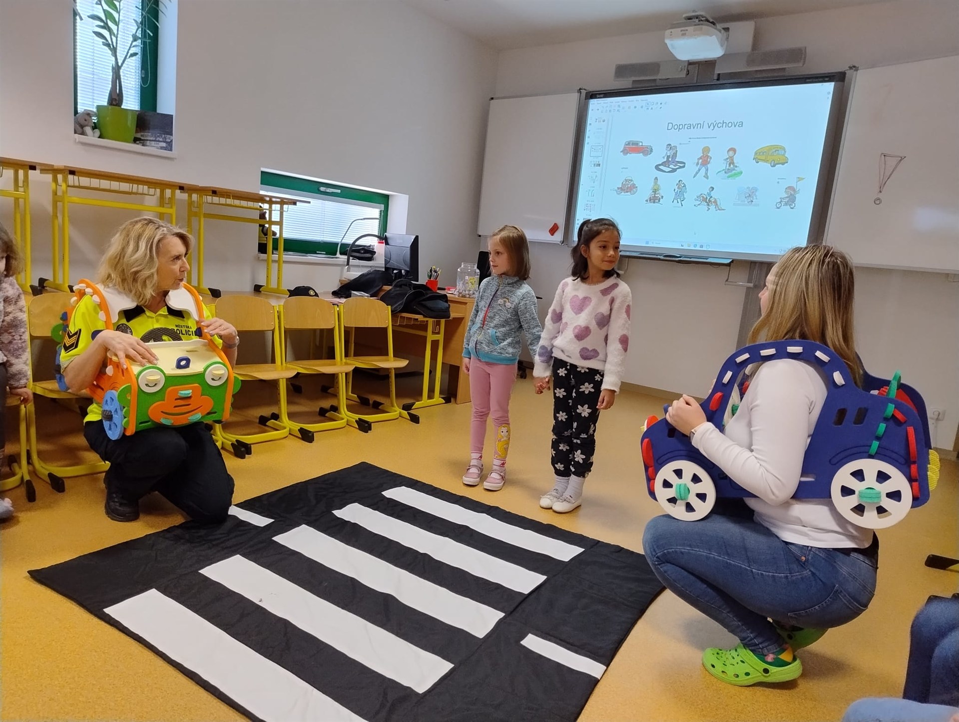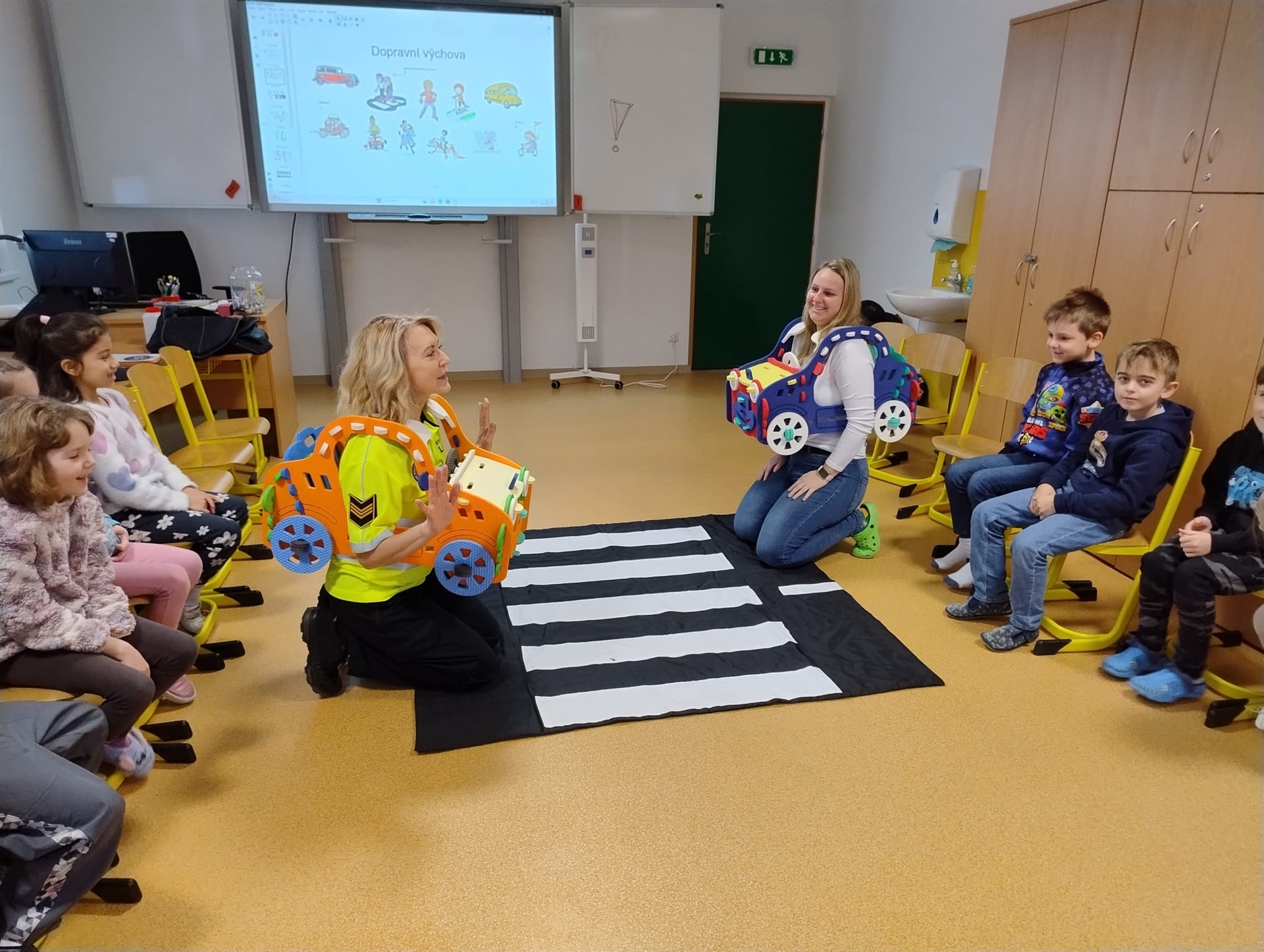 Cílem první návštěvy dopravního hřiště v Třebši byla naše bezpečnost v provozu. Učili jsme se správně přecházet silnici, zaměřili jsme se na dopravní značky, rozlišili rozdíl mezi chodcem a cyklistou. Povídali jsme si o neukázněných řidičích na silnici, a také o nebezpečných situacích. Nechybělo ani správné nasazení cyklistické helmy a připomenutí, že děti ji musí mít na hlavě vždy, když usedají na kolo. Dopoledne jsme si moc užili, protože celá výuka byla interaktivní, se spoustou pomůcek a vtipnou paní policistkou.