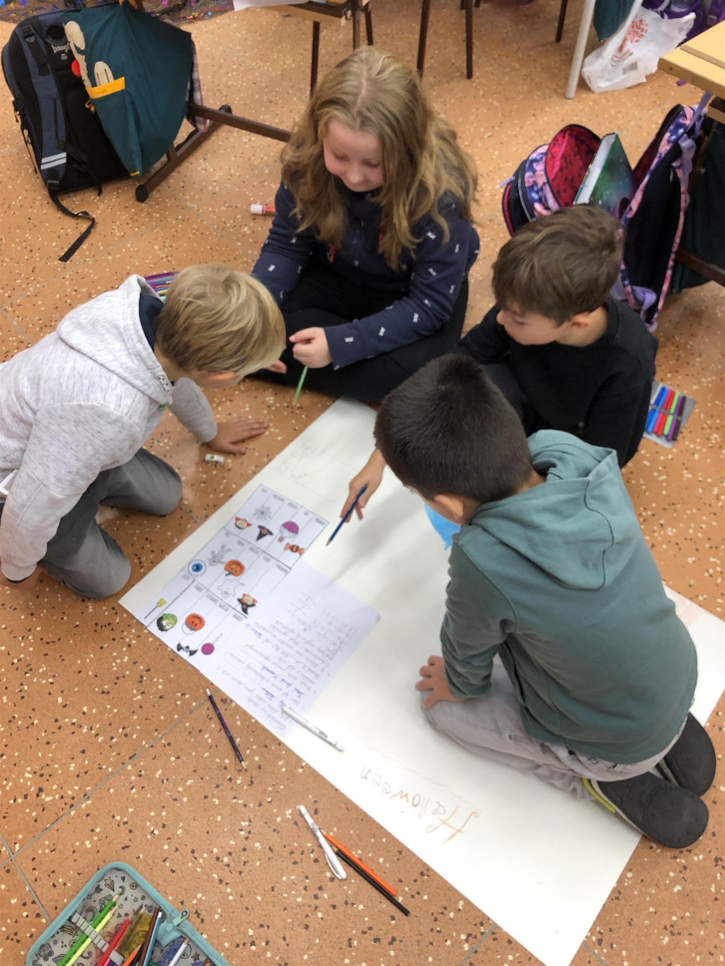 V pondělí 1.11. se děti ze 3.C učily ve strašidelných maskách. Měly připraveny úkoly, které vypracovávaly ve skupinkách. Zopakovaly si přídavná jména ve speciálních receptech, počítaly datum vzniku samostatného Československa, skládaly příšery podle abecedy a hlavně si užily trochu jiné učení. Tento den se nám všem moc líbil.
