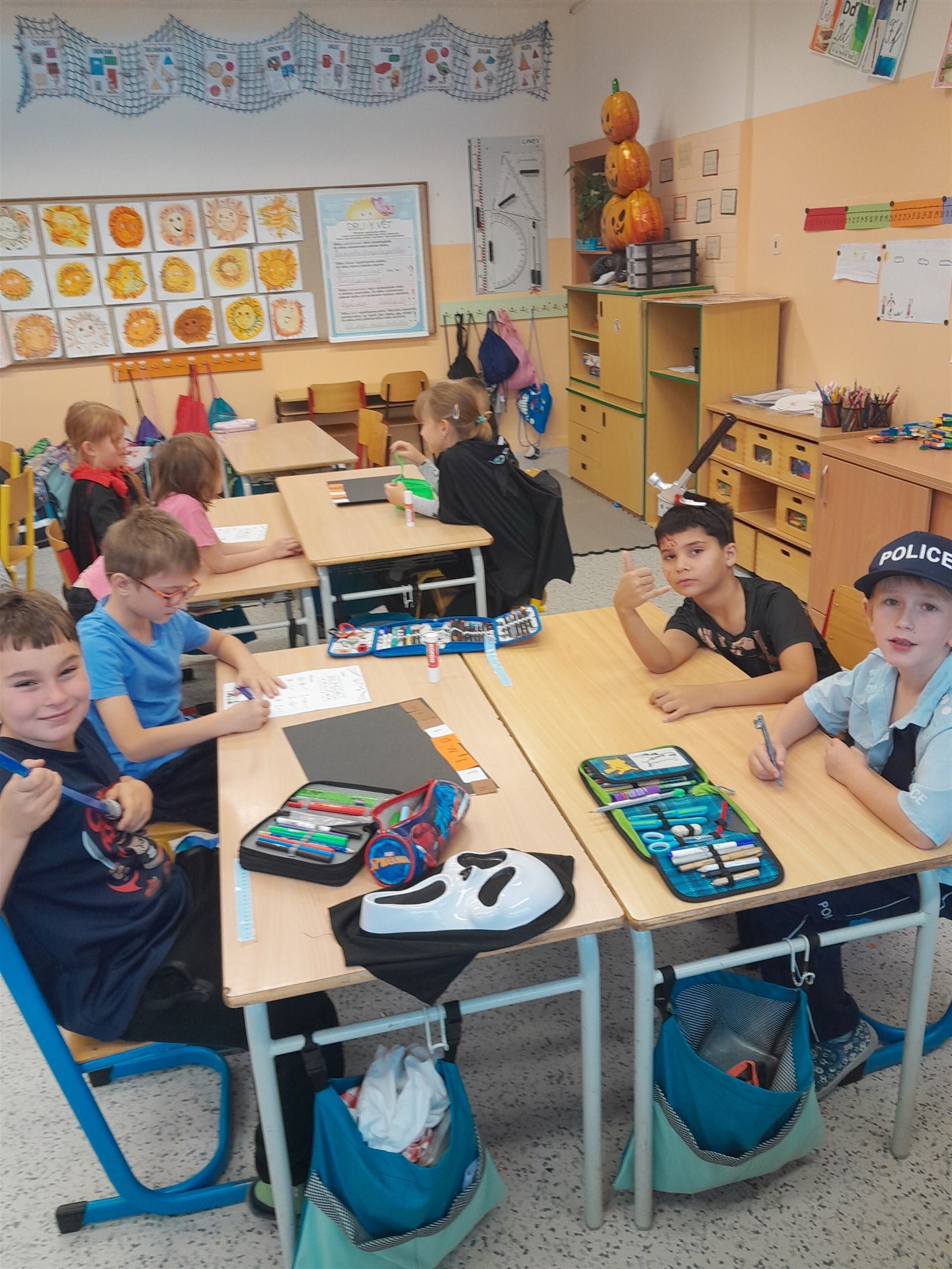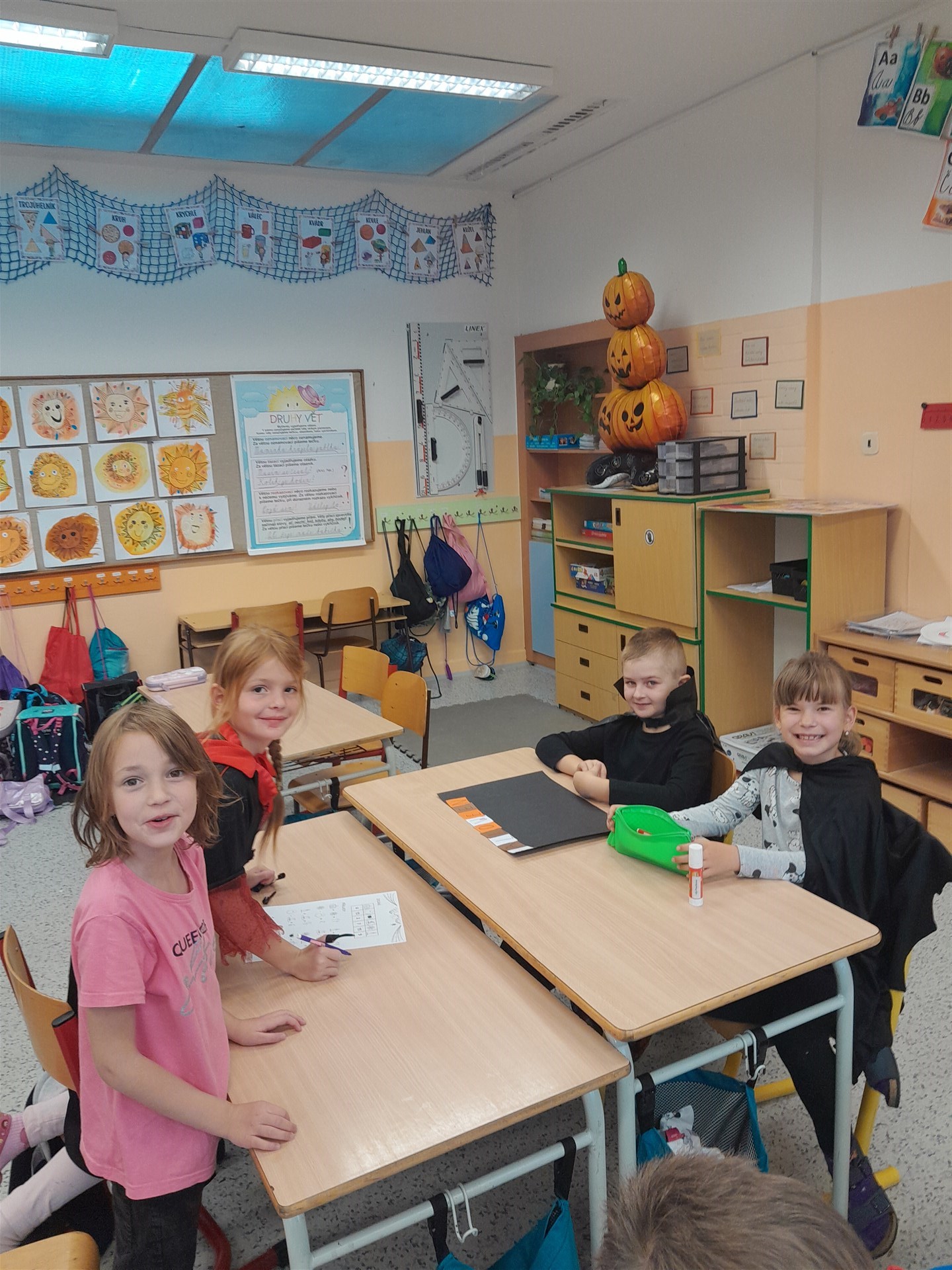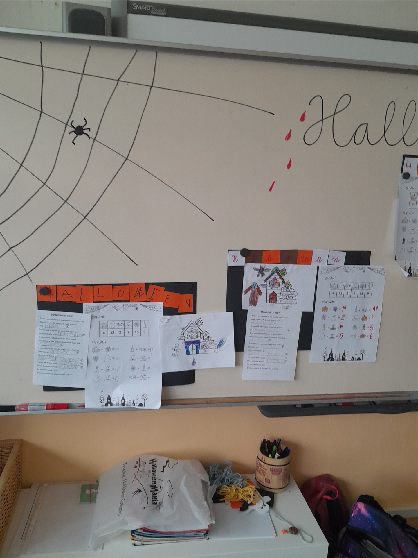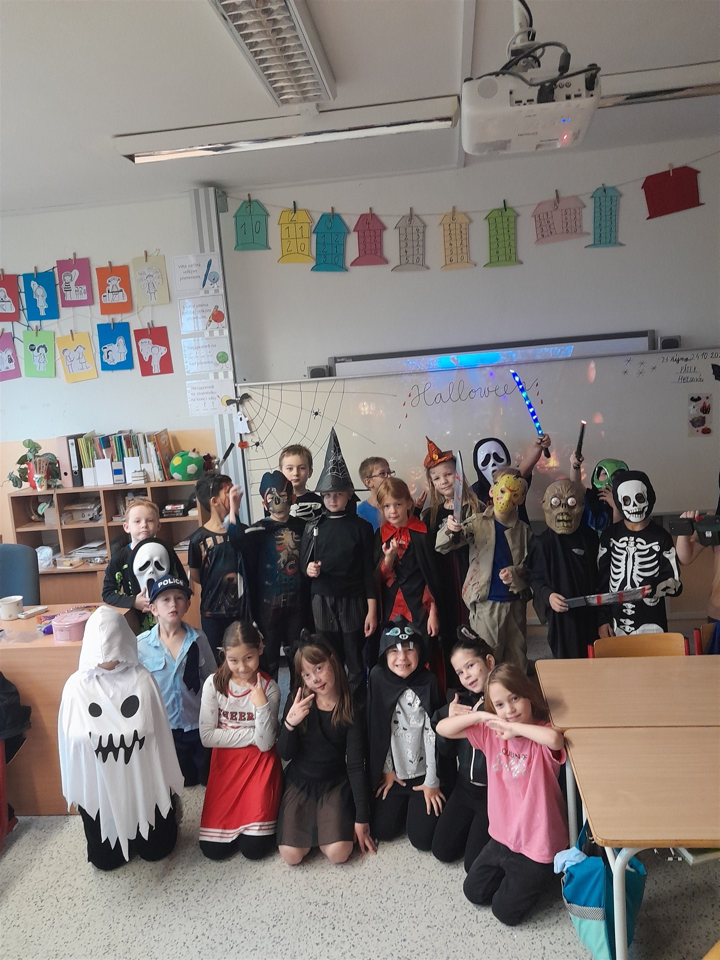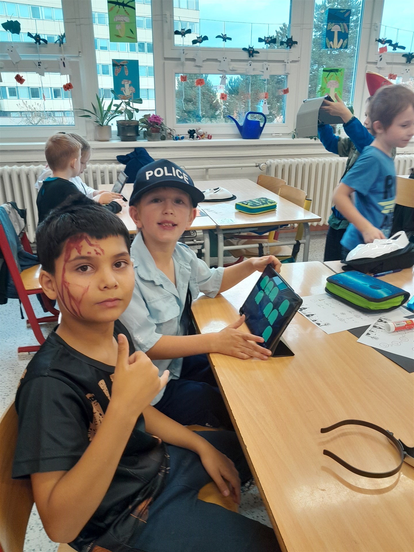 Poslední den ve škole před podzimními prázdninami jsme si užili jinak. Děti do školy přišly převlečené za strašidla, pracovaly v týmech, učivo procvičovaly na tabletech, tvořily halloweenský plakát, pochutnaly si na sladkostech... A teď už všichni hurá na PRÁZDNINY!!!
