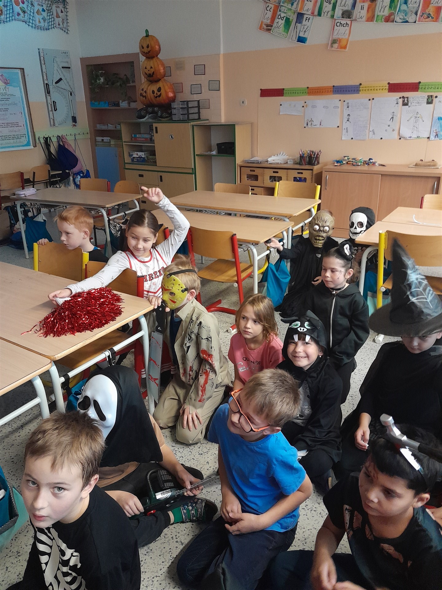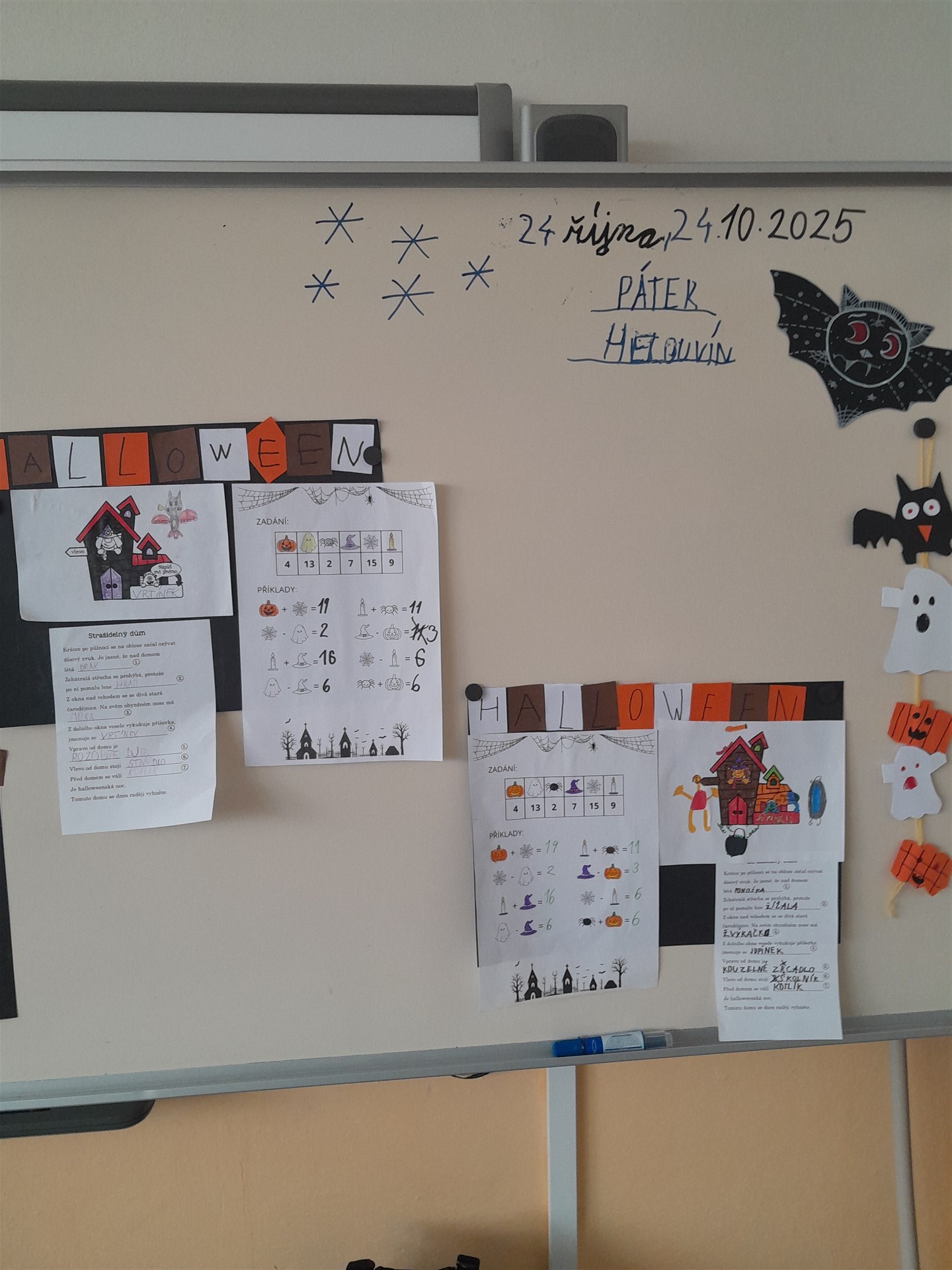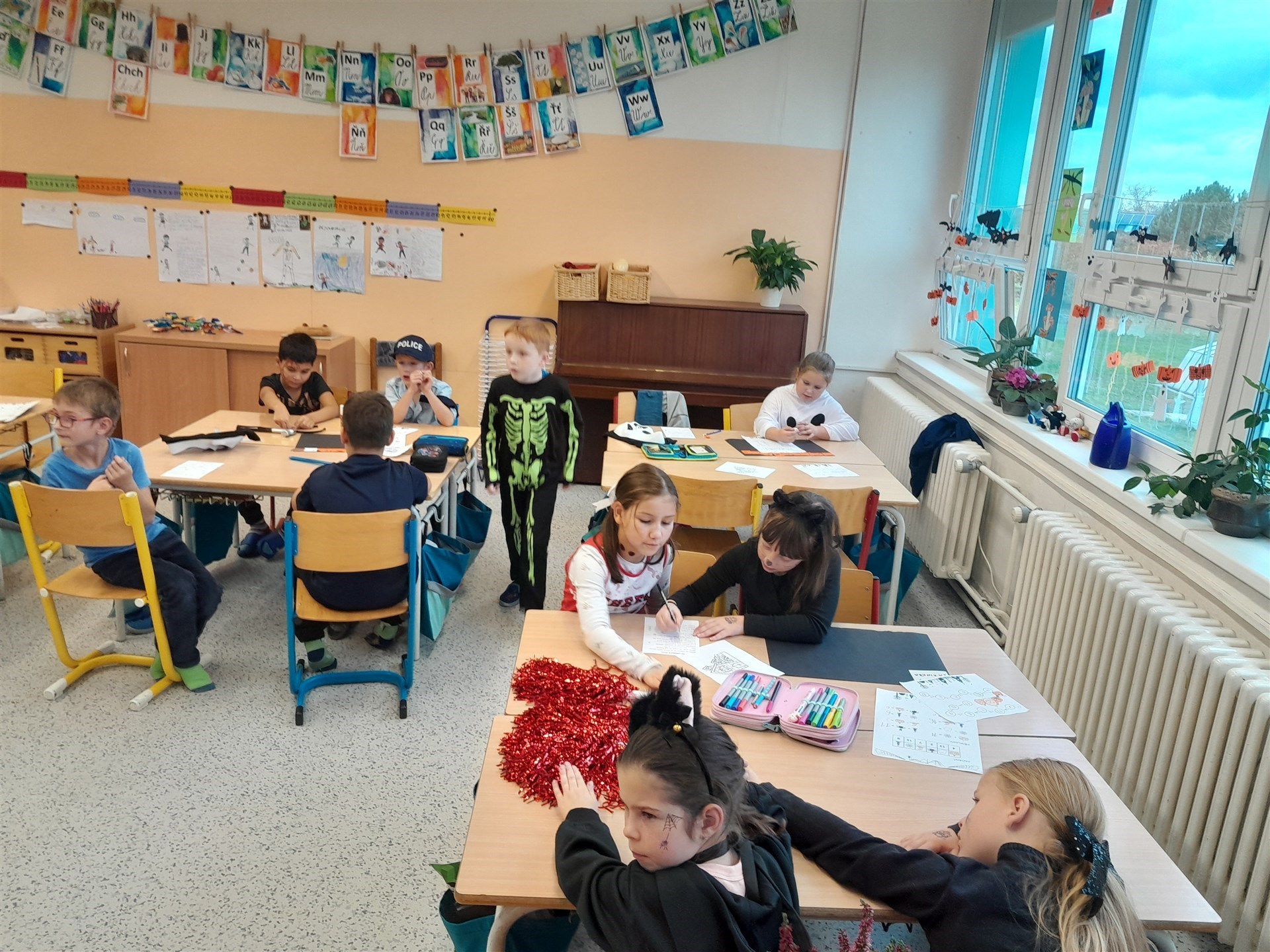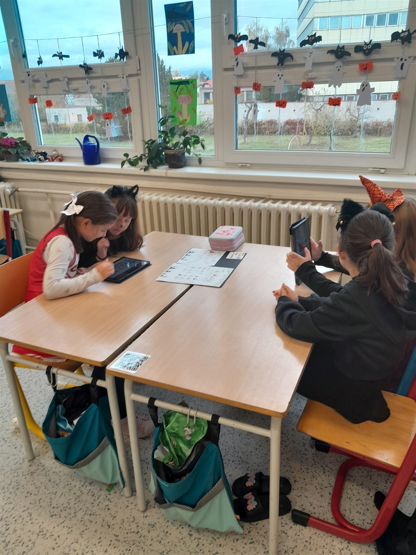 Poslední den ve škole před podzimními prázdninami jsme si užili jinak. Děti do školy přišly převlečené za strašidla, pracovaly v týmech, učivo procvičovaly na tabletech, tvořily halloweenský plakát, pochutnaly si na sladkostech... A teď už všichni hurá na PRÁZDNINY!!!