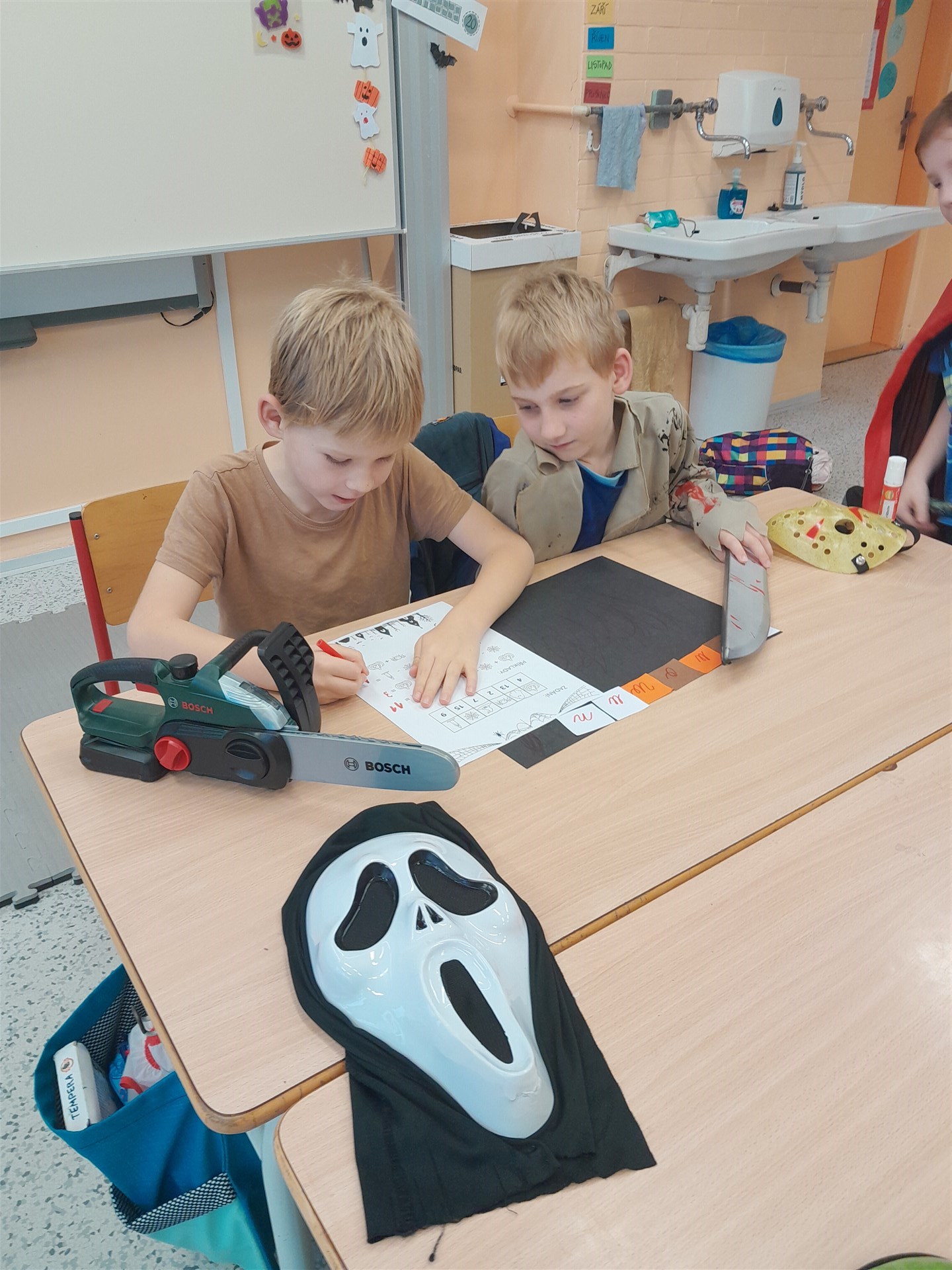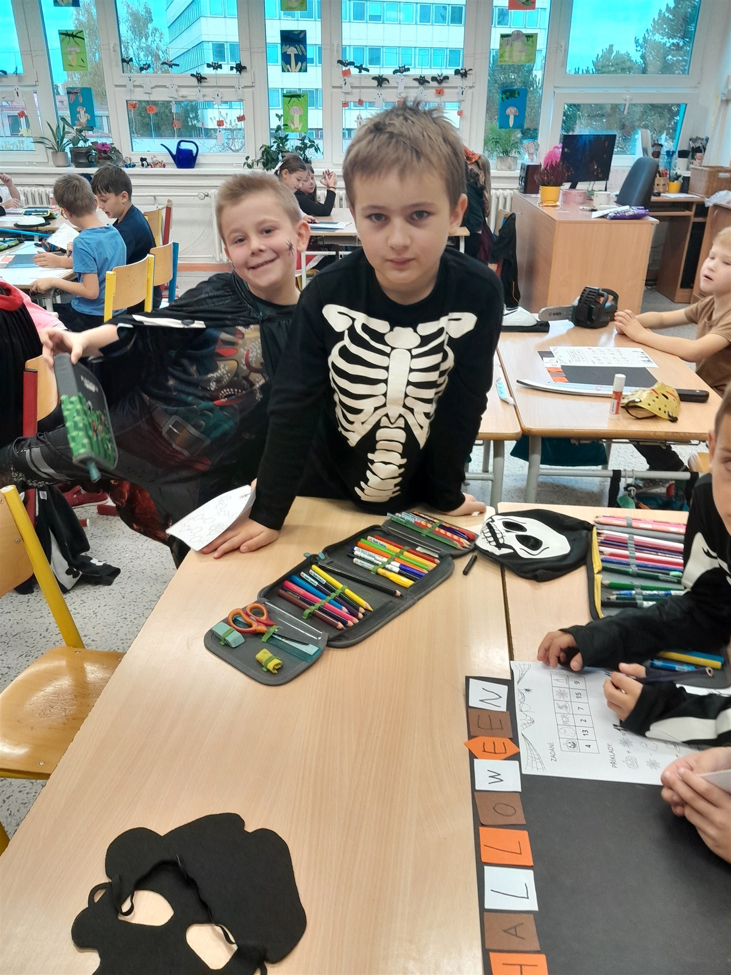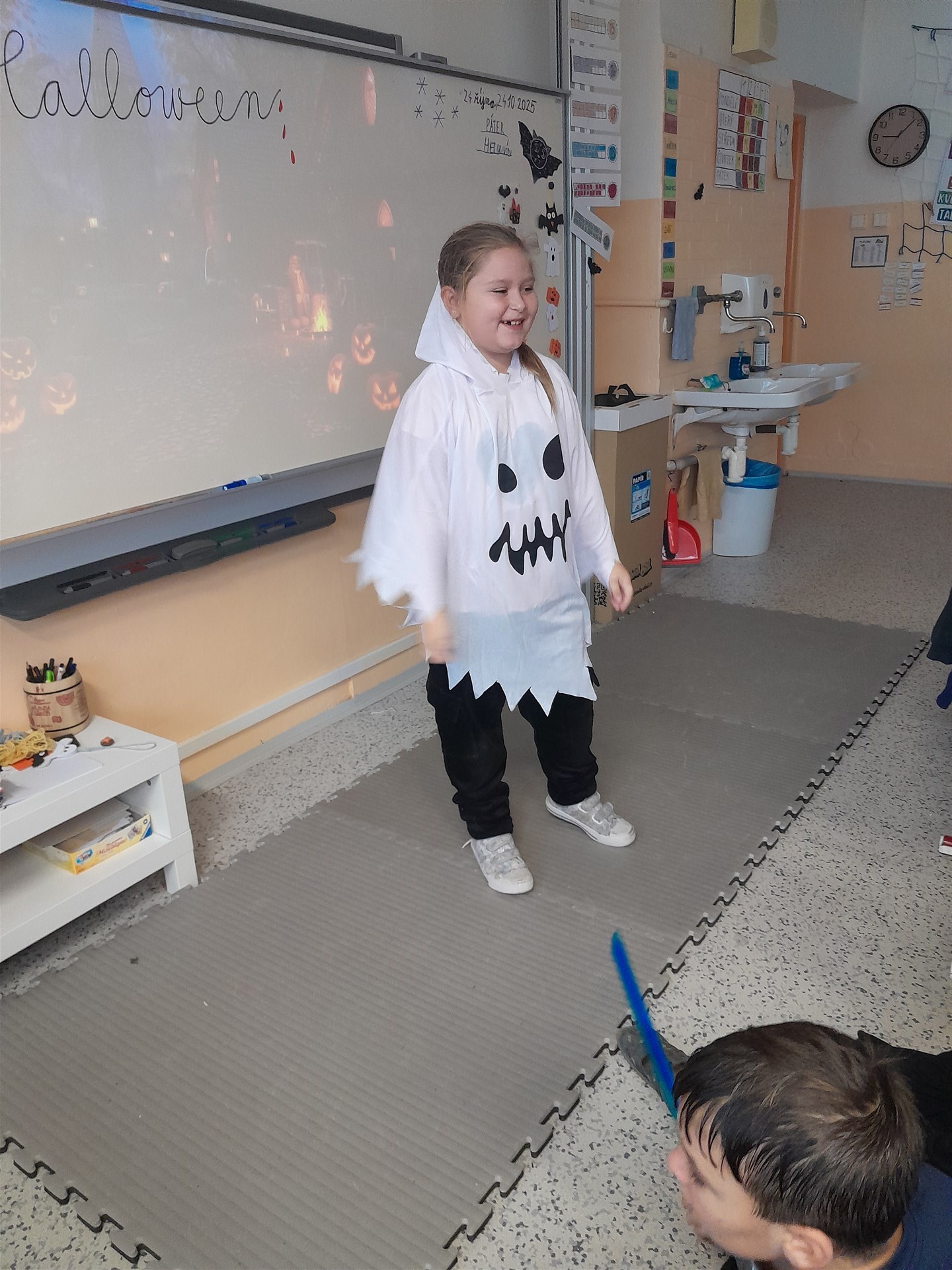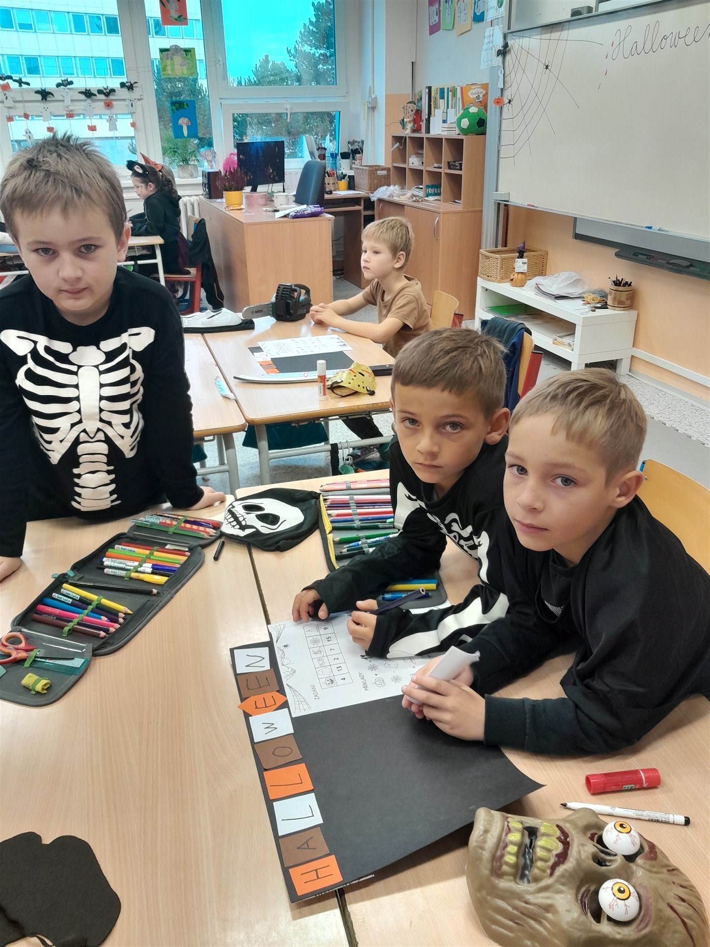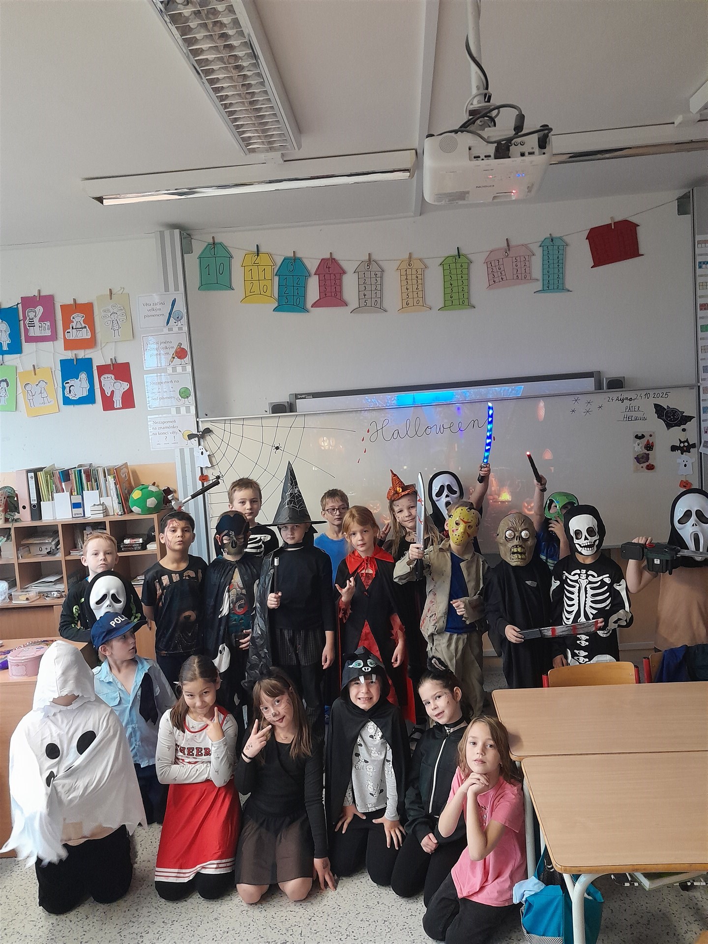 Poslední den ve škole před podzimními prázdninami jsme si užili jinak. Děti do školy přišly převlečené za strašidla, pracovaly v týmech, učivo procvičovaly na tabletech, tvořily halloweenský plakát, pochutnaly si na sladkostech... A teď už všichni hurá na PRÁZDNINY!!!
