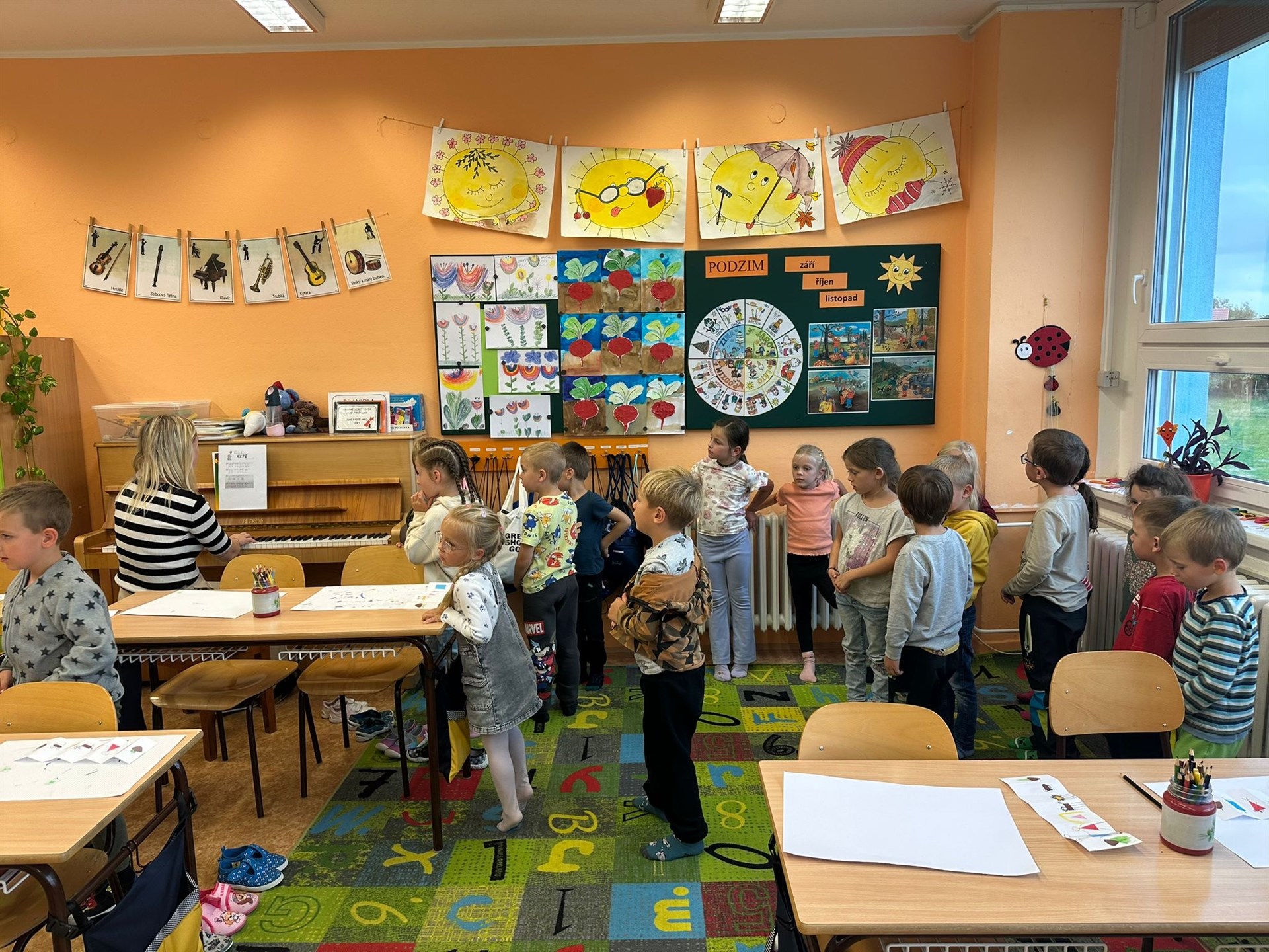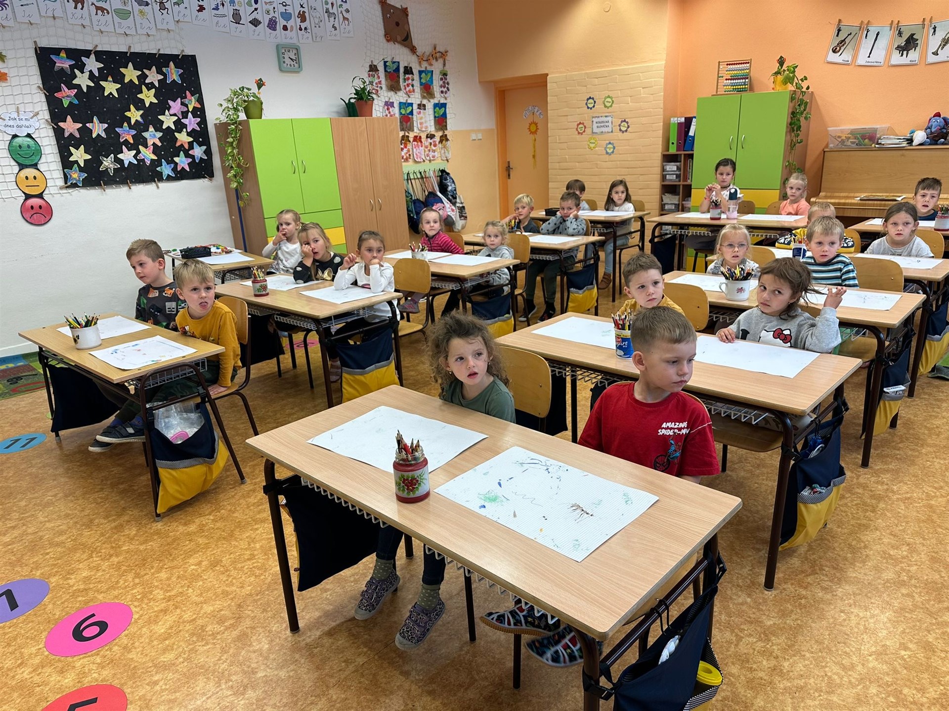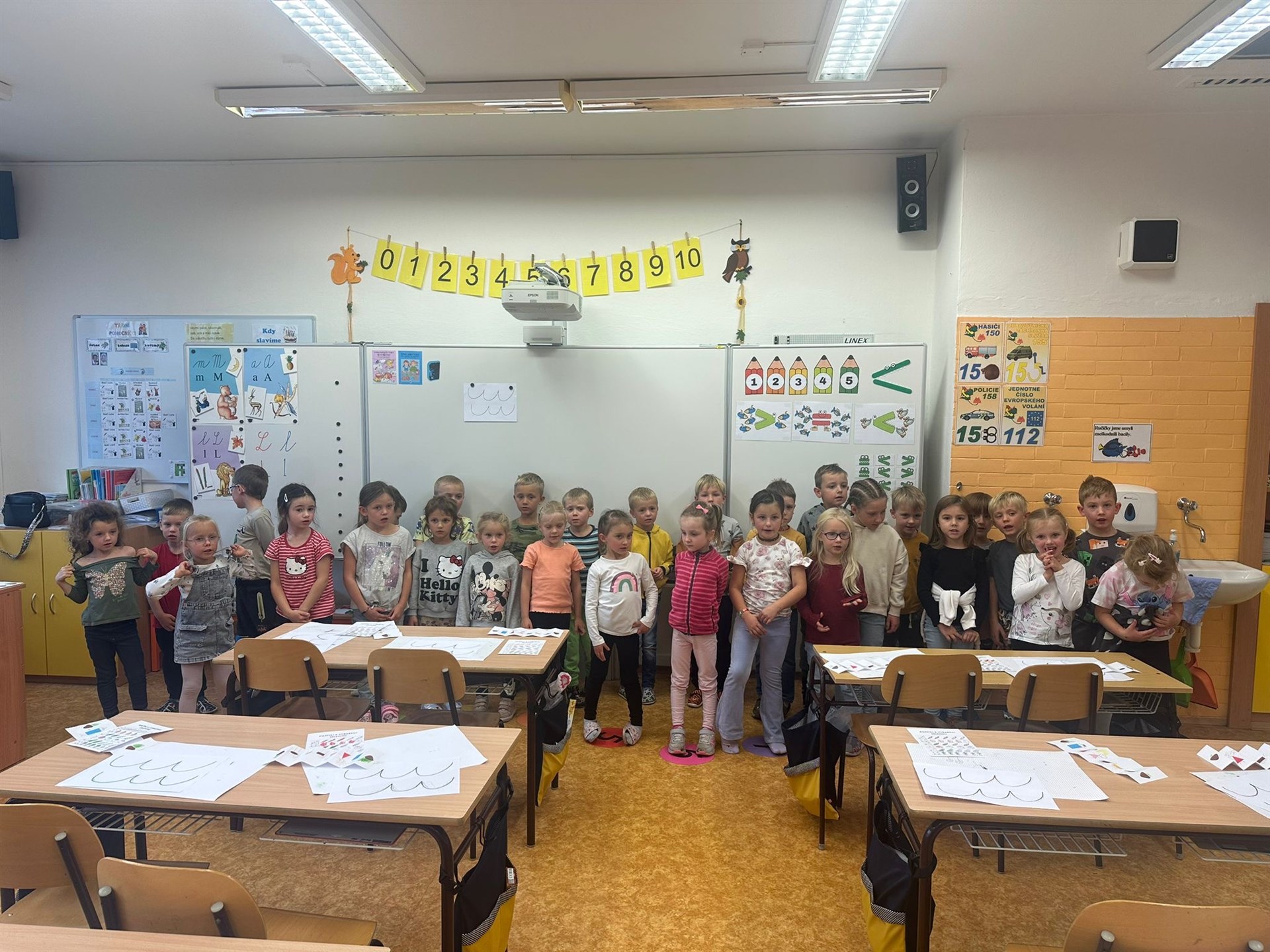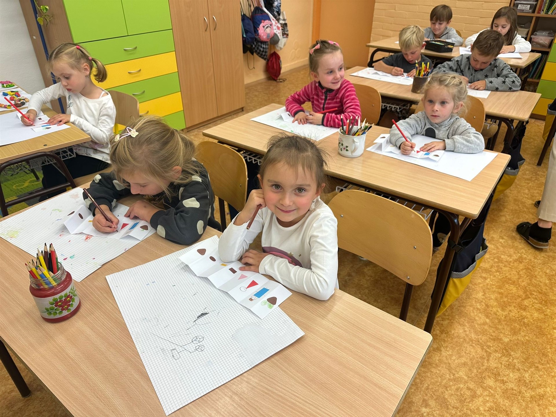 Nechyběla ani hudební chvilka - naučili jsme se písničku O veliké řepě, při které jsme si zároveň procvičili hlas i pohyb. Součástí setkání byly také uvolňovací cviky, které pomáhají dětem připravit se na psaní a zlepšují jejich motoriku. Atmosféra byla veselá a hravá, děti si užily spoustu zábavy a nových zážitků.