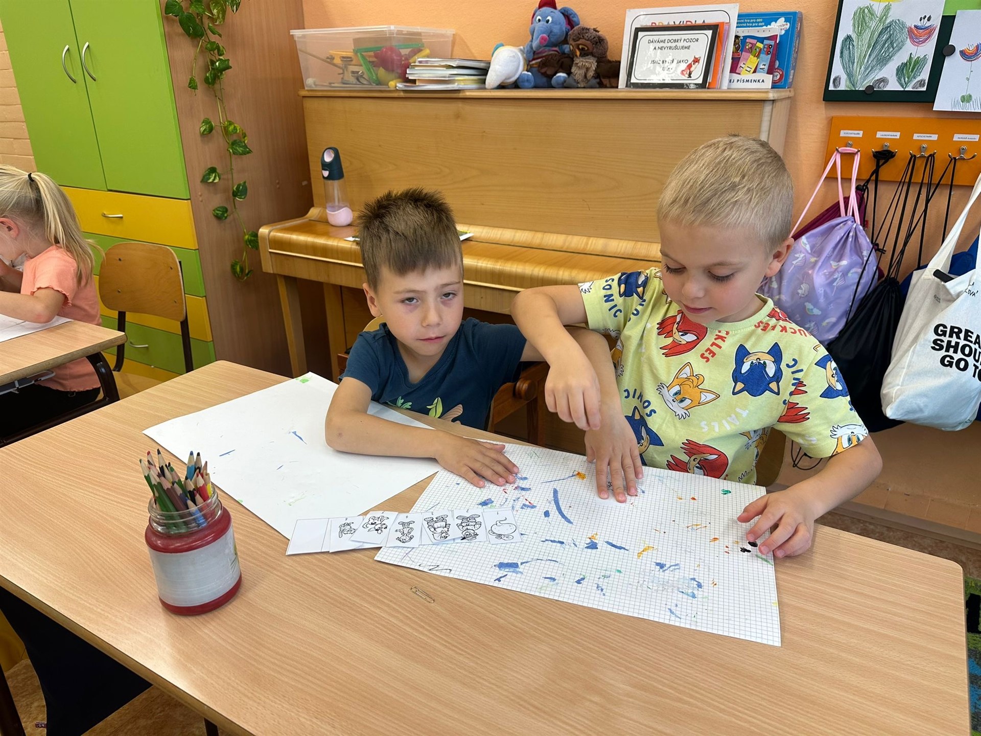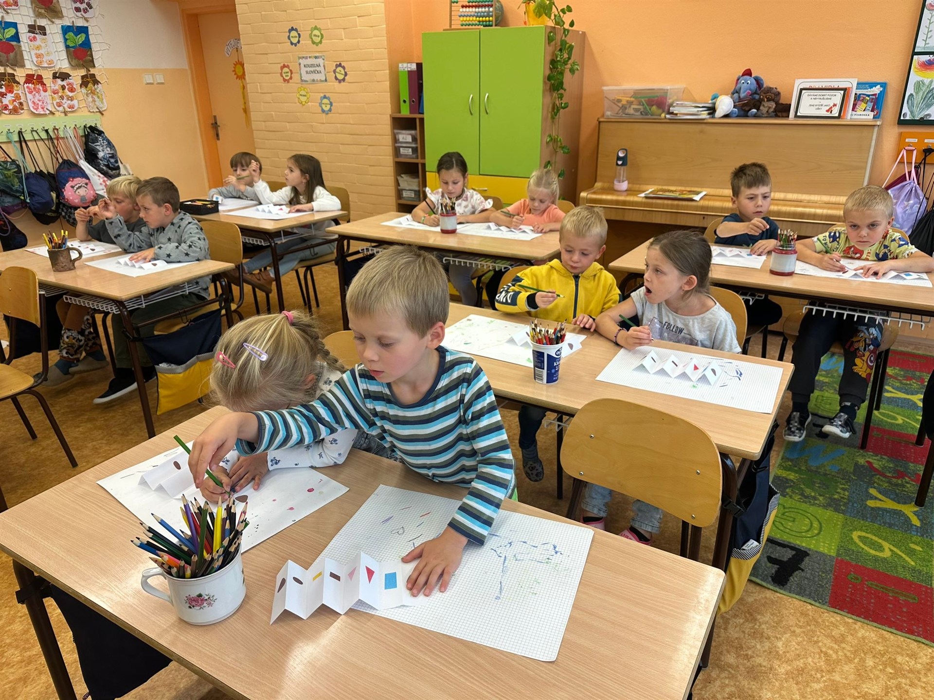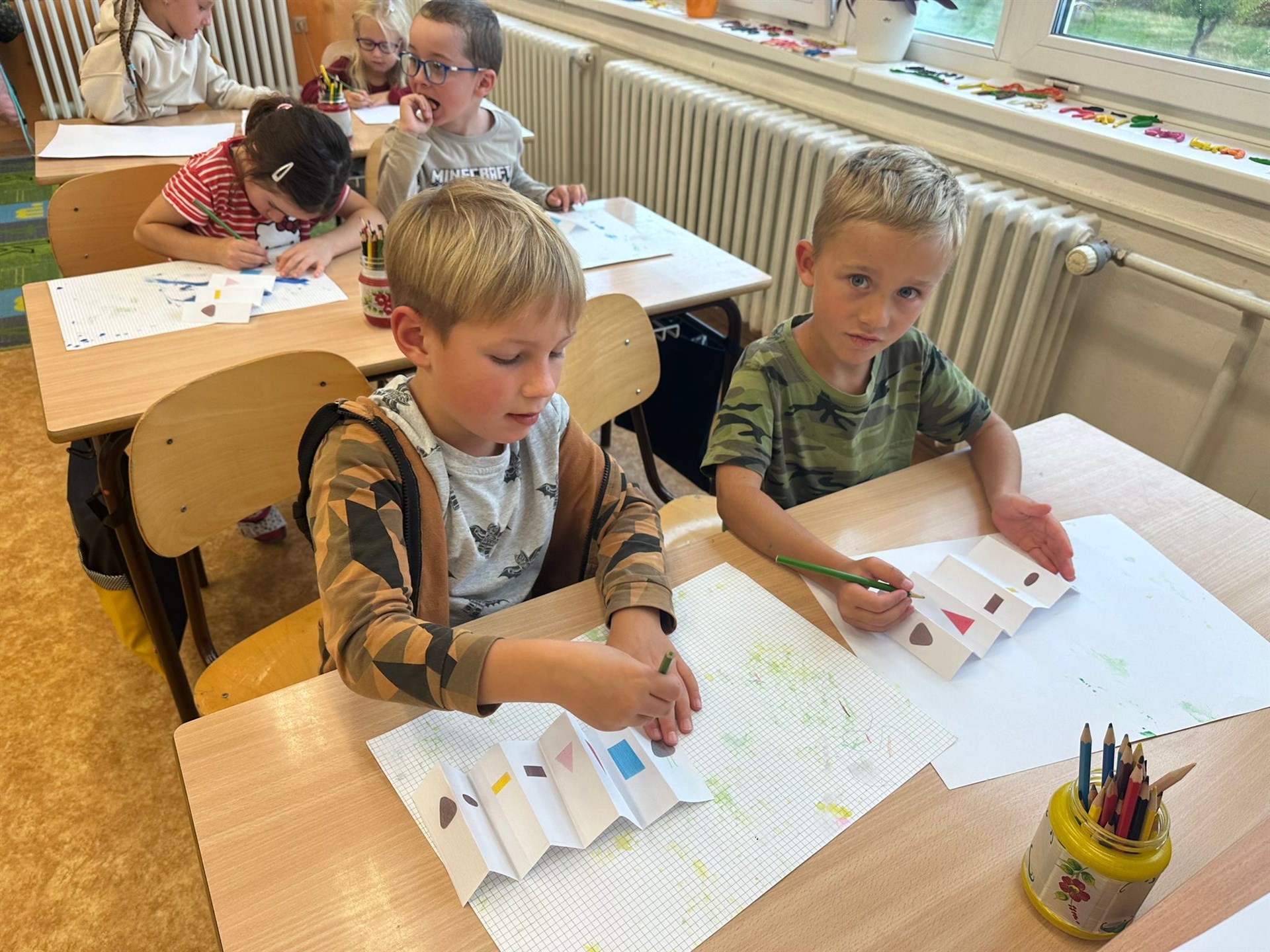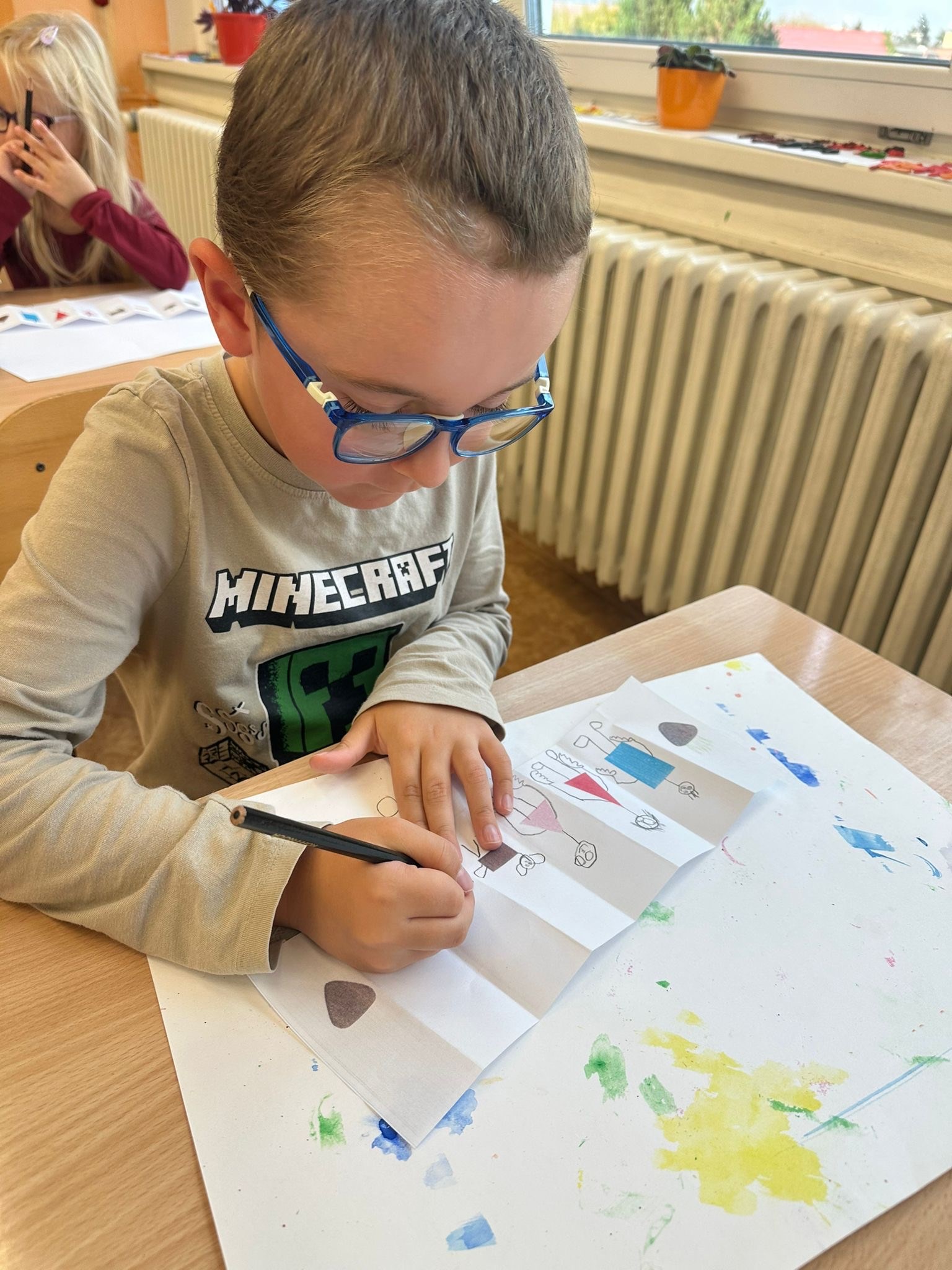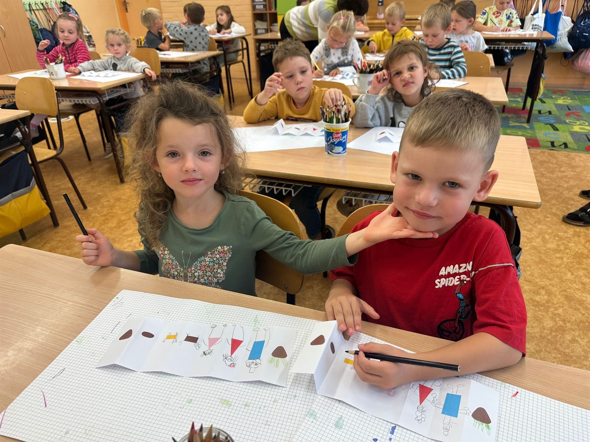 Nechyběla ani hudební chvilka - naučili jsme se písničku O veliké řepě, při které jsme si zároveň procvičili hlas i pohyb. Součástí setkání byly také uvolňovací cviky, které pomáhají dětem připravit se na psaní a zlepšují jejich motoriku. Atmosféra byla veselá a hravá, děti si užily spoustu zábavy a nových zážitků.
