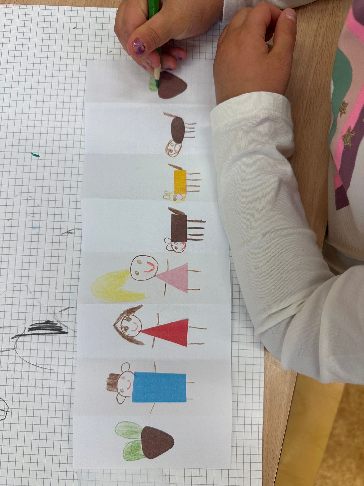Děti si poslechly příběh o dědečkovi, babičce a všech pomocnících, kteří se snažili vytáhnout velikou řepu ze země. Společně jsme pak seřazovali postavy podle toho, jak šly v pohádce za sebou, počítali jsme různé druhy zeleniny a povídali si o tom, co všechno se dá vypěstovat na zahrádce. Vytvořili jsme si taktéž krásné tematické leporelo s geometrickými tvary.
