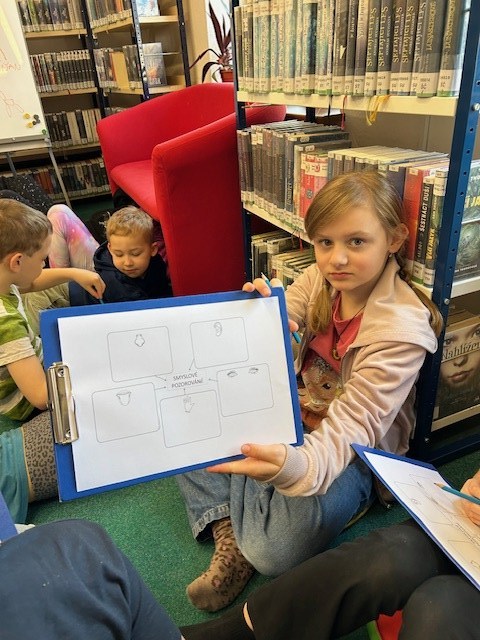 19.3. jsme šli tento školní rok naposledy do knihovny. Paní knihovnice si pro nás připravila ukázku z knížky Oranžáda, Mazarén a Dartaňan od B. Lingrenové. Děti měly v této ukázce hledat vše, co bylo spojeno se smysly a zapsat do připraveného listu. Potom si s p. knihovnicí povídaly o tom, co doplnily a nakonec si opět mohly prohlédnout některé tituly této pobočky. Na knihovnu se budeme těšit už jako žáci 3.r....