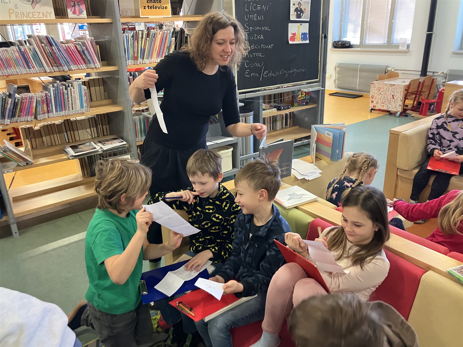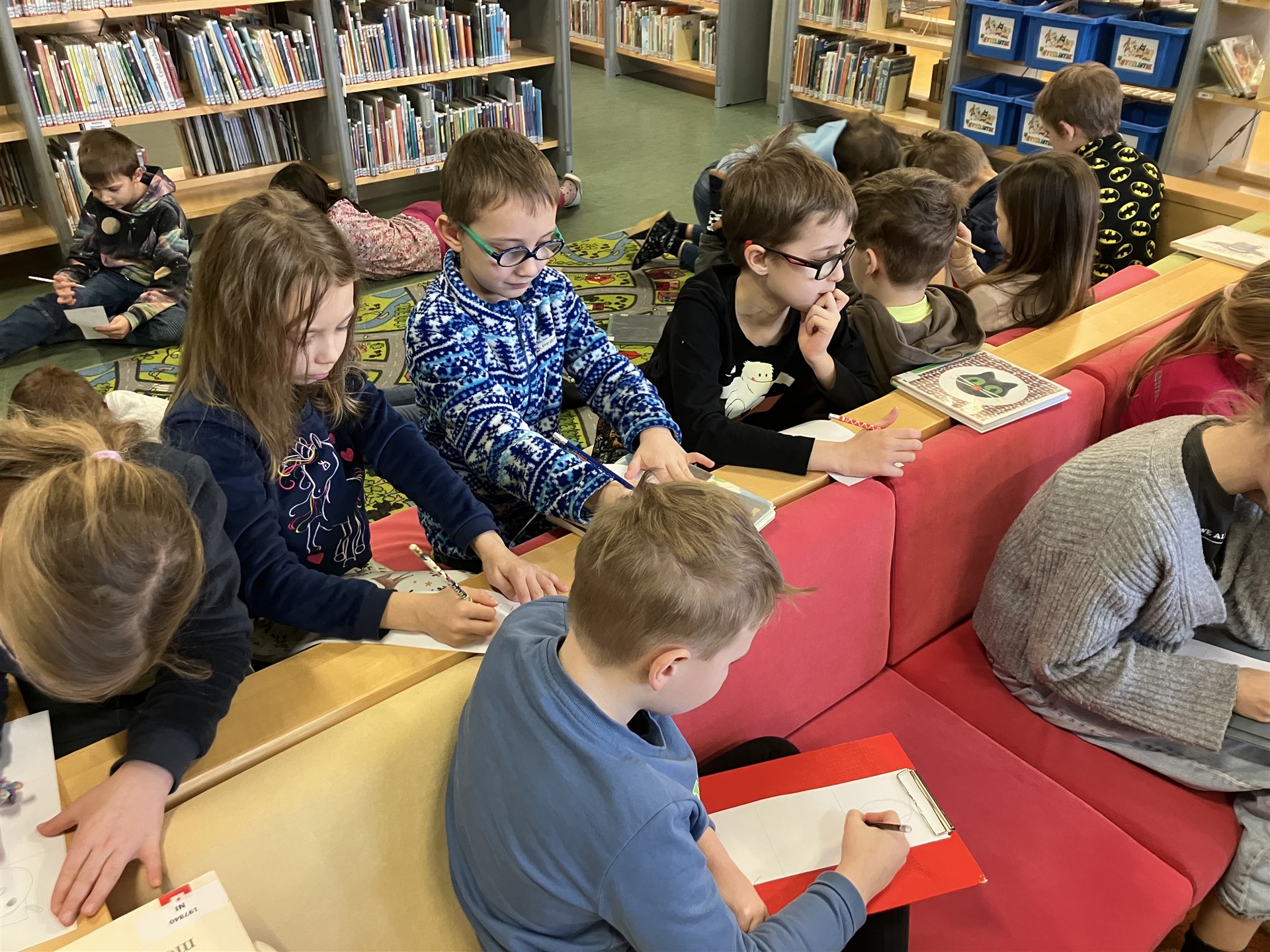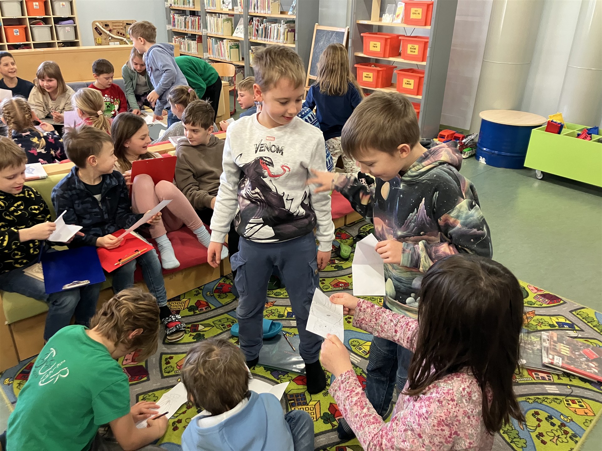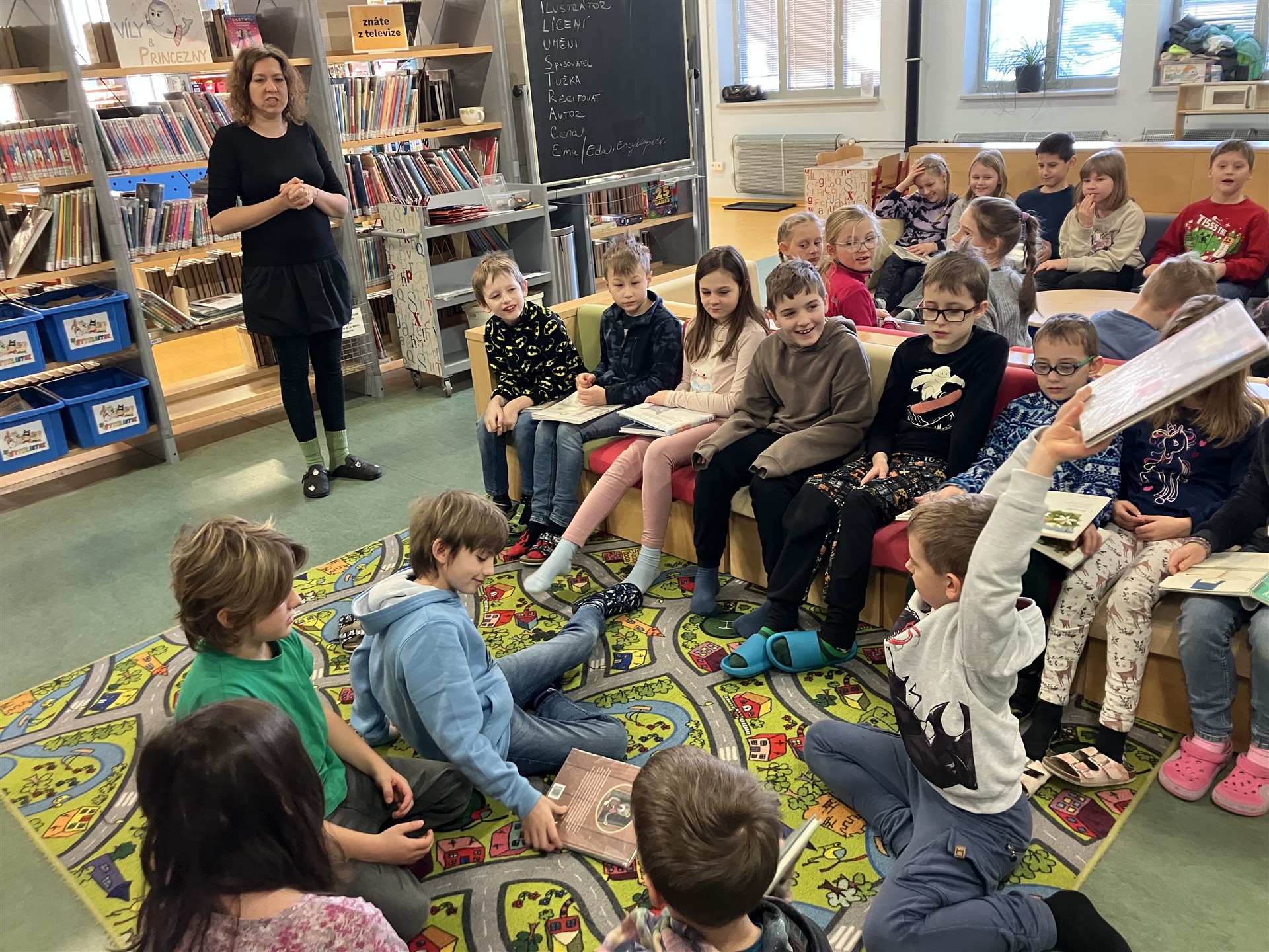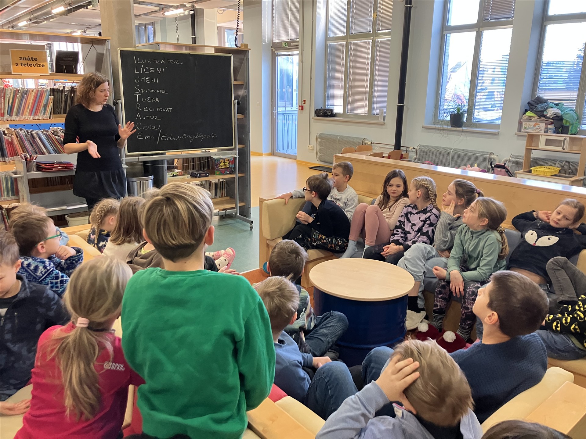Dnes byli žáci 3. C se svojí paní učitelkou a s paní vychovatelkou v knihovně ve Wonkově ulici. Tématem zájmu byly ilustrace v knihách pro děti. Zkoumali jsme techniky tvorby ilustrací. Seznamovali jsme se s předními současnými českými ilustrátory a s jejich dílem. Paní knihovnice hrála s dětmi výukové hry. Ke konci nechybělo individuální projití si knihovny, poznání velkých prostor a jednotlivých oddělení, prolistování zajímavých knih, případně jejich zapůjčení. Mgr. Kamila Dariusová