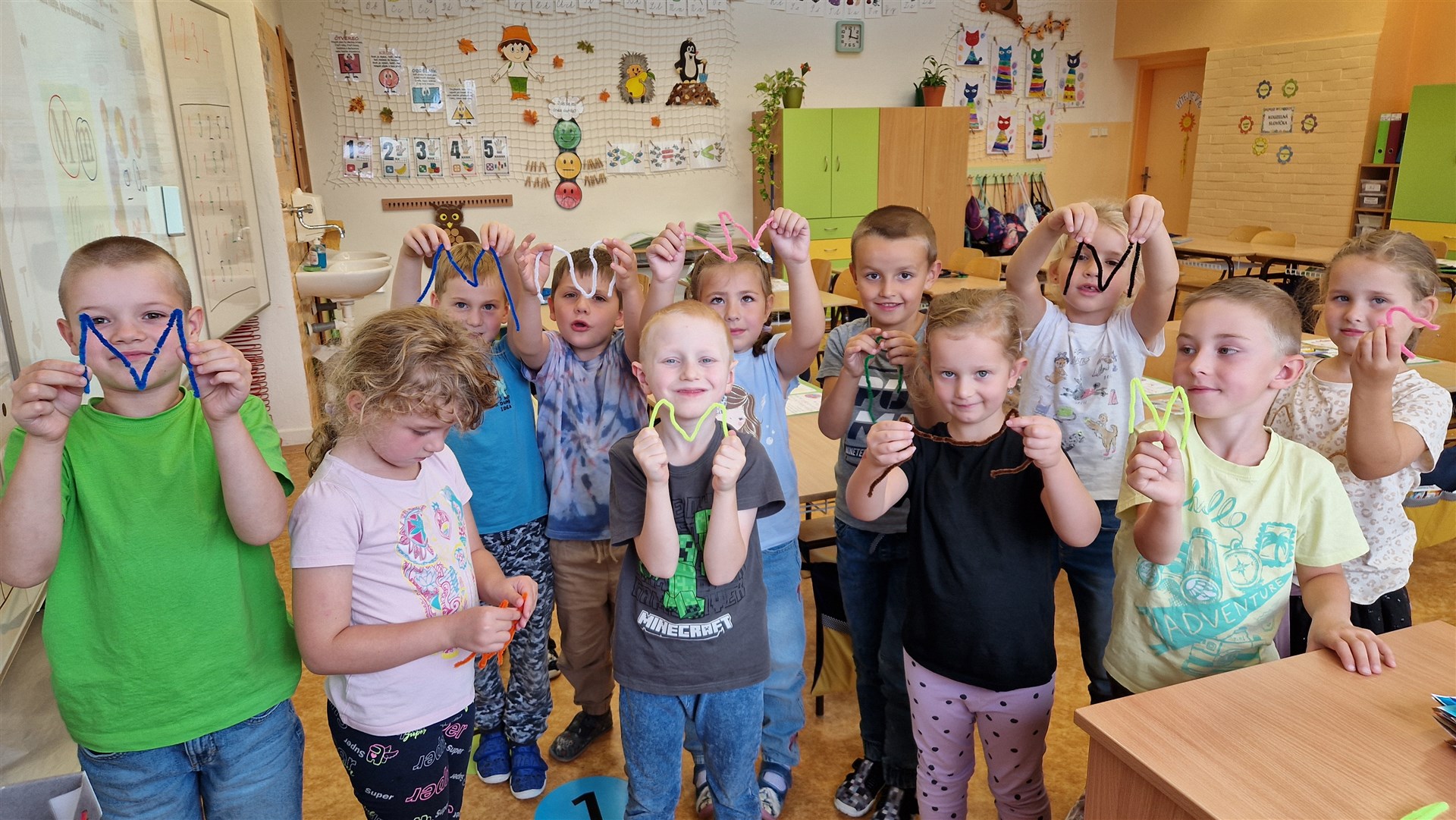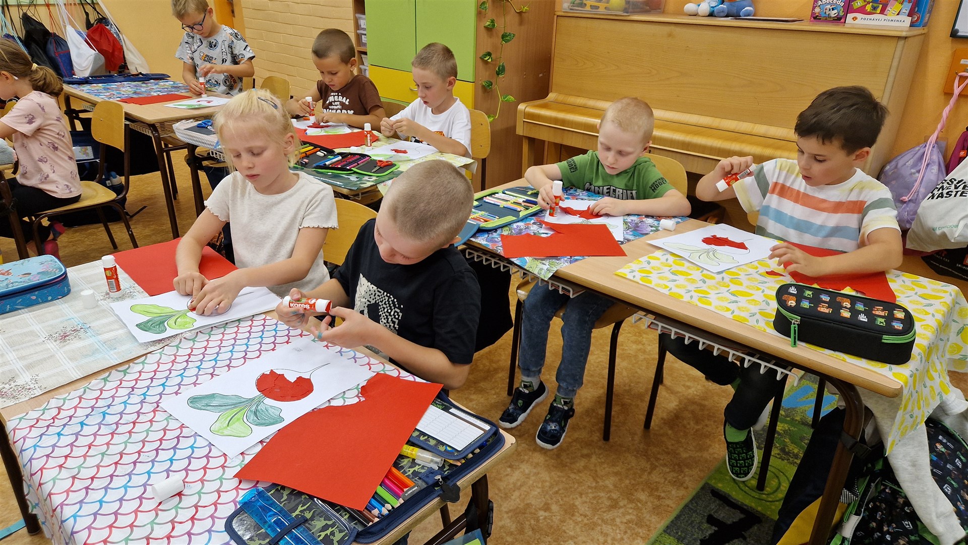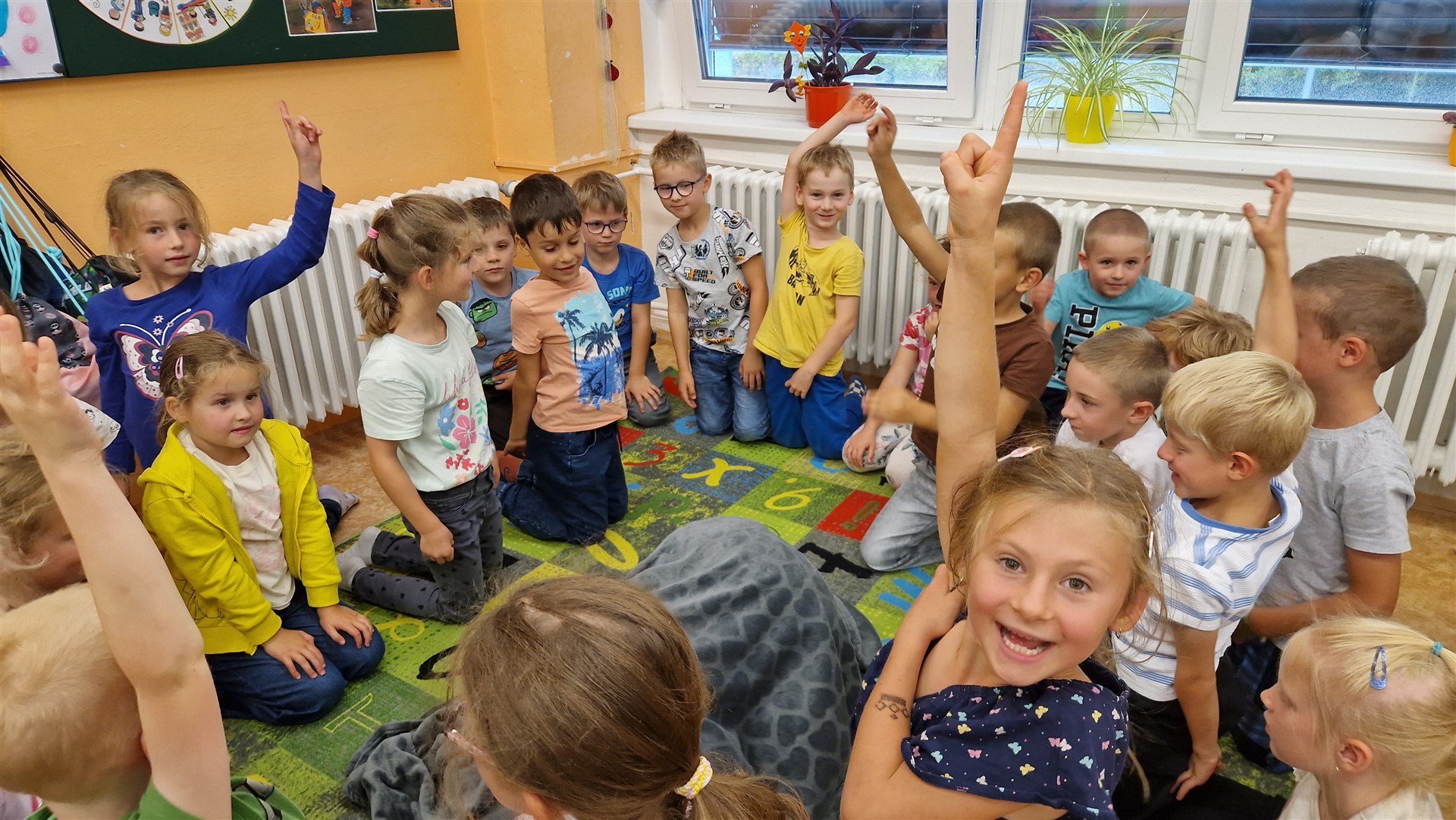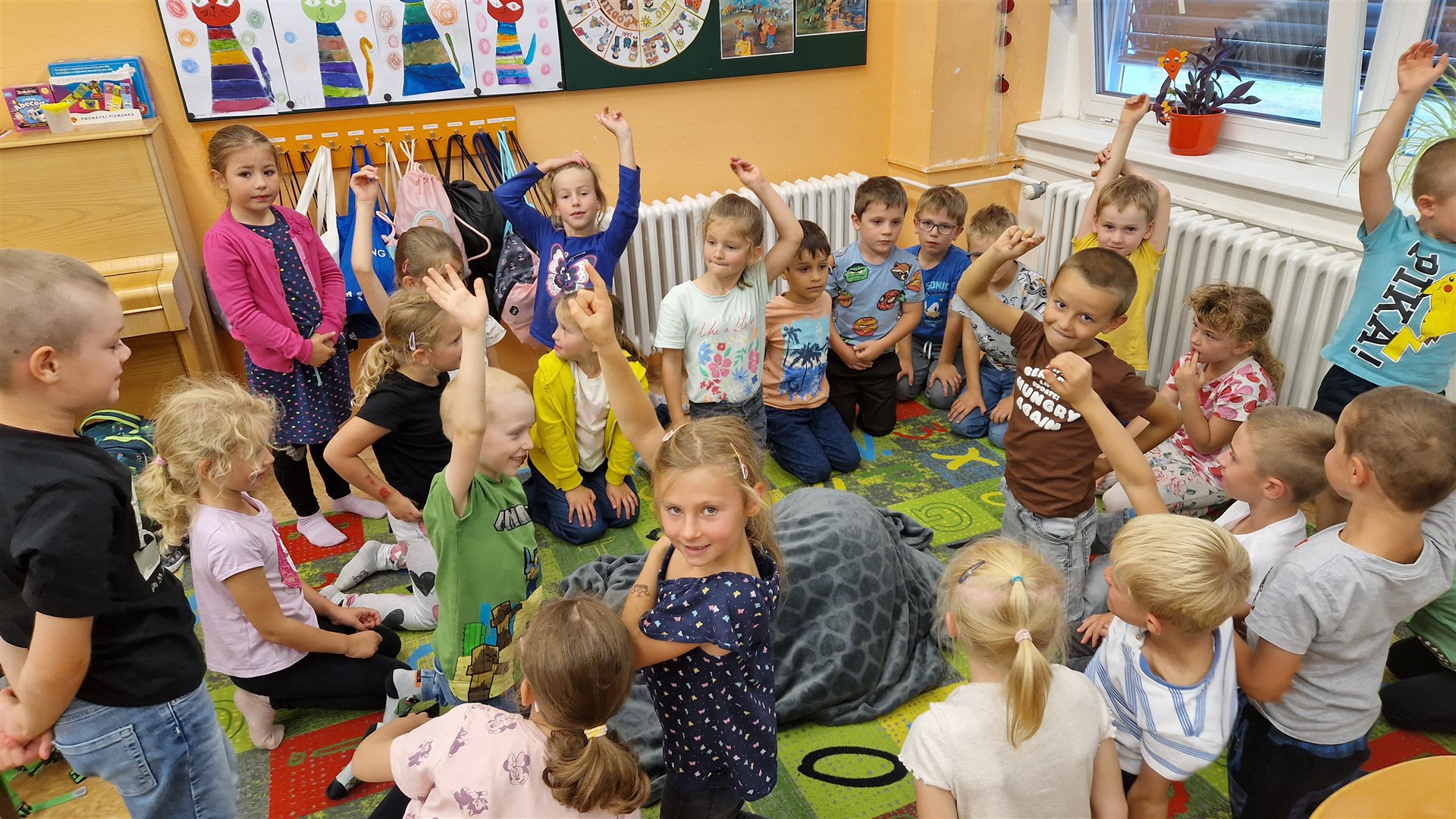 Máme za sebou první dva týdny školy a zasloužíme si velkou pochvalu! Počítáme, hrajeme si se slovy a obrázky, trénujeme prostorovou orientaci, uvolňovacími cviky připravujeme ruce na psaní a zbývá čas i na dramatizaci pohádky - třeba tu "O veliké řepě".
