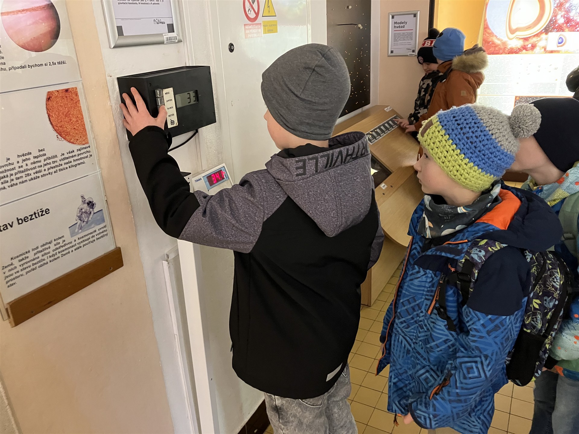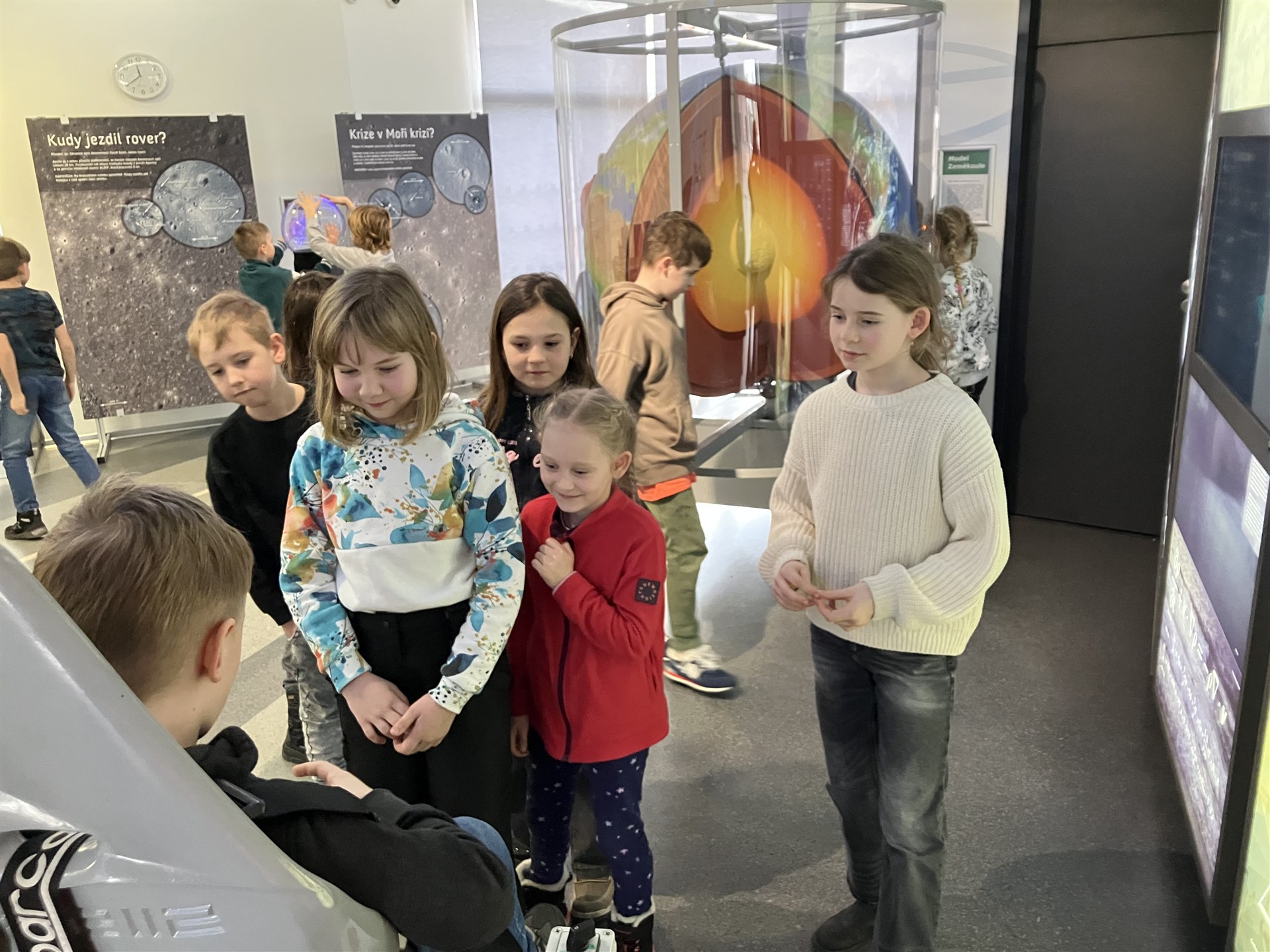 Dnes byli žáci ze 3. C se svojí paní učitelkou a s paní vychovatelkou na hvězdárně. Navštívili jsme planetárium, po prohlédnutí všech zajímavých informací a přístrojů na ochozech planetária jsme uvnitř shlédli promítání k noční obloze se souhvězdími, s planetami, které je možno pozorovat, prolétli jsme se kosmickým plavidlem po naší Sluneční soustavě od Slunce až k jejím samotným okrajům, na závěr byla ještě vesmírná pohádka, vysvětlující hlavně práci vědců, dále pohyby naší planety Země, ukazovala i ostatní planety, prstence u Saturnu, povrch Marsu atd. Na závěr jsme se podívali i do staré budovy hvězdárny, děti se zvážily na vesmírné váze, která jim ukázala hmotnost, jakou by měly na jiných tělesech Sluneční soustavy, na vzpomínku si koupily i drobnosti a suvenýry v obchůdku. S novými poznatky a dojmy jsme se vrátili do školy. Děti své získané znalosti použijí při výuce o vesmíru v Prvouce. Mgr. Dariusová