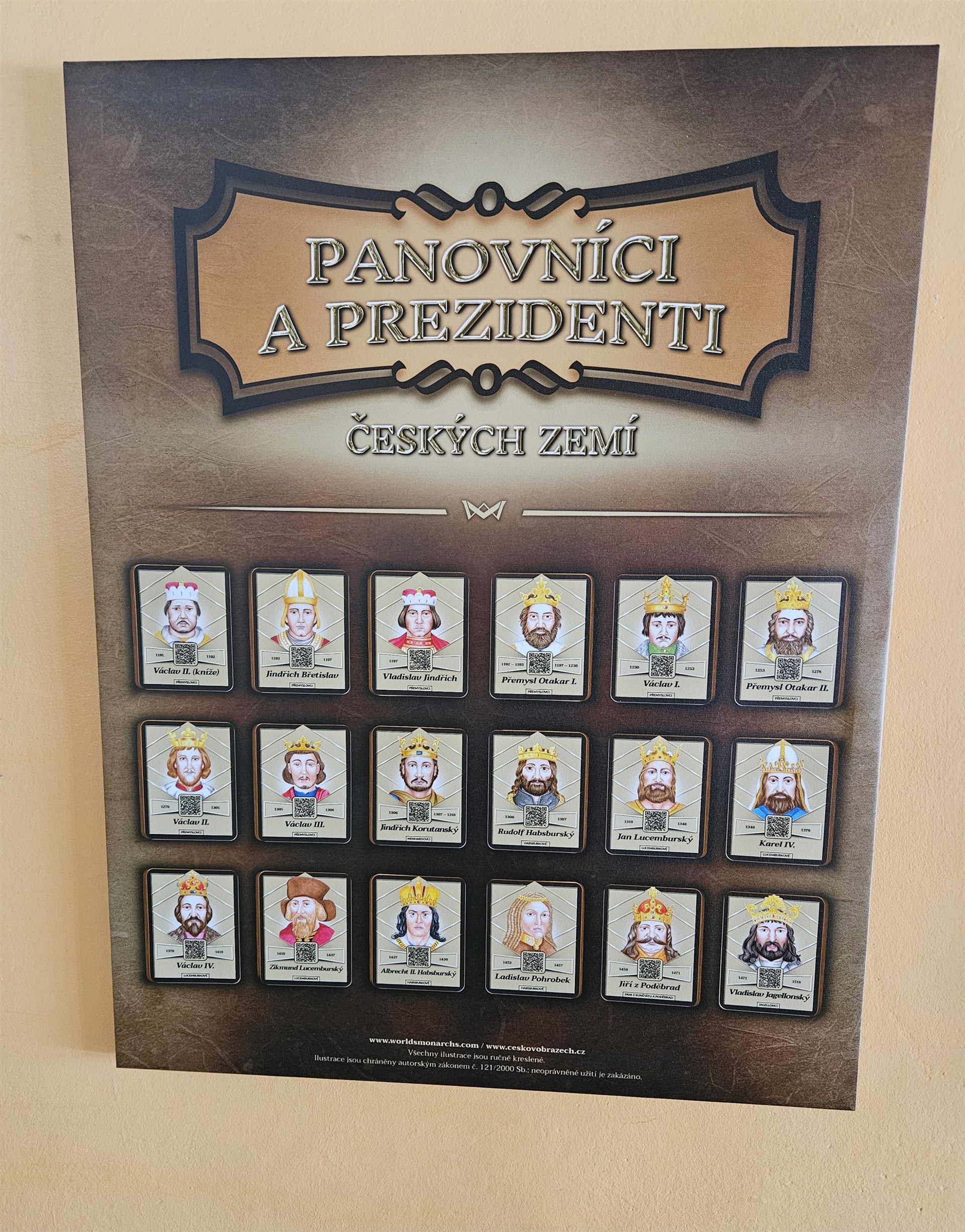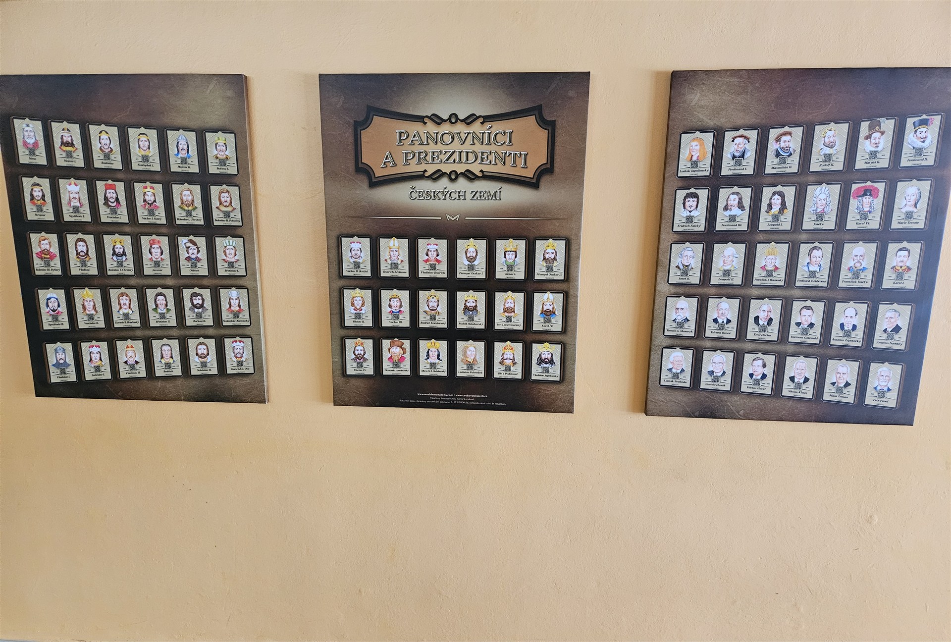 U každé osobnosti je QR kód, na který lze namířit mobilní telefon a otevře se vám webová stránka WORLDSMONARCHS.COM.