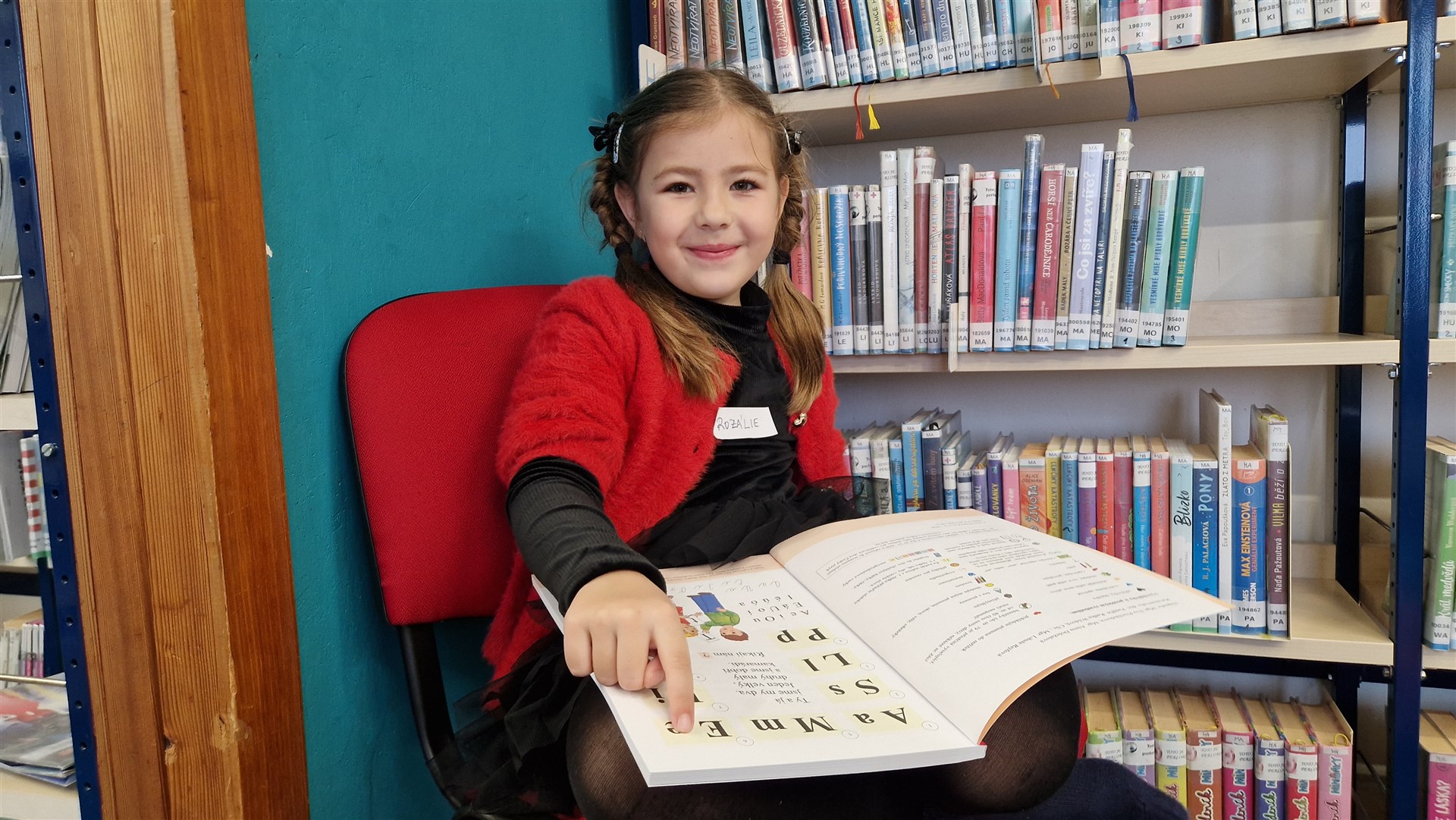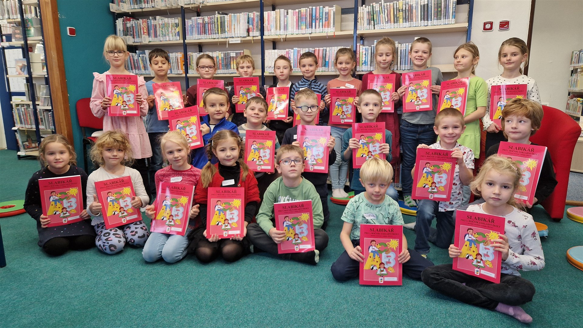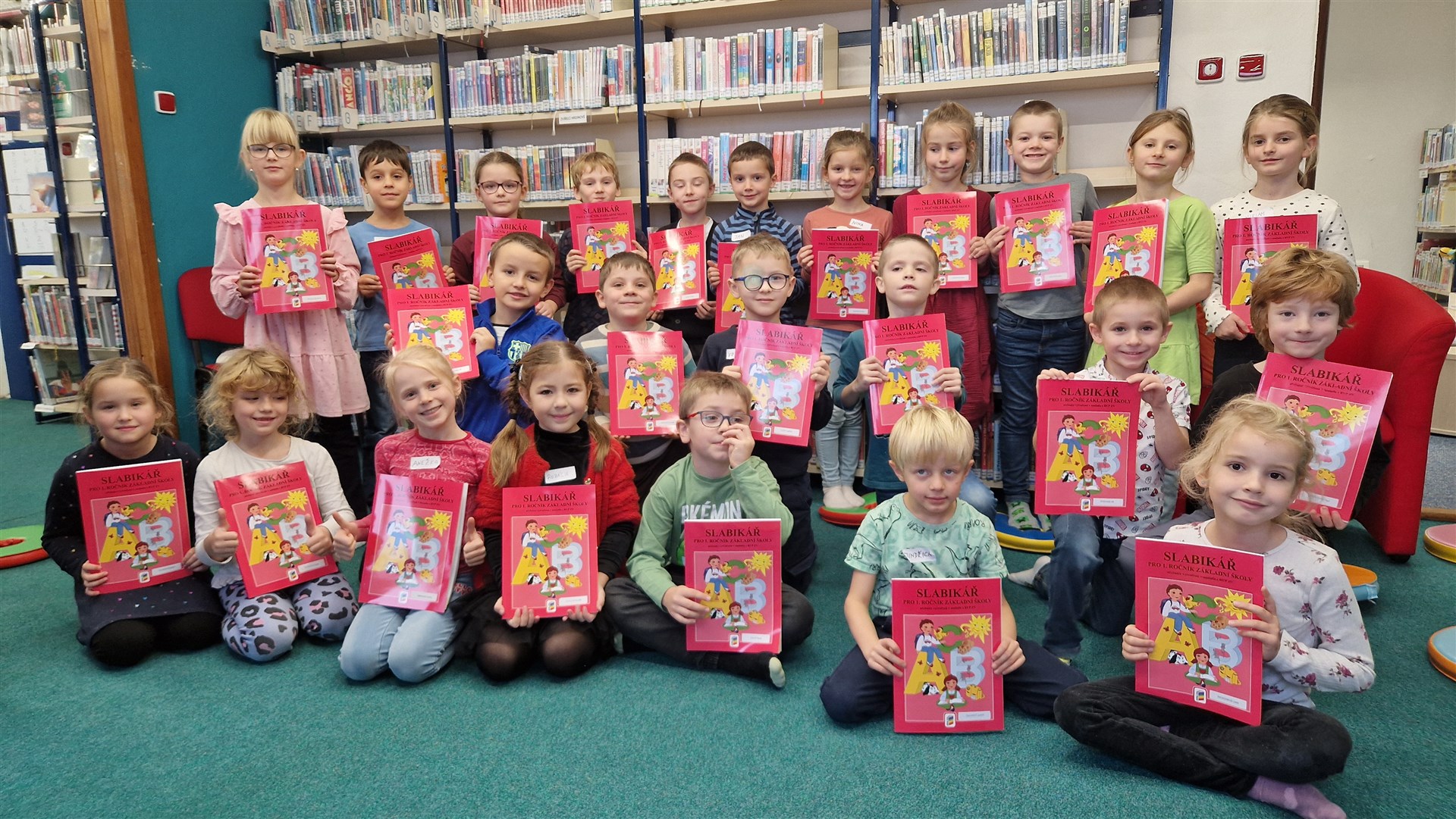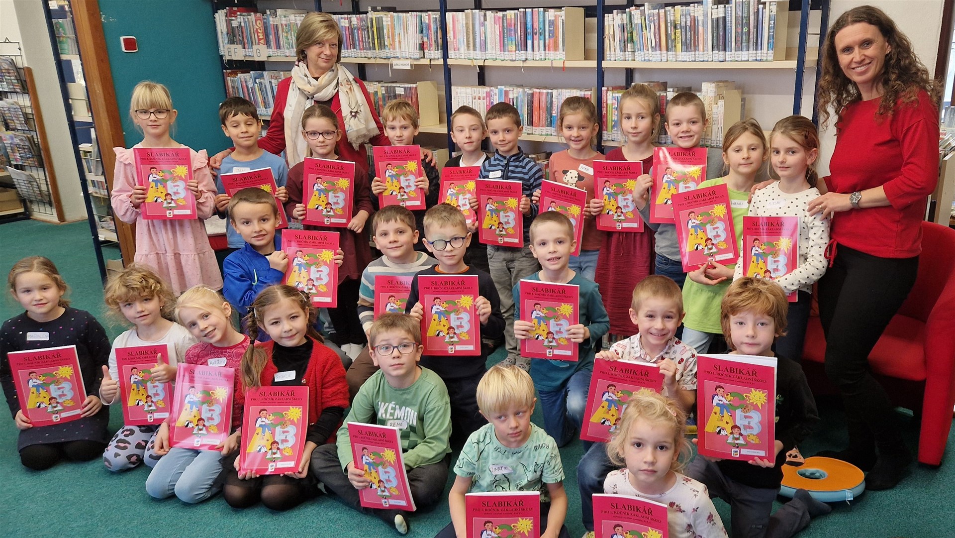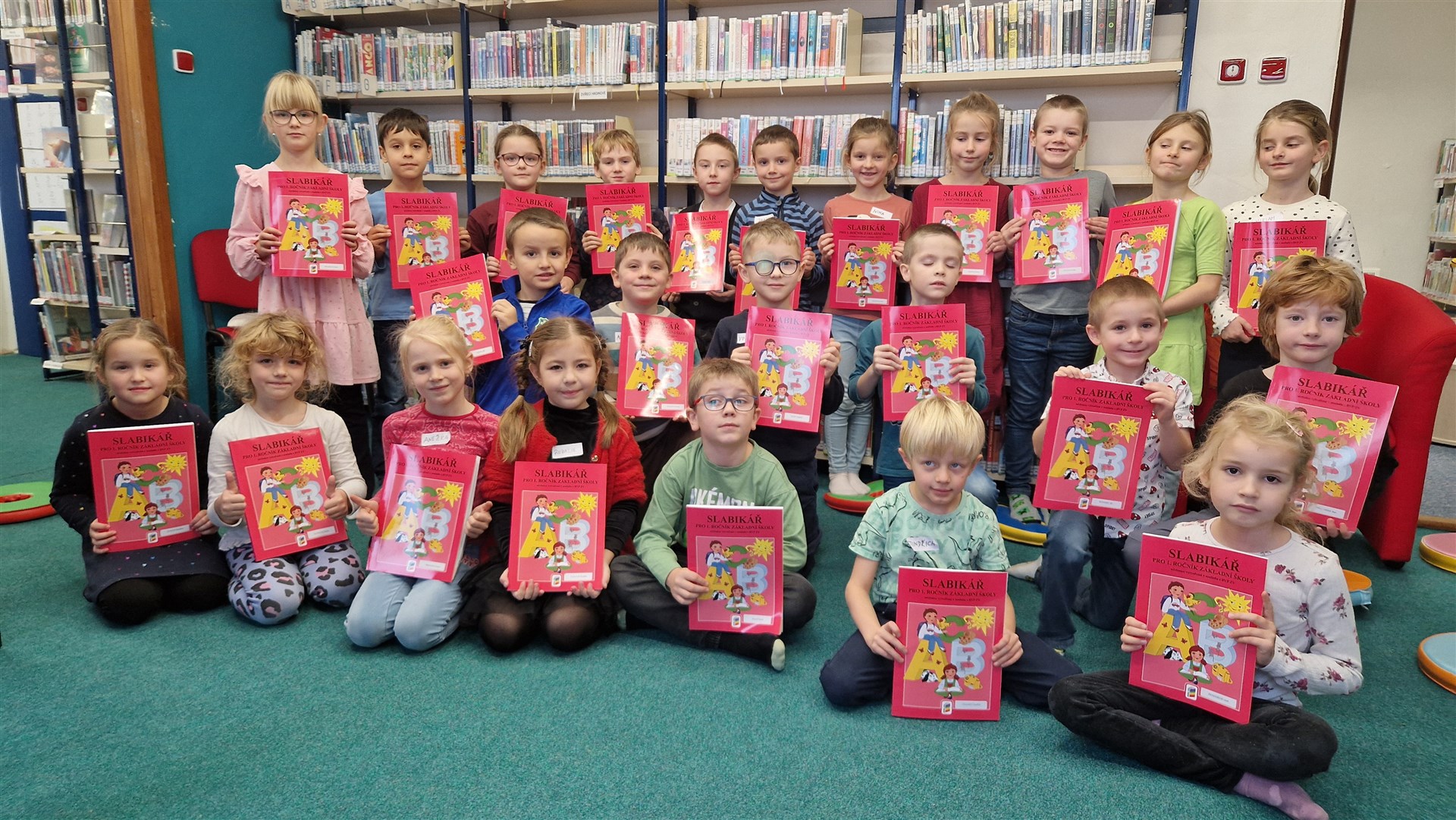 Předávání Slabikářů v knihovně v Malšovicích (1. C)