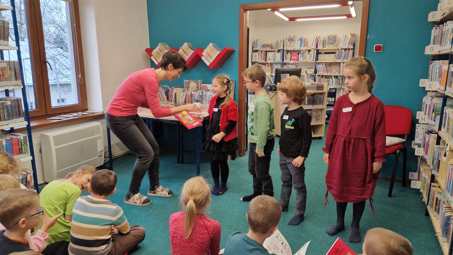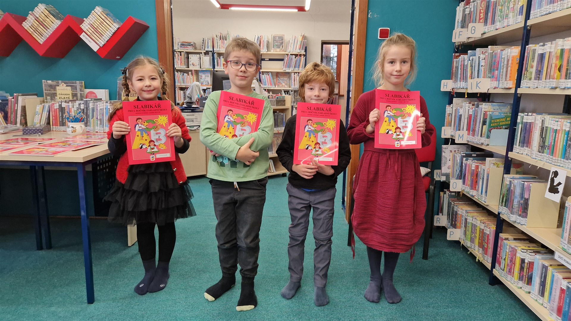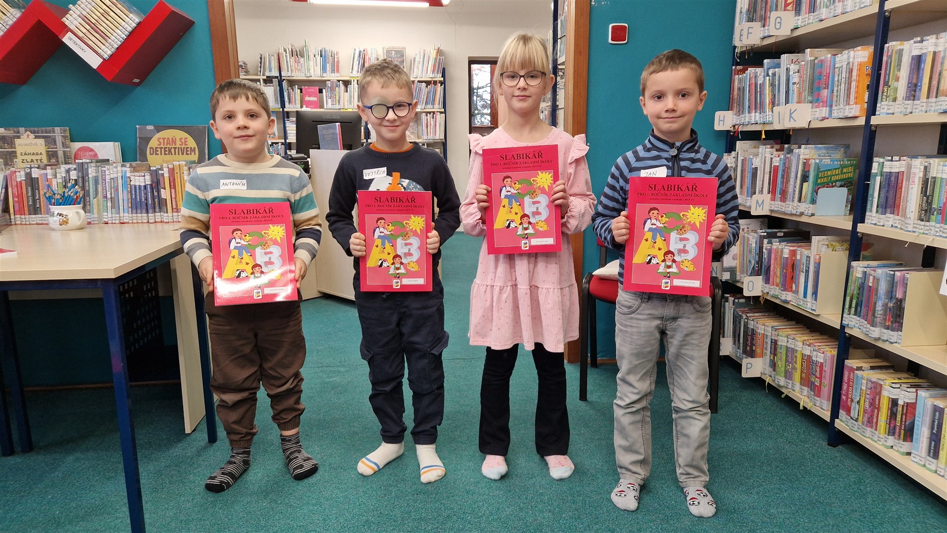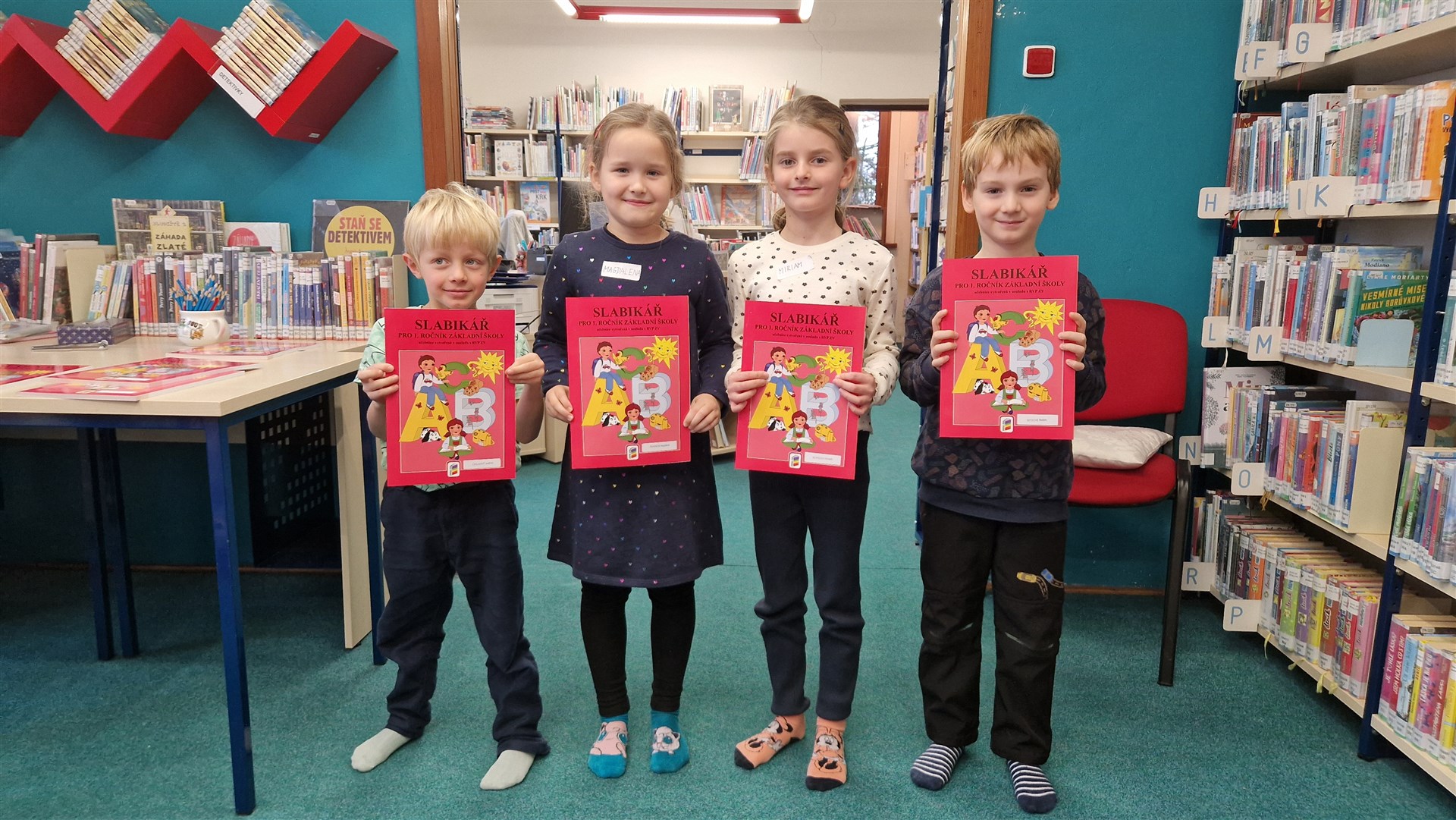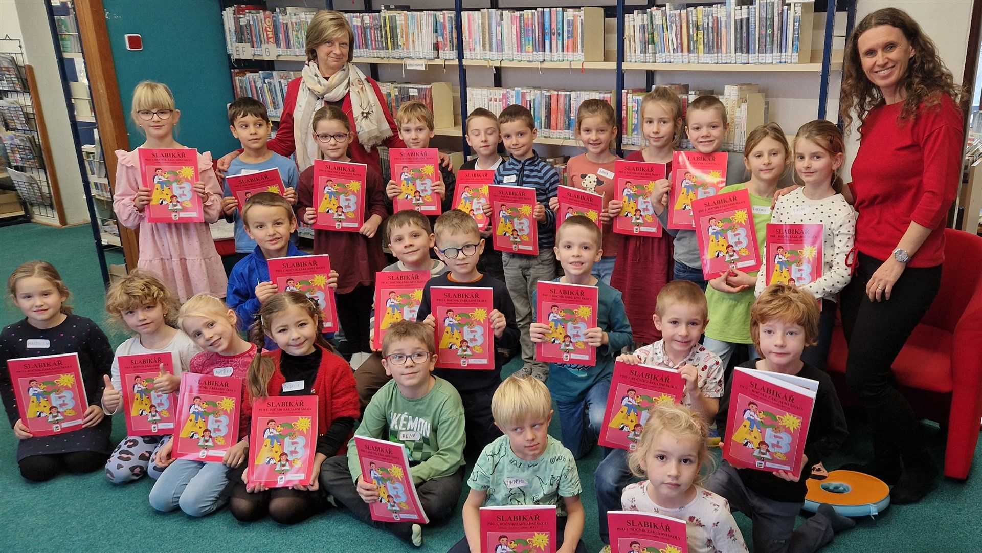 Předávání Slabikářů v knihovně v Malšovicích (1. C)