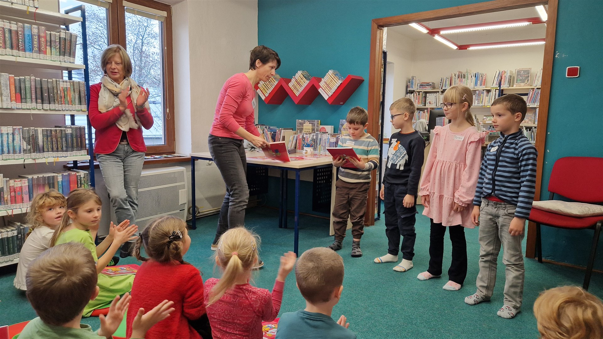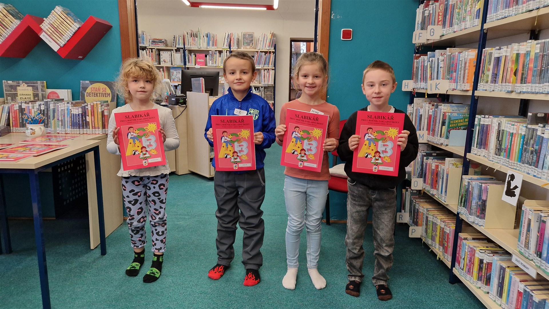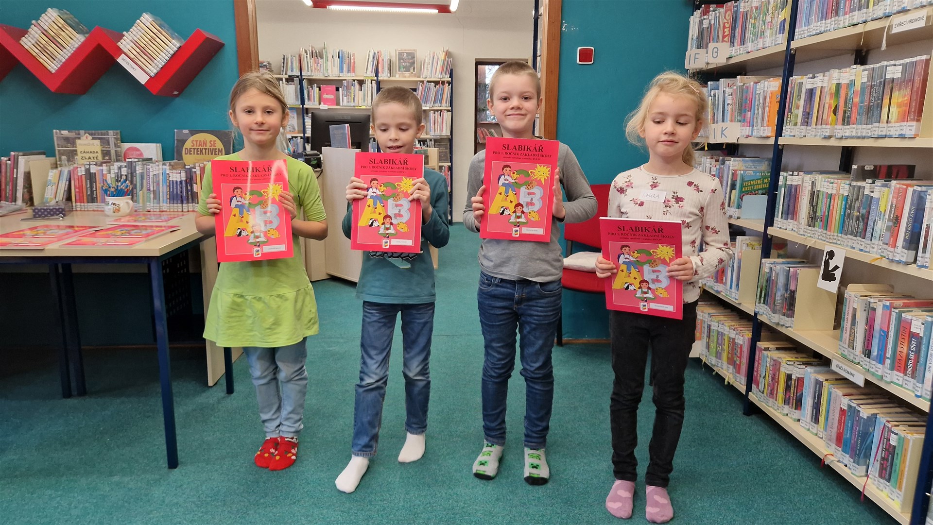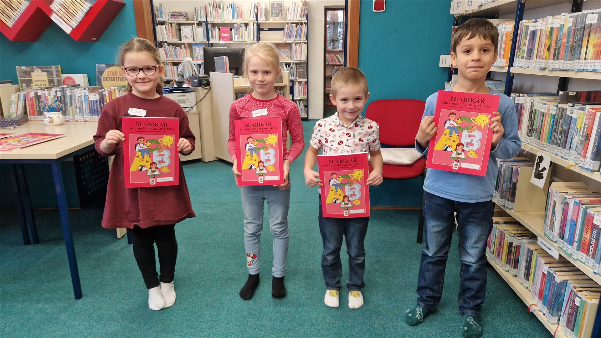 Předávání Slabikářů v knihovně v Malšovicích (1. C)