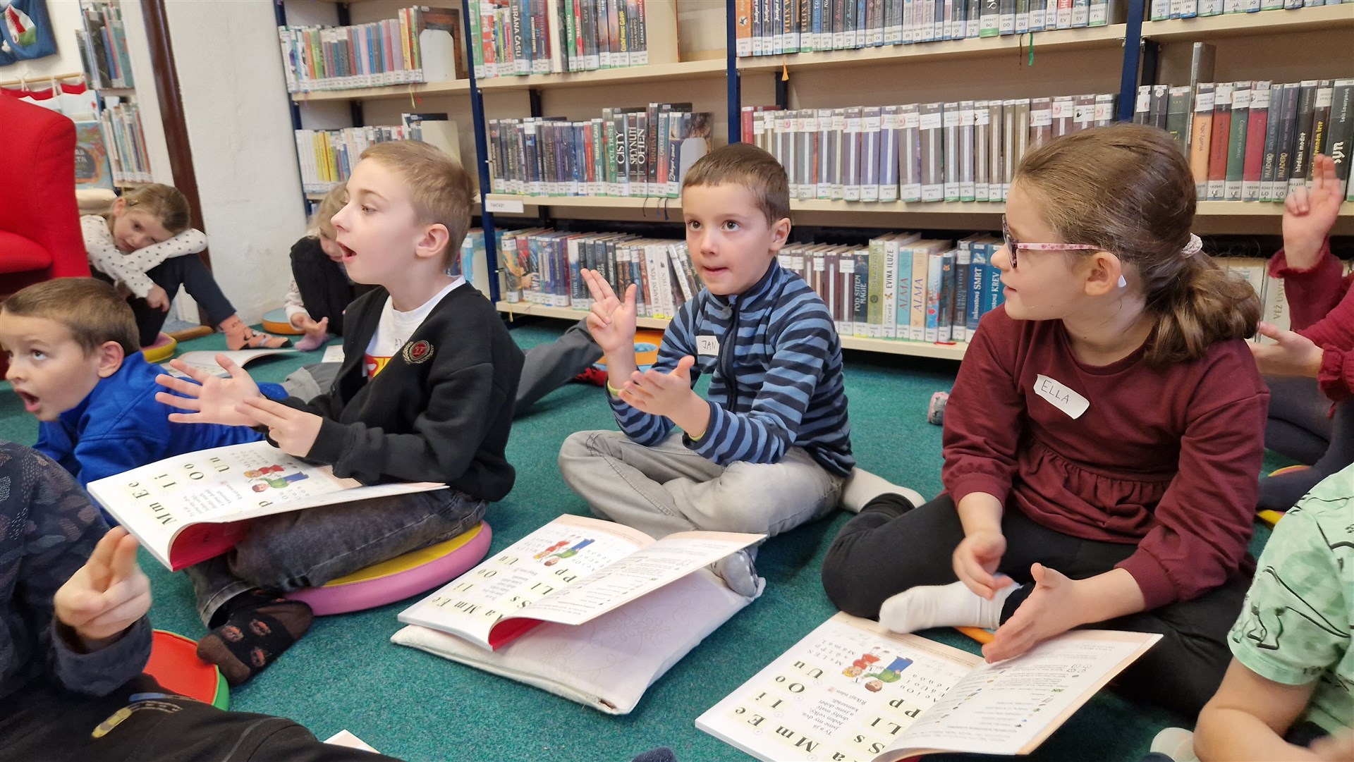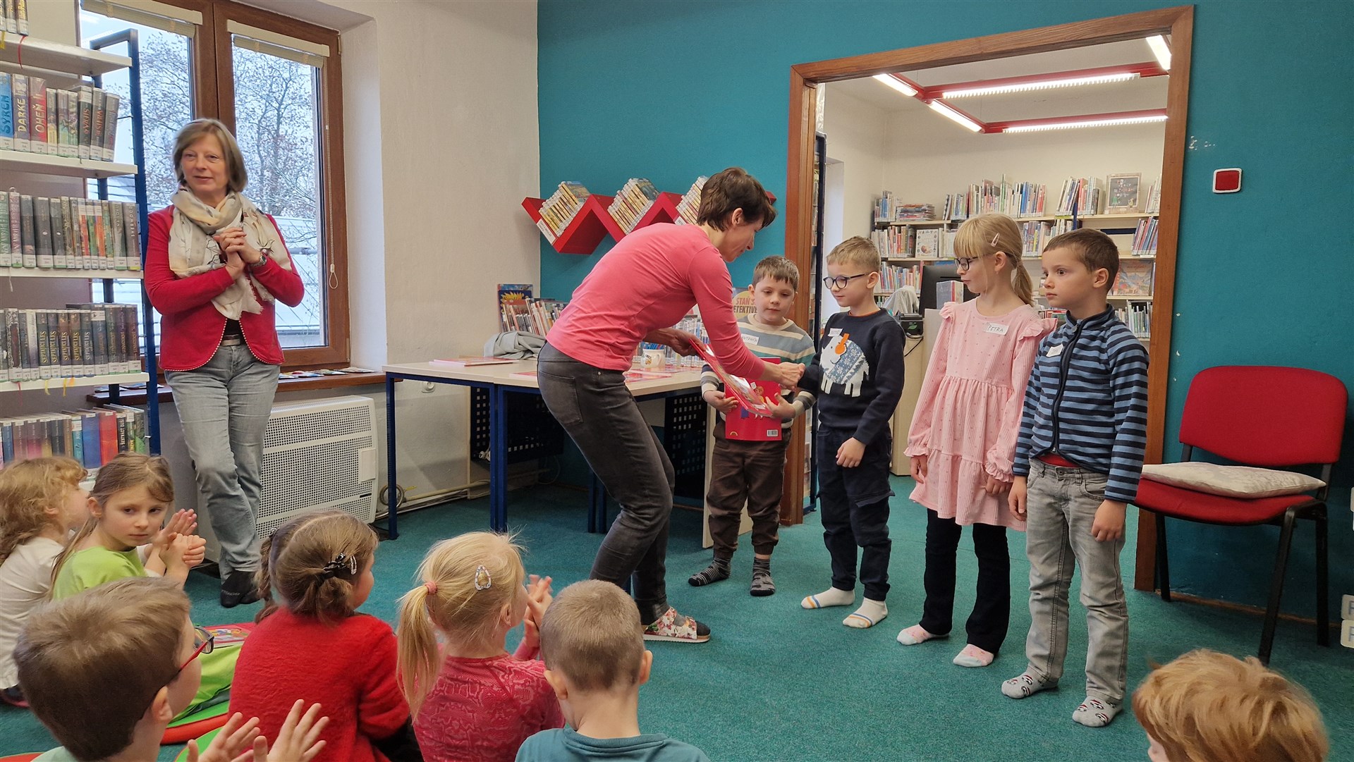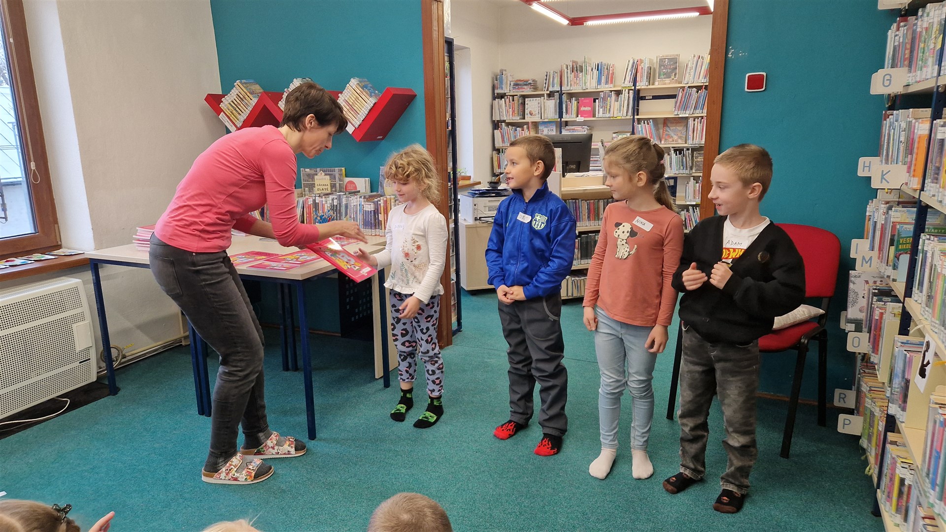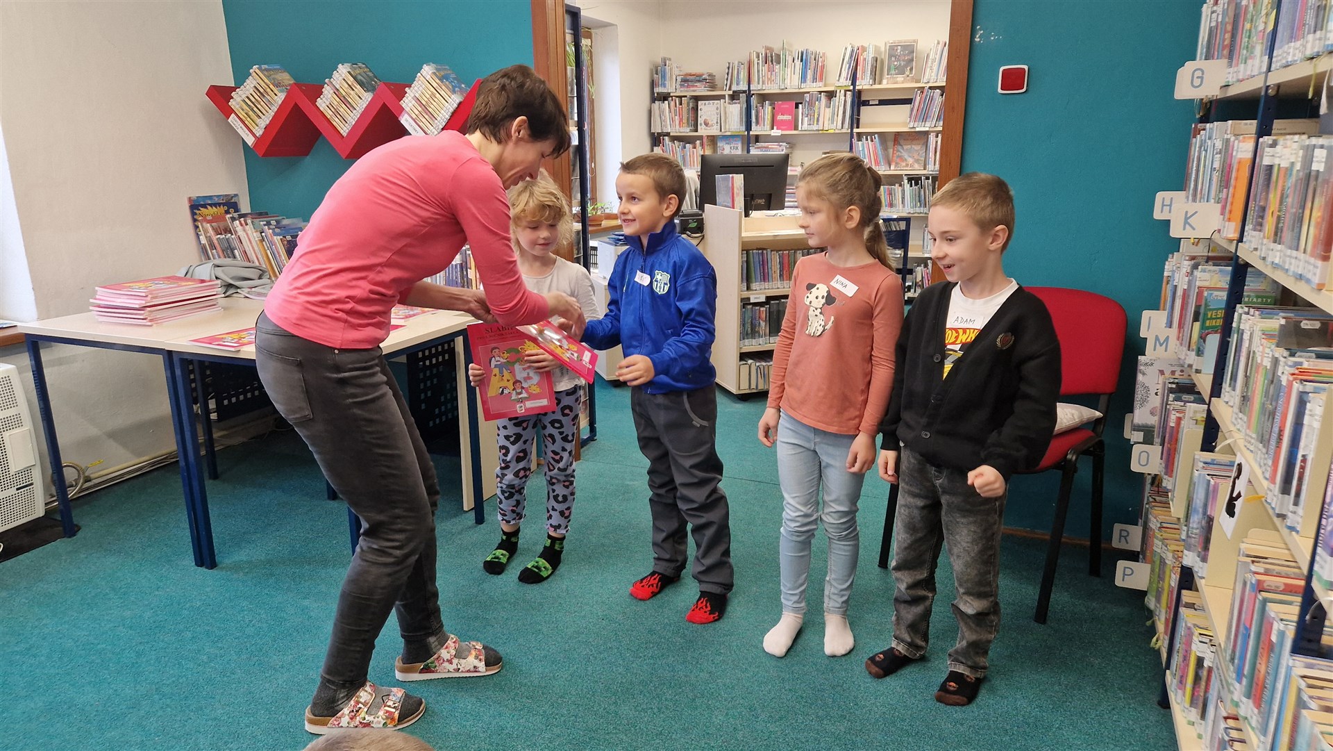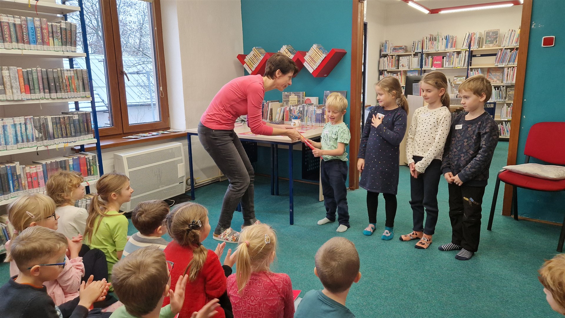 Předávání Slabikářů v knihovně v Malšovicích (1. C)
