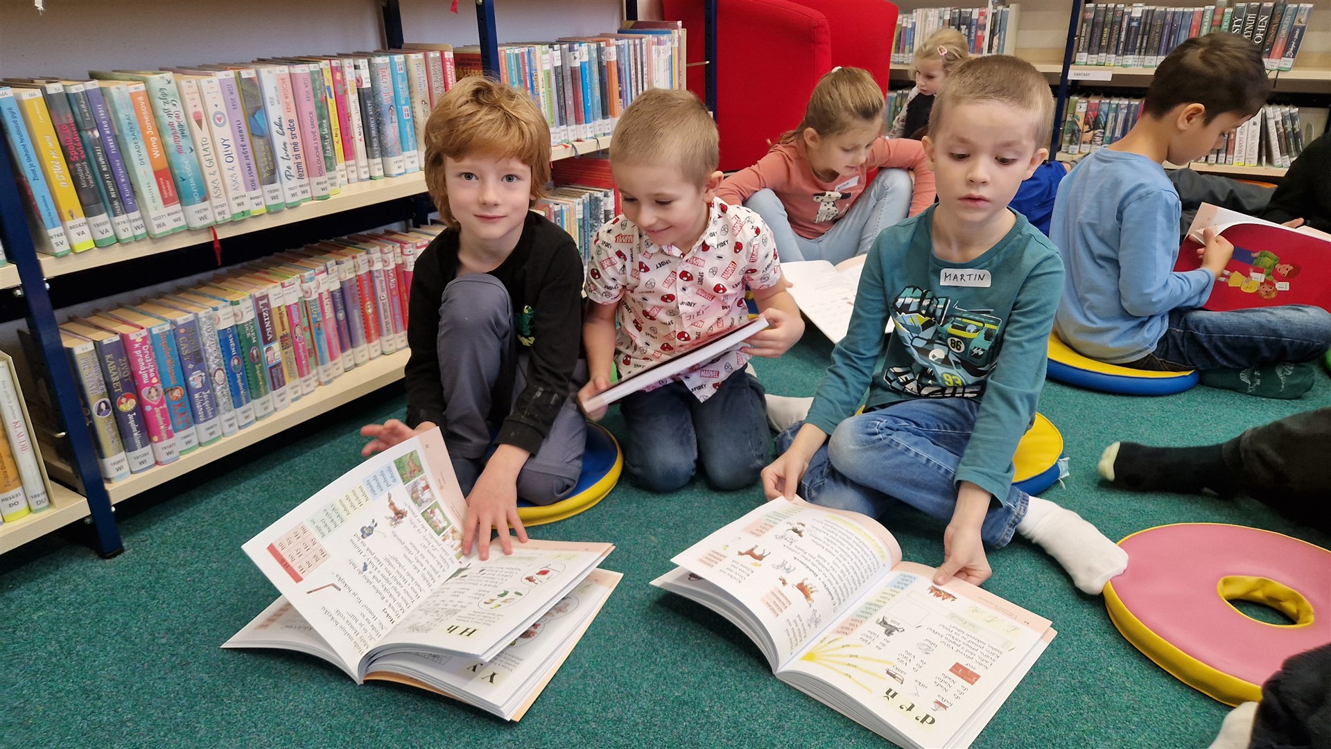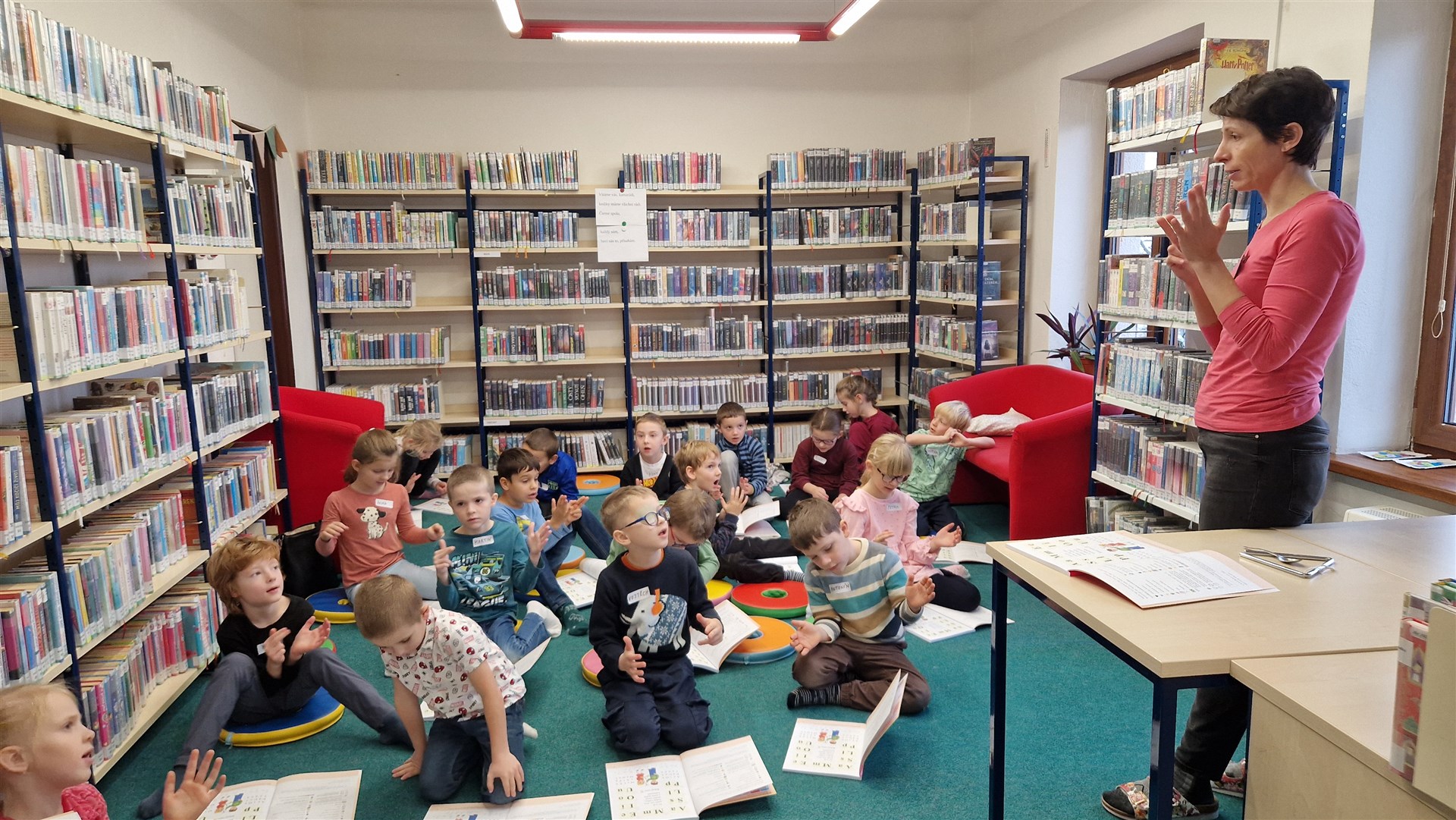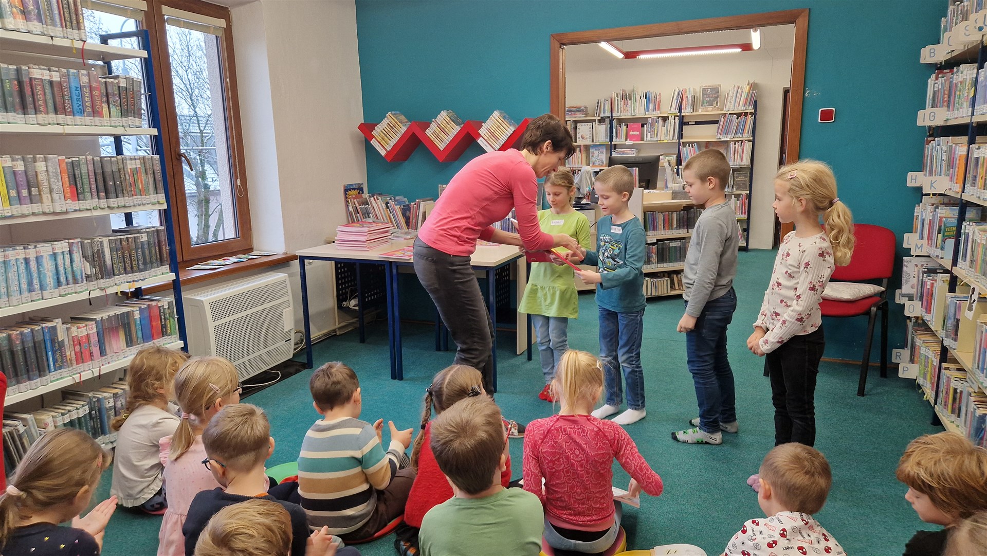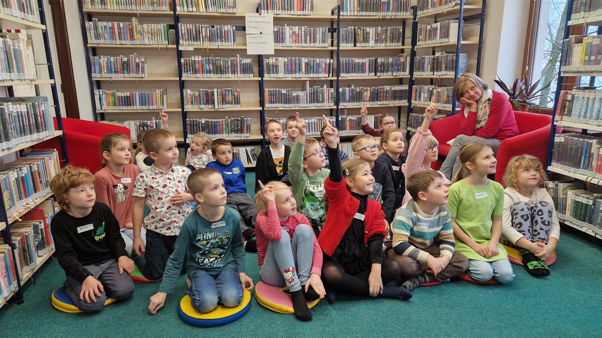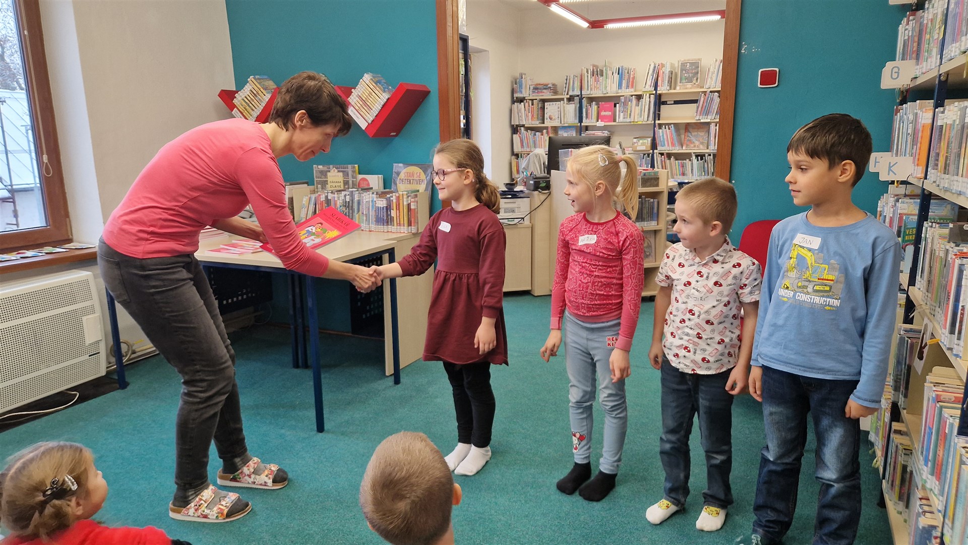 Předávání Slabikářů v knihovně v Malšovicích (1. C)