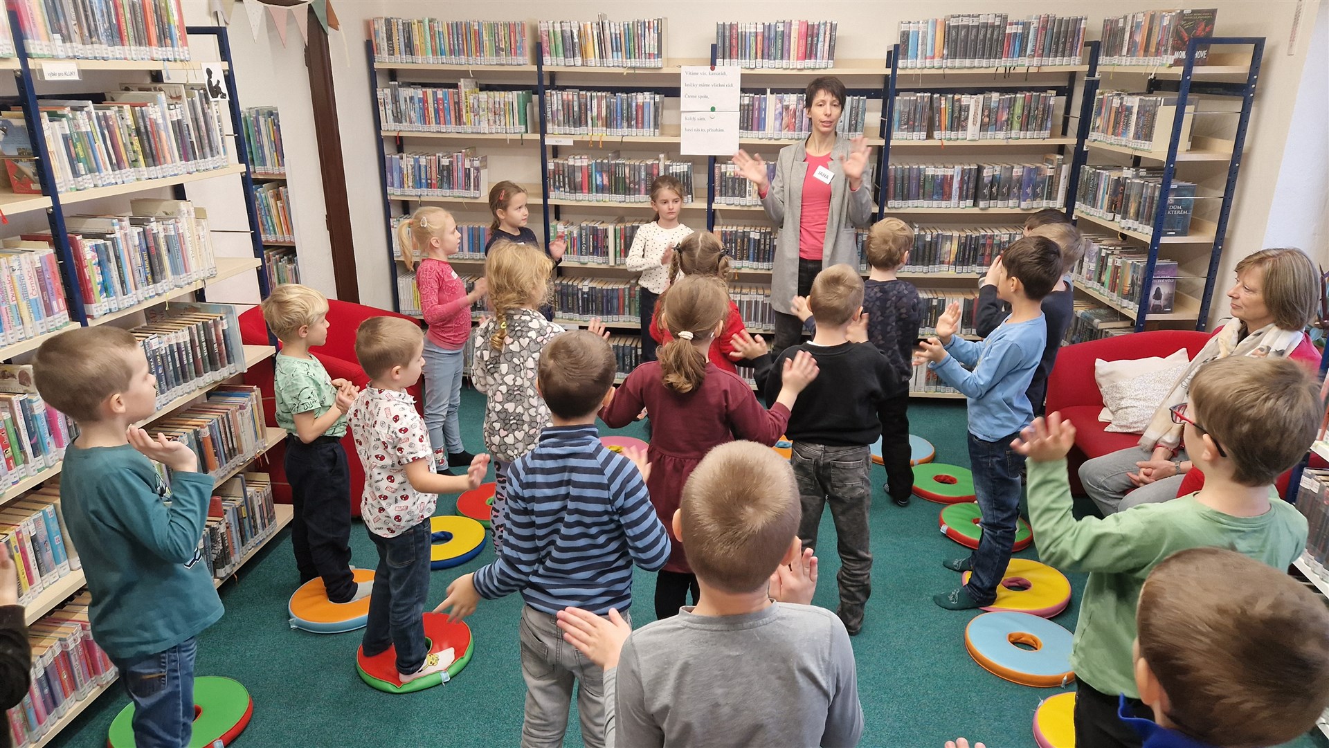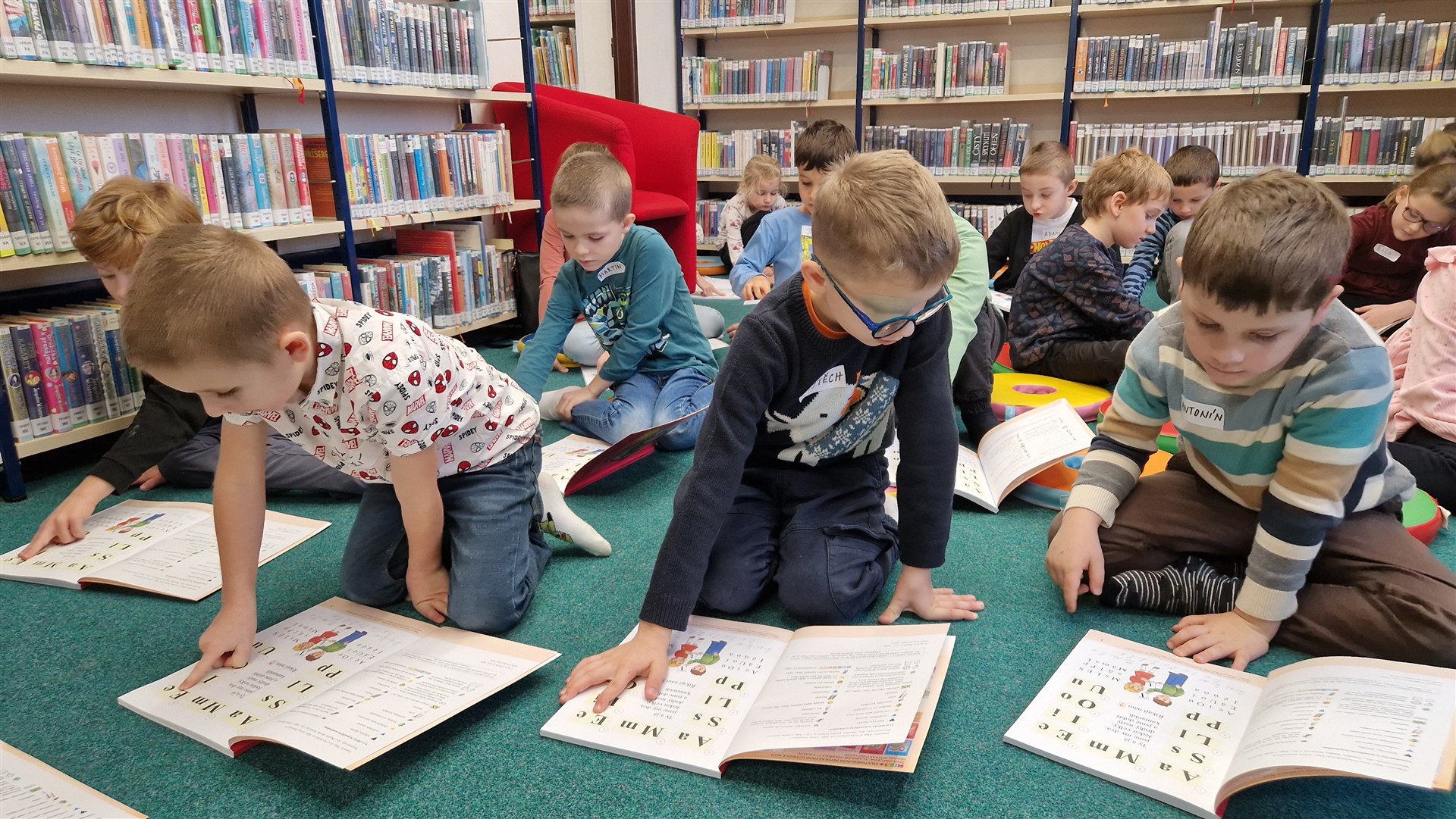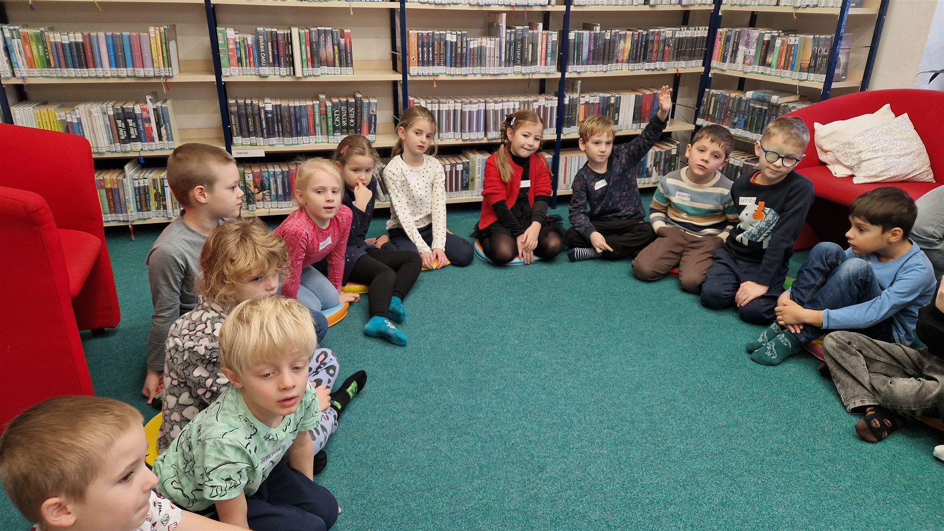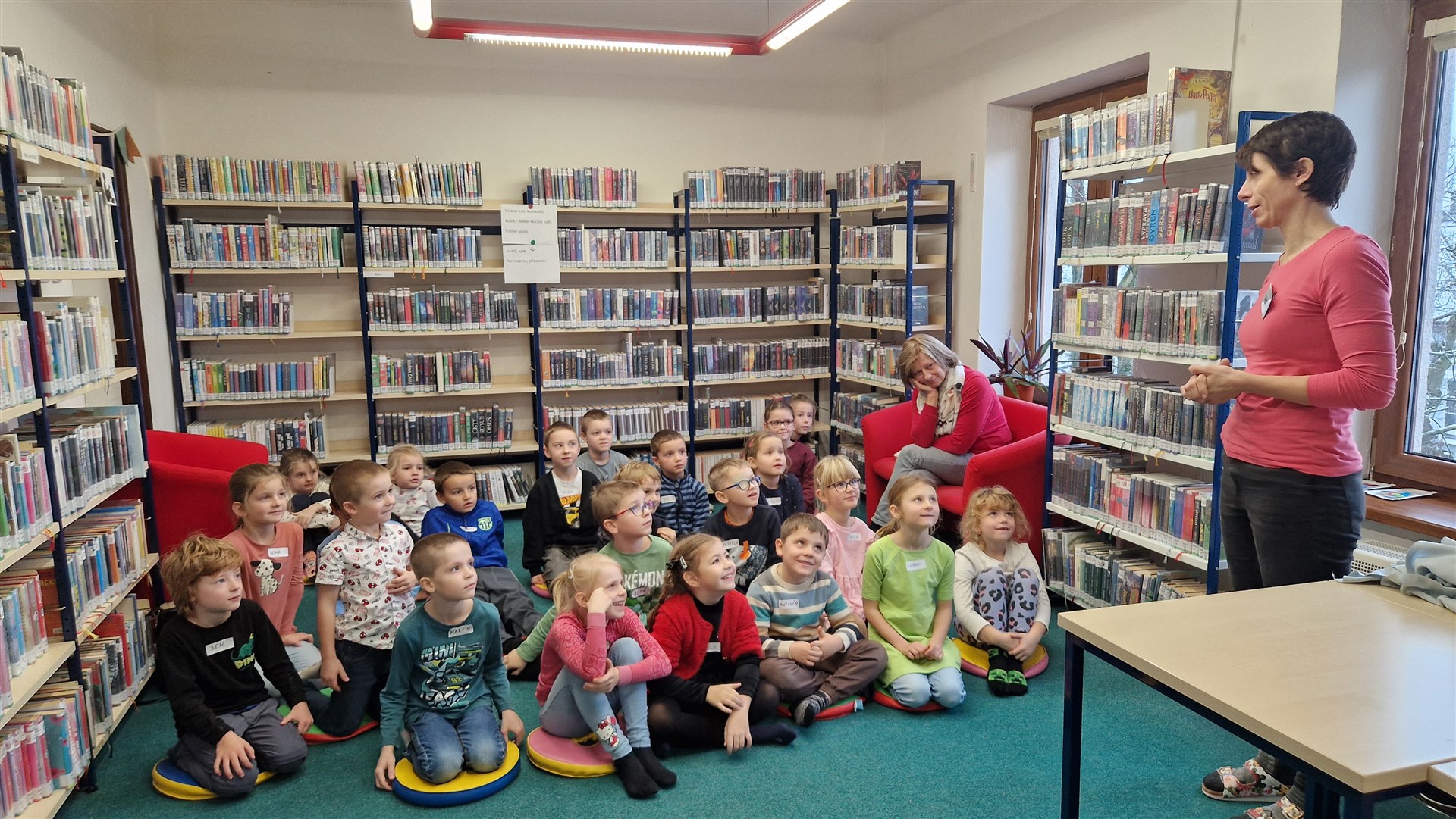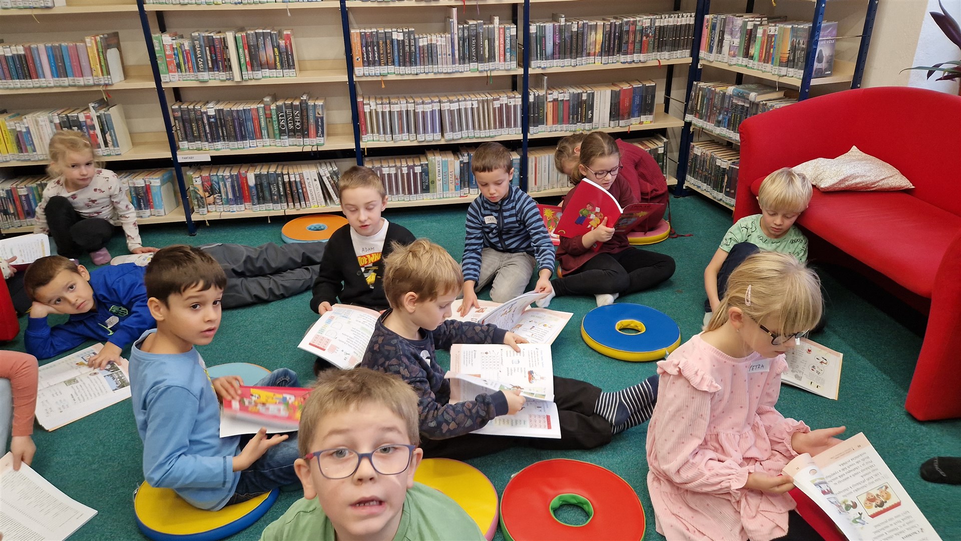 Předávání Slabikářů v knihovně v Malšovicích (1. C)