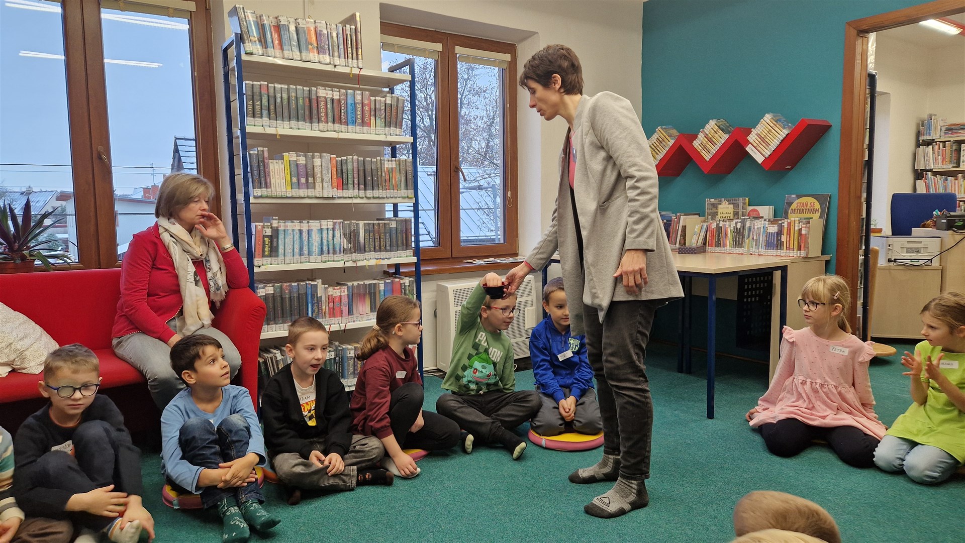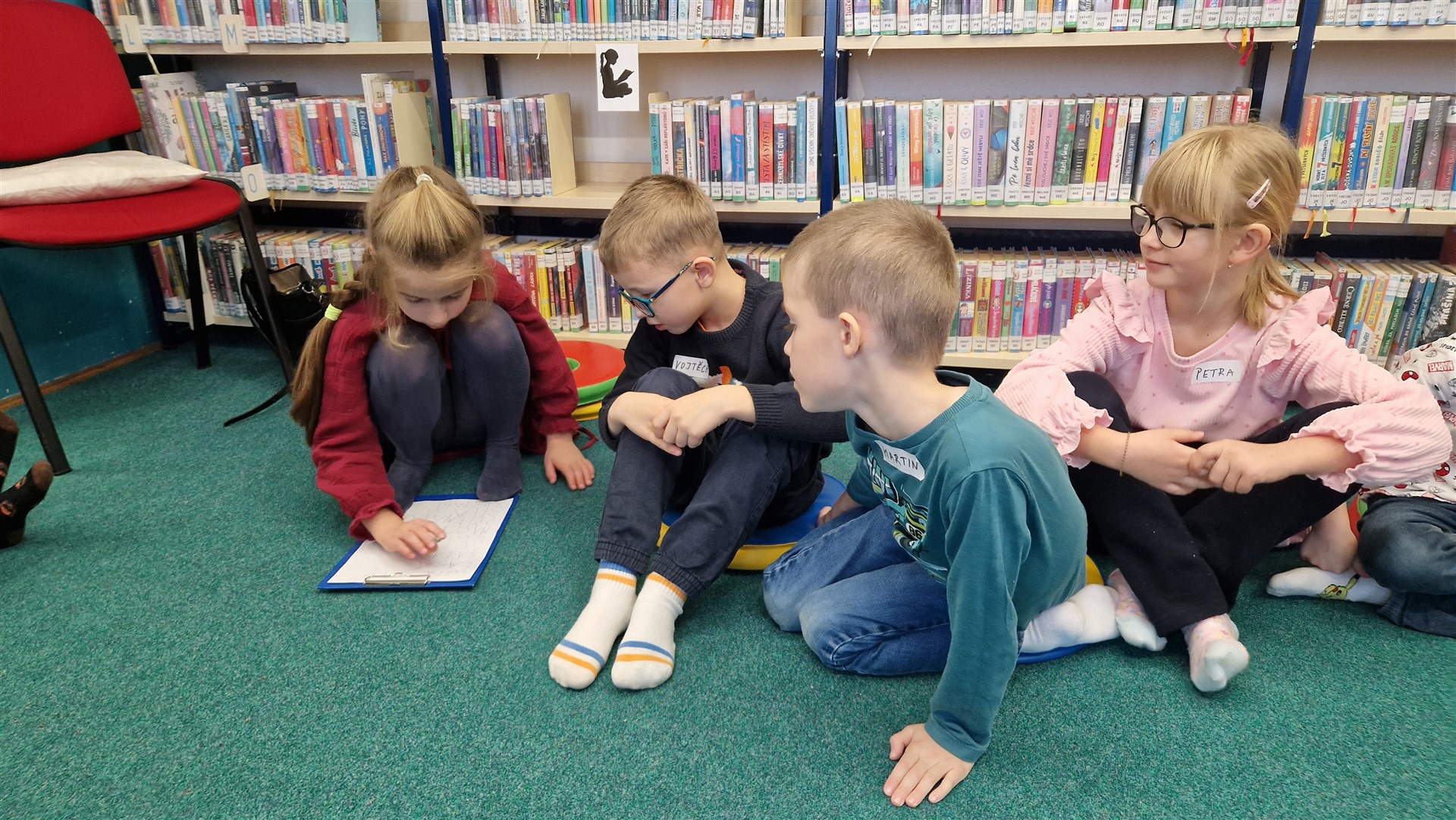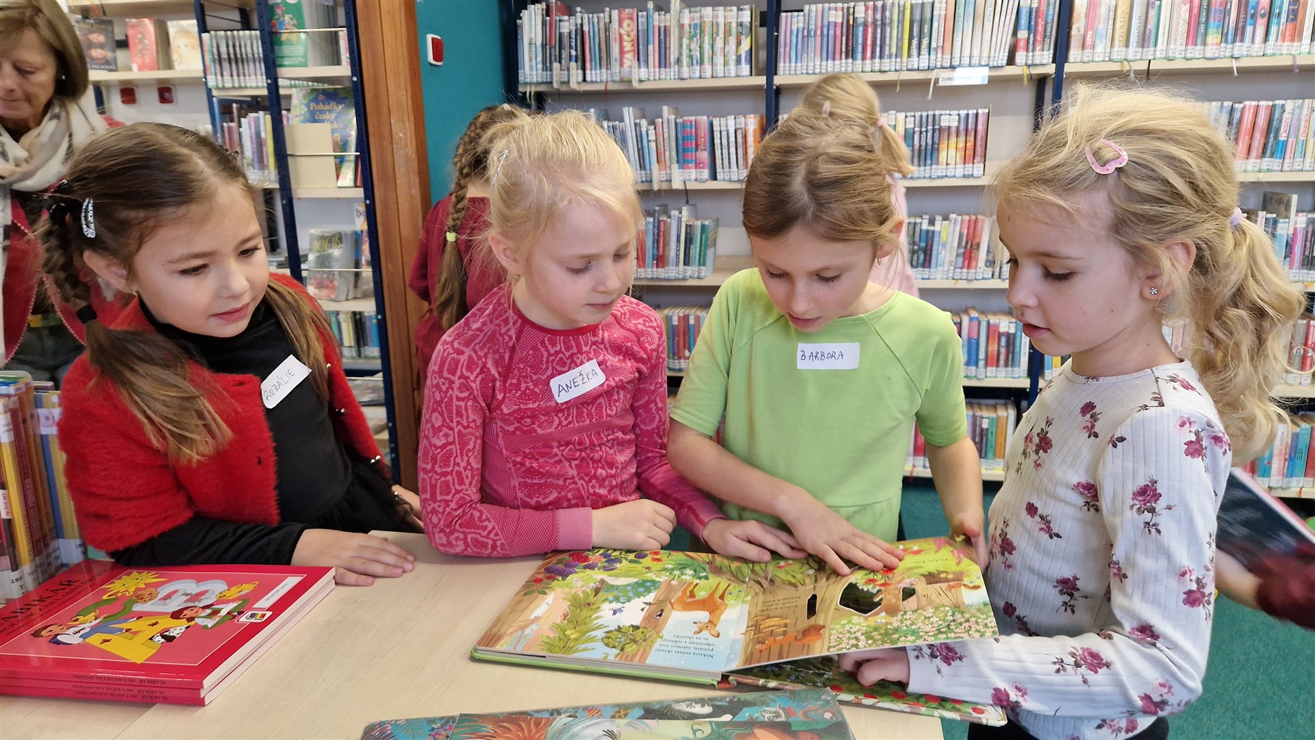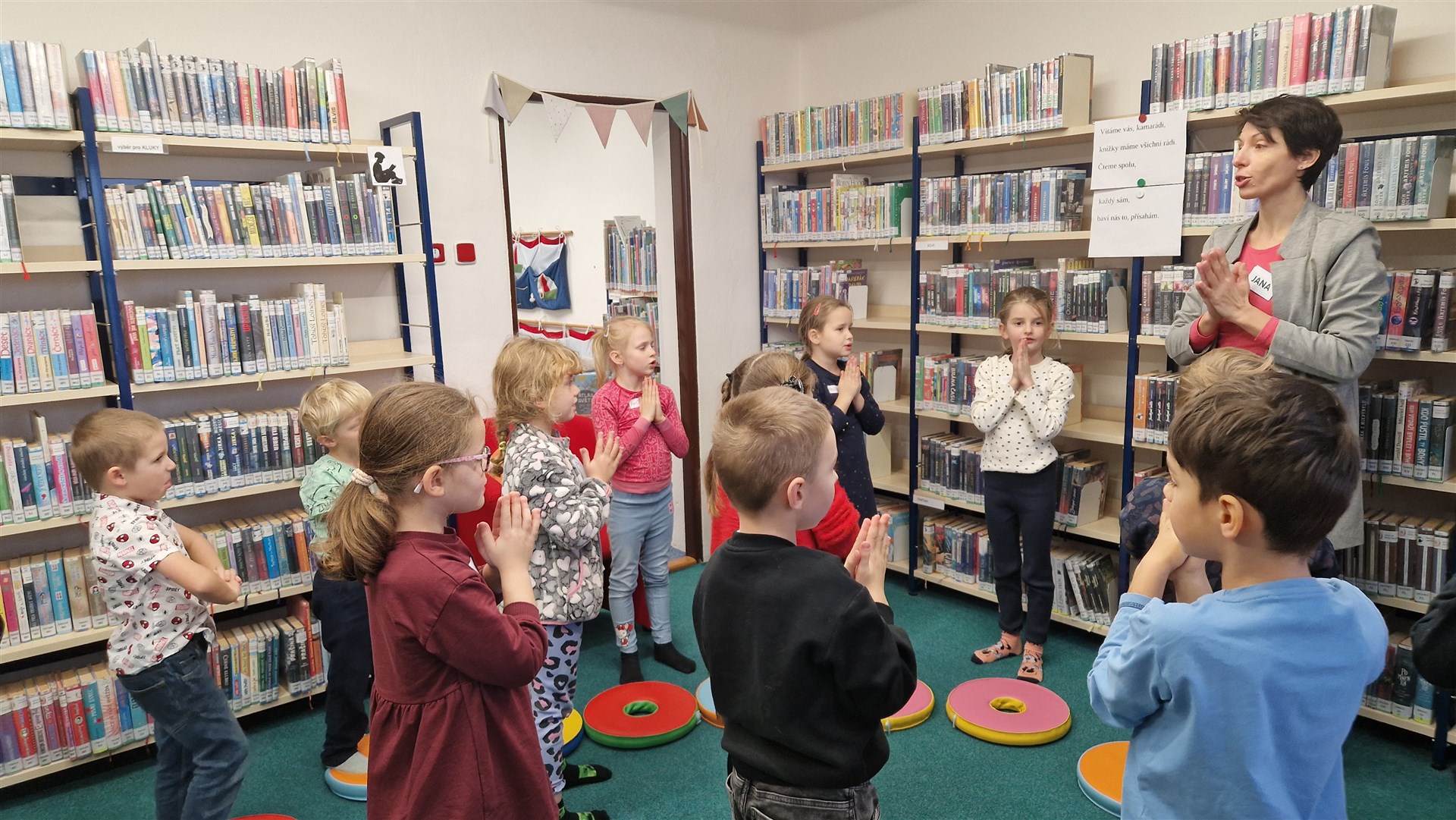 Předávání Slabikářů v knihovně v Malšovicích (1. C)