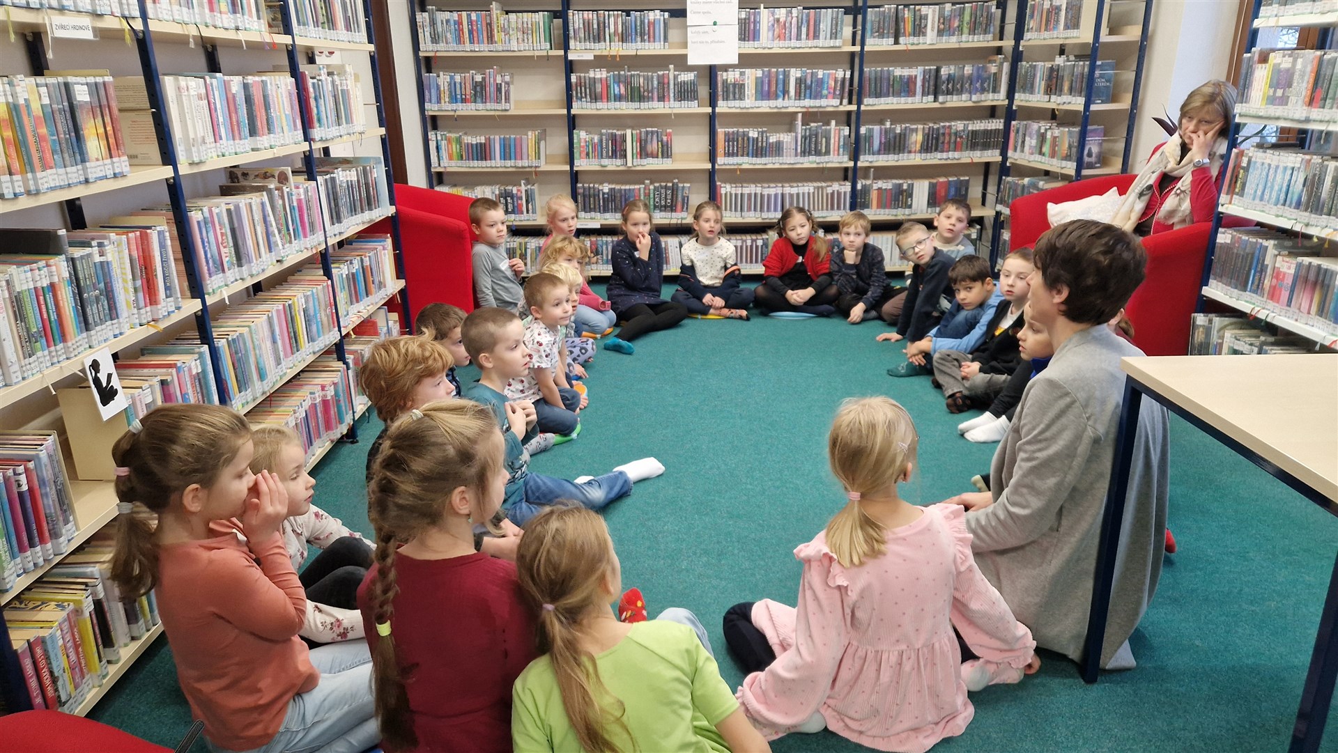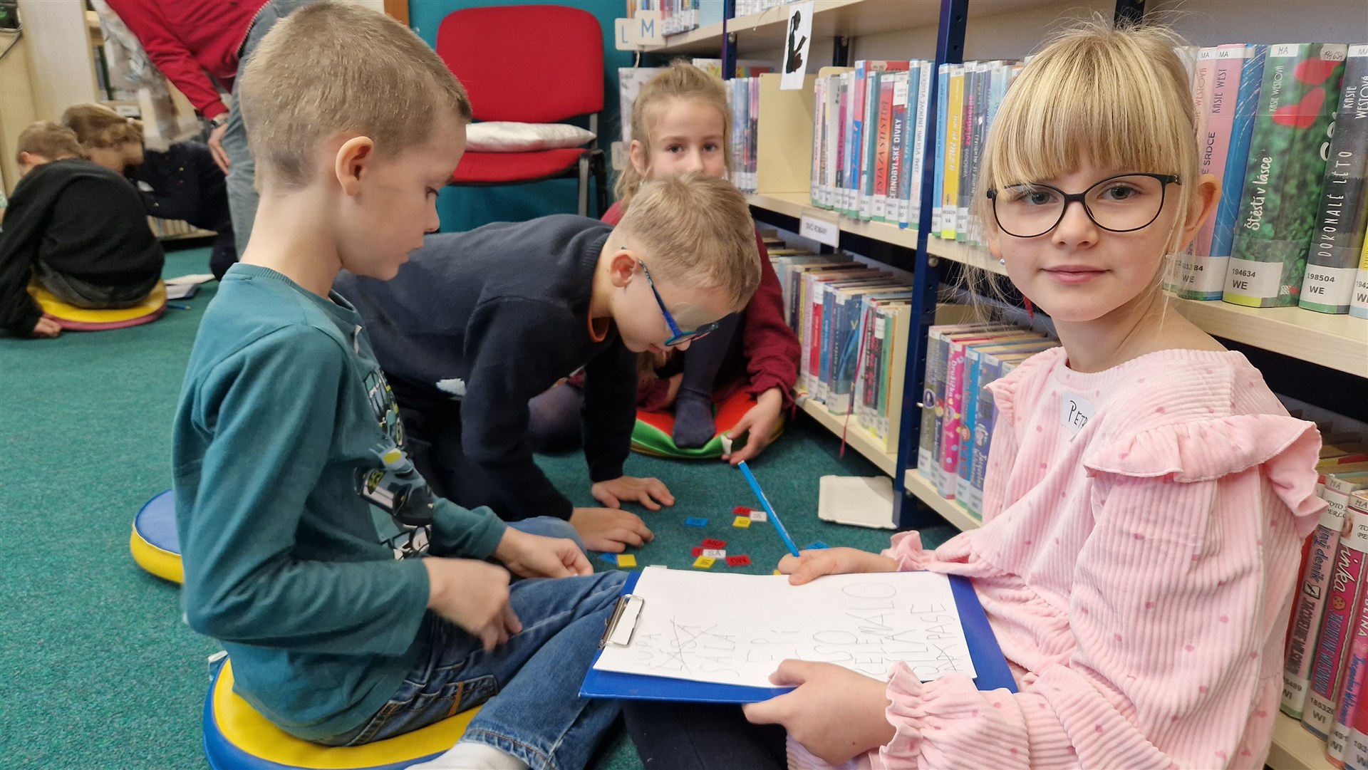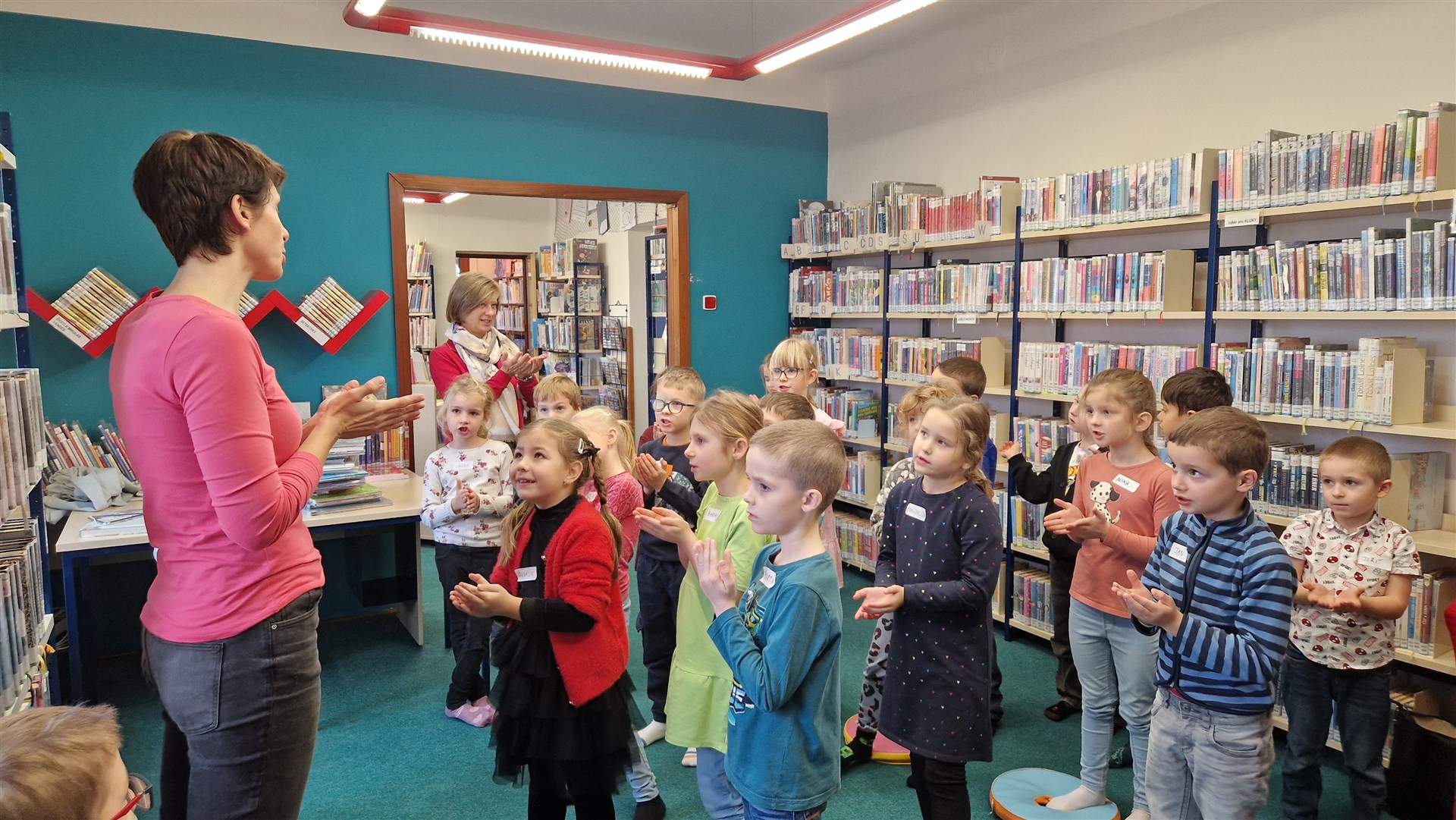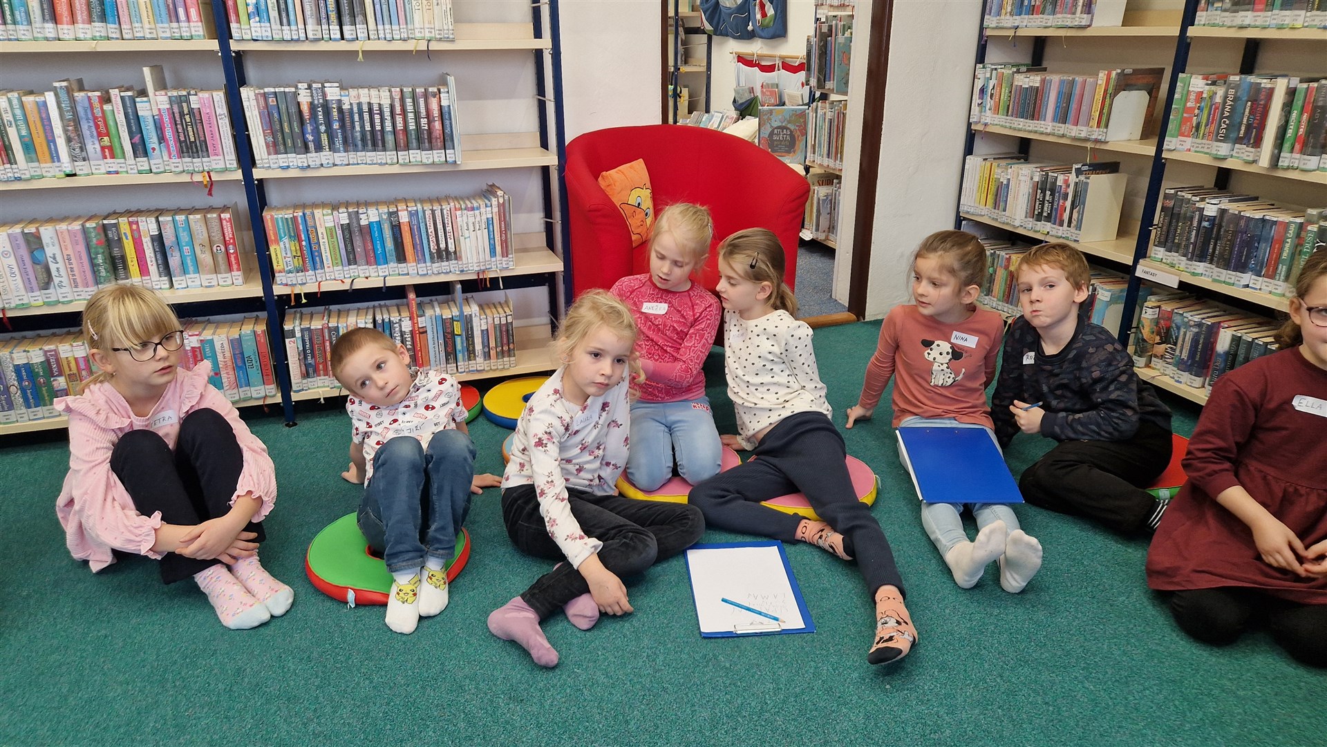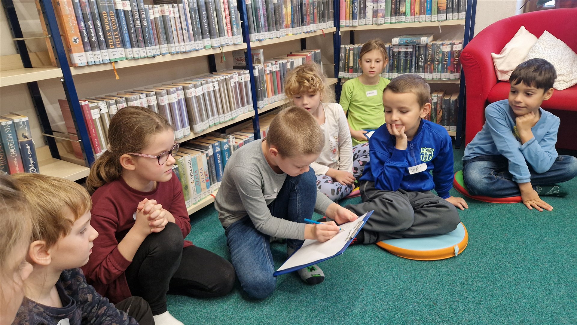 Předávání Slabikářů v knihovně v Malšovicích (1. C)