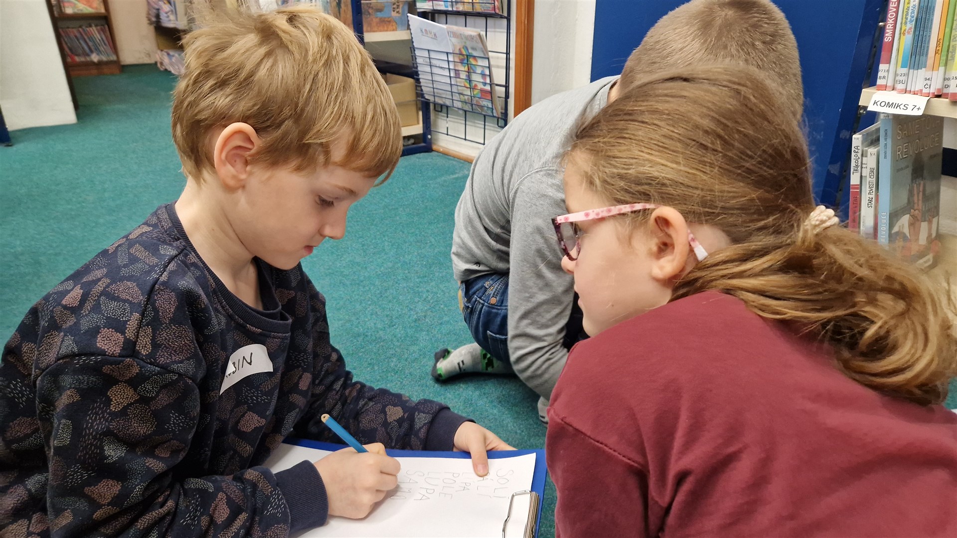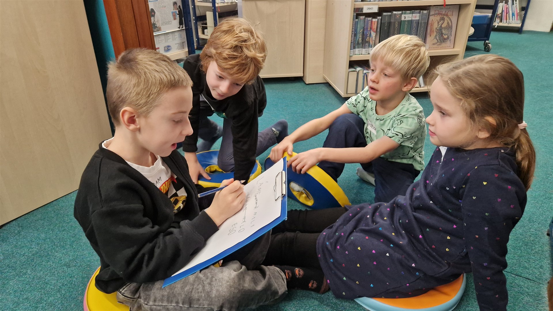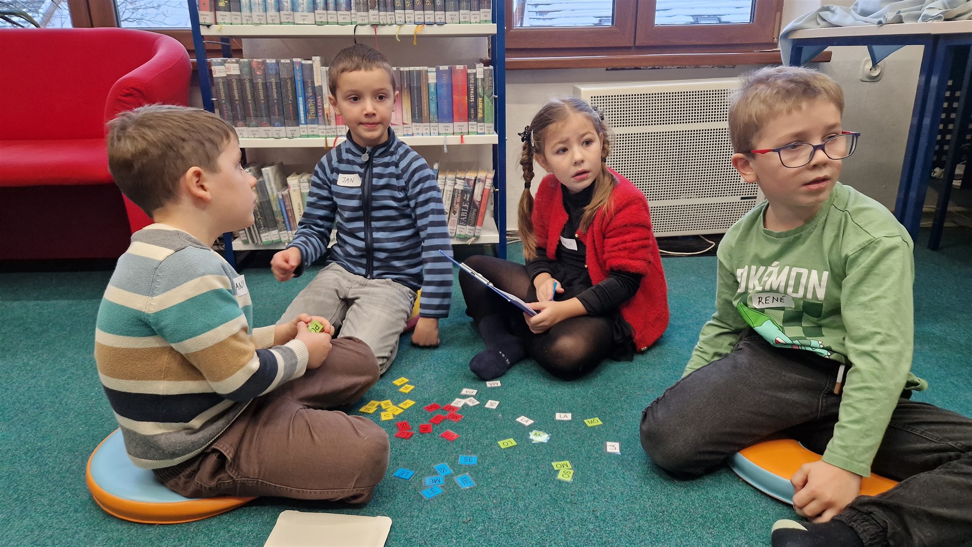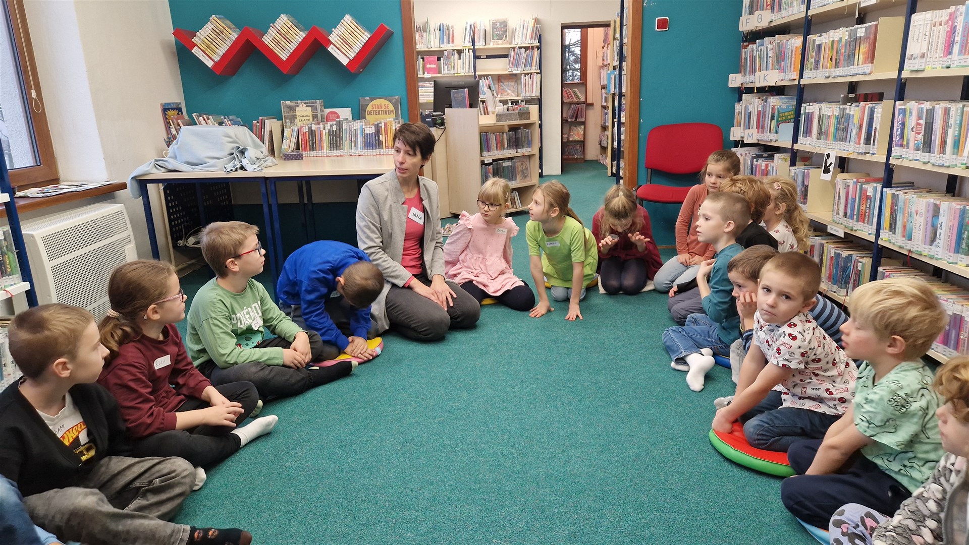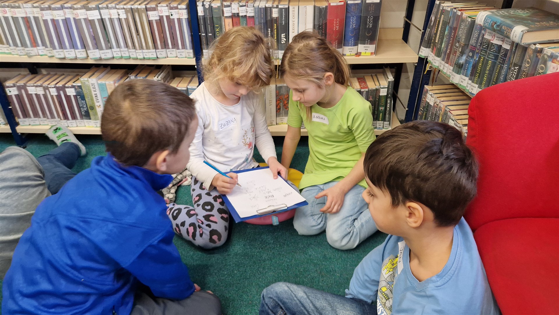 Předávání Slabikářů v knihovně v Malšovicích (1. C)