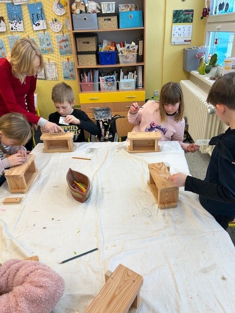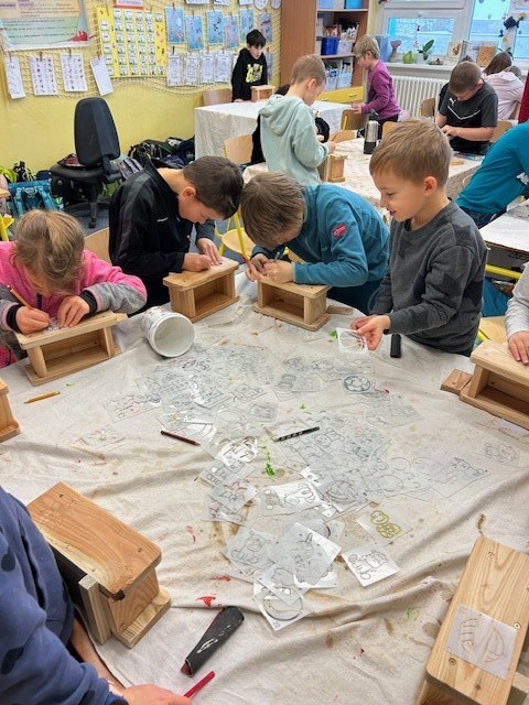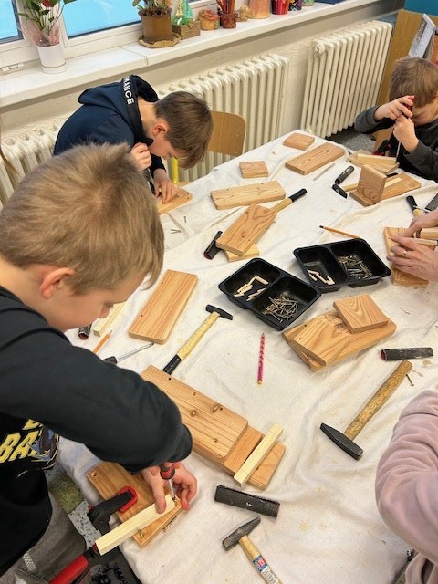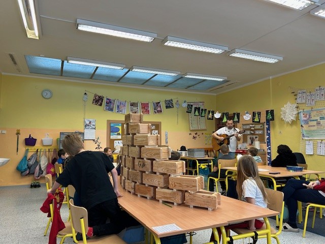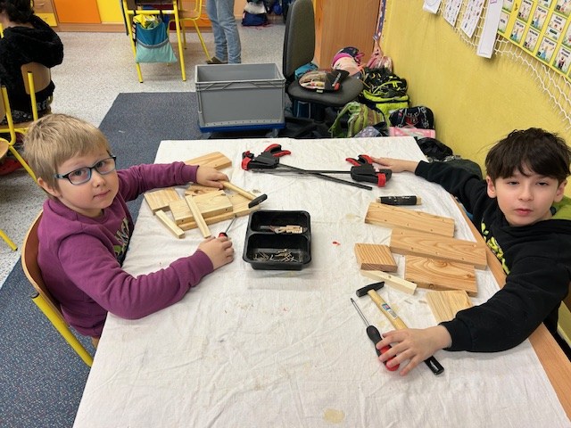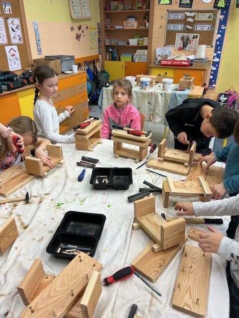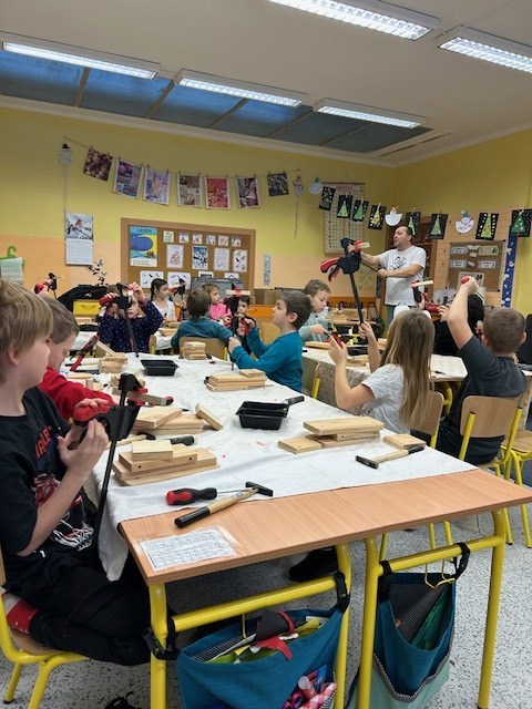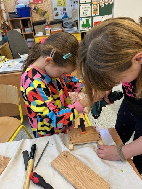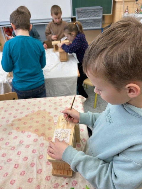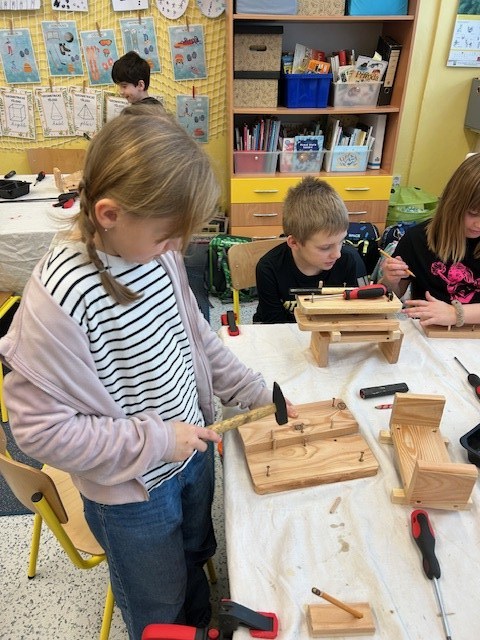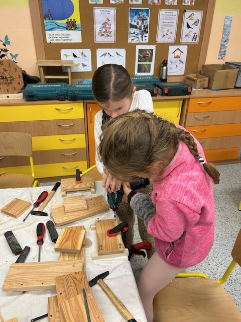 Dne 13.1. nás opět po roce navštívil pan truhlář, se kterým jsme vyráběli truhlík na květiny. Nejprve jsme připravené části dřeva obrousili, pak spojovali vruty, šroubovali, přibíjeli kladívkem a cca po 2 hodinách byl truhlík hotov. Nakonec si ho děti ozdobily podle šablon, někteří si stihli i vybarvit a nakonec jsme si s panem truhlářem za doprovodu kytary a harmoniky zazpívali písničky z pohádek a trochu si zasoutěžili (o dřevěné stojánky na tužky). Práce s panem truhlářem se dětem velmi líbila a příští rok se budeme těšit na další výrobek...