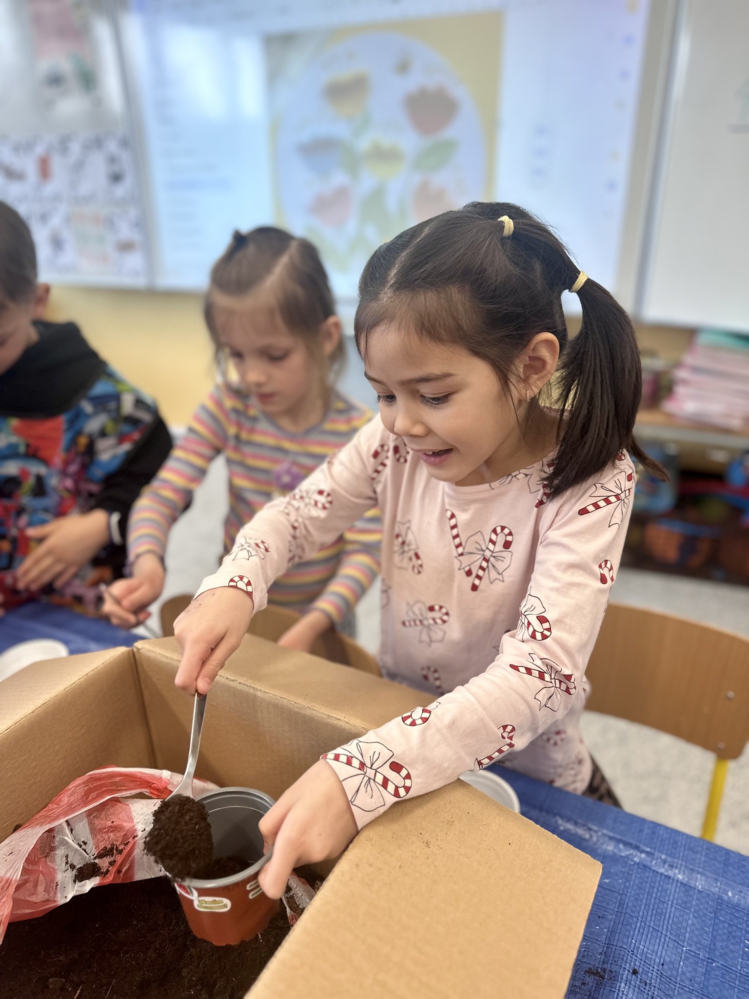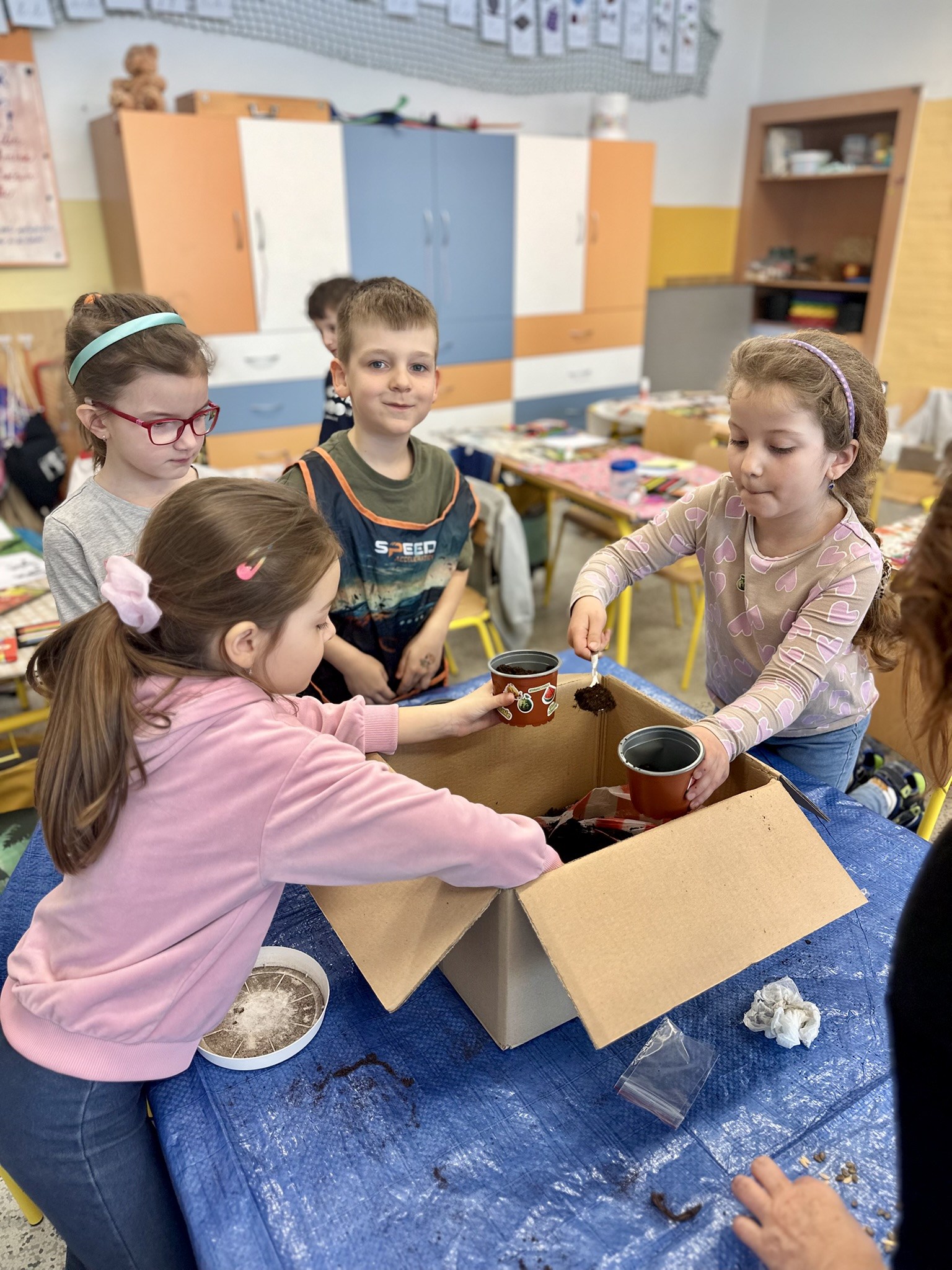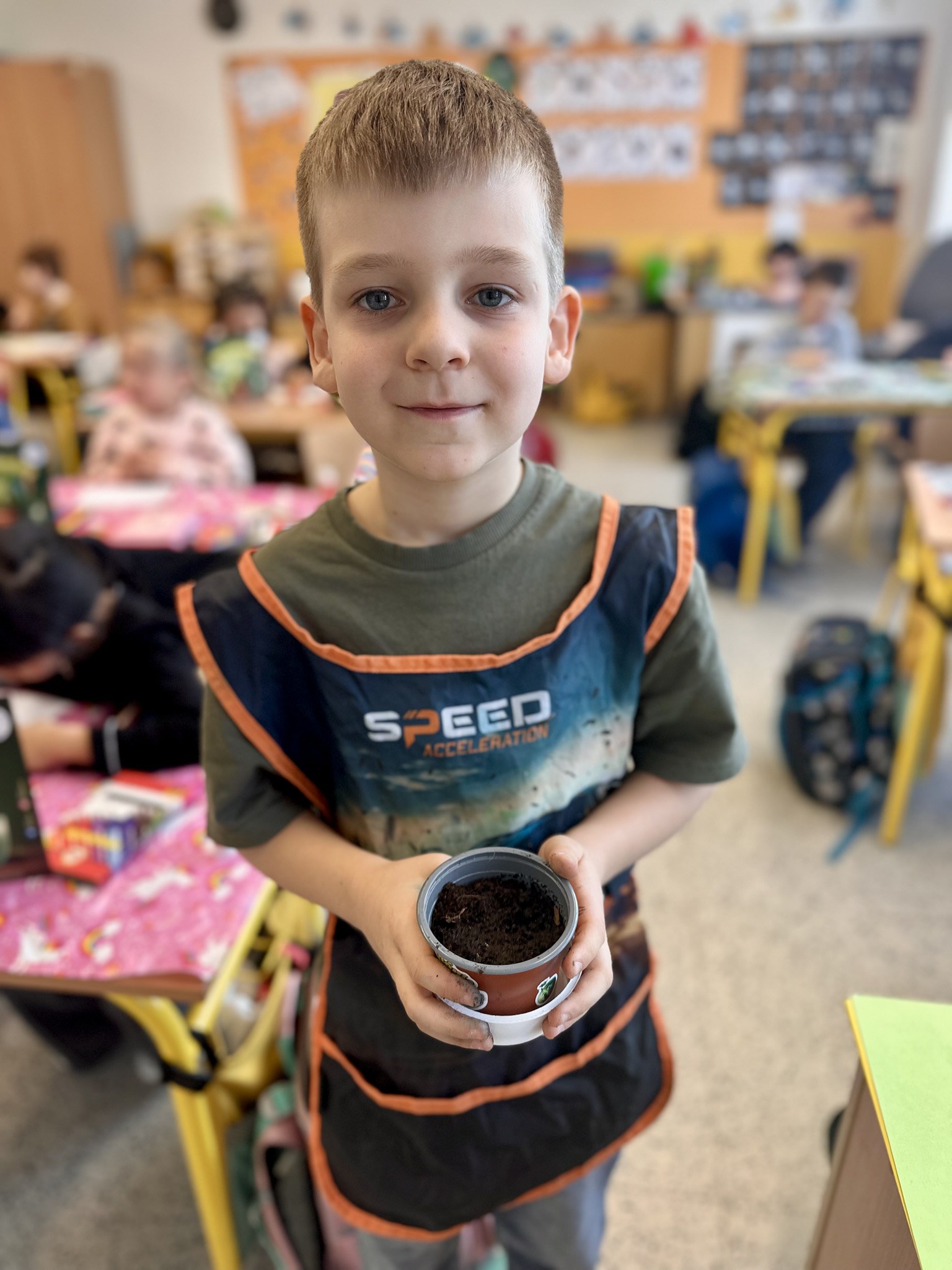 V březnu jsme se v pracovních činnostech věnovali zahradničení. V rámci projektu Ovoce a zelenina do škol jsme získali do školy semínka melounů. Ta jsme si zaseli a během celého měsíce března se o ně starali. Před Velikonocemi se už většině dětí začala rostlinka klubat z hlíny a my tak můžeme pozorovat, jak se semínko mění v rostlinu.