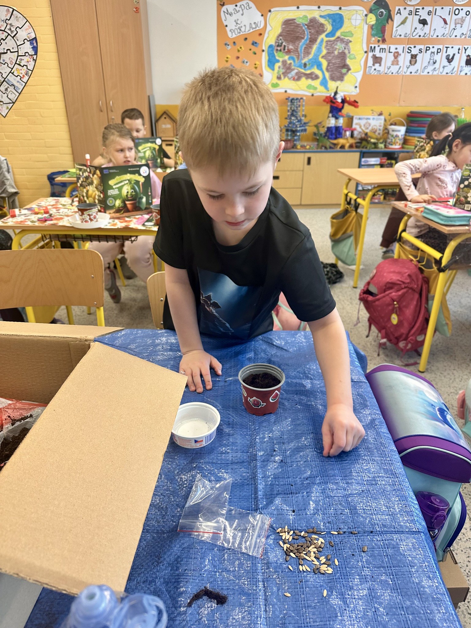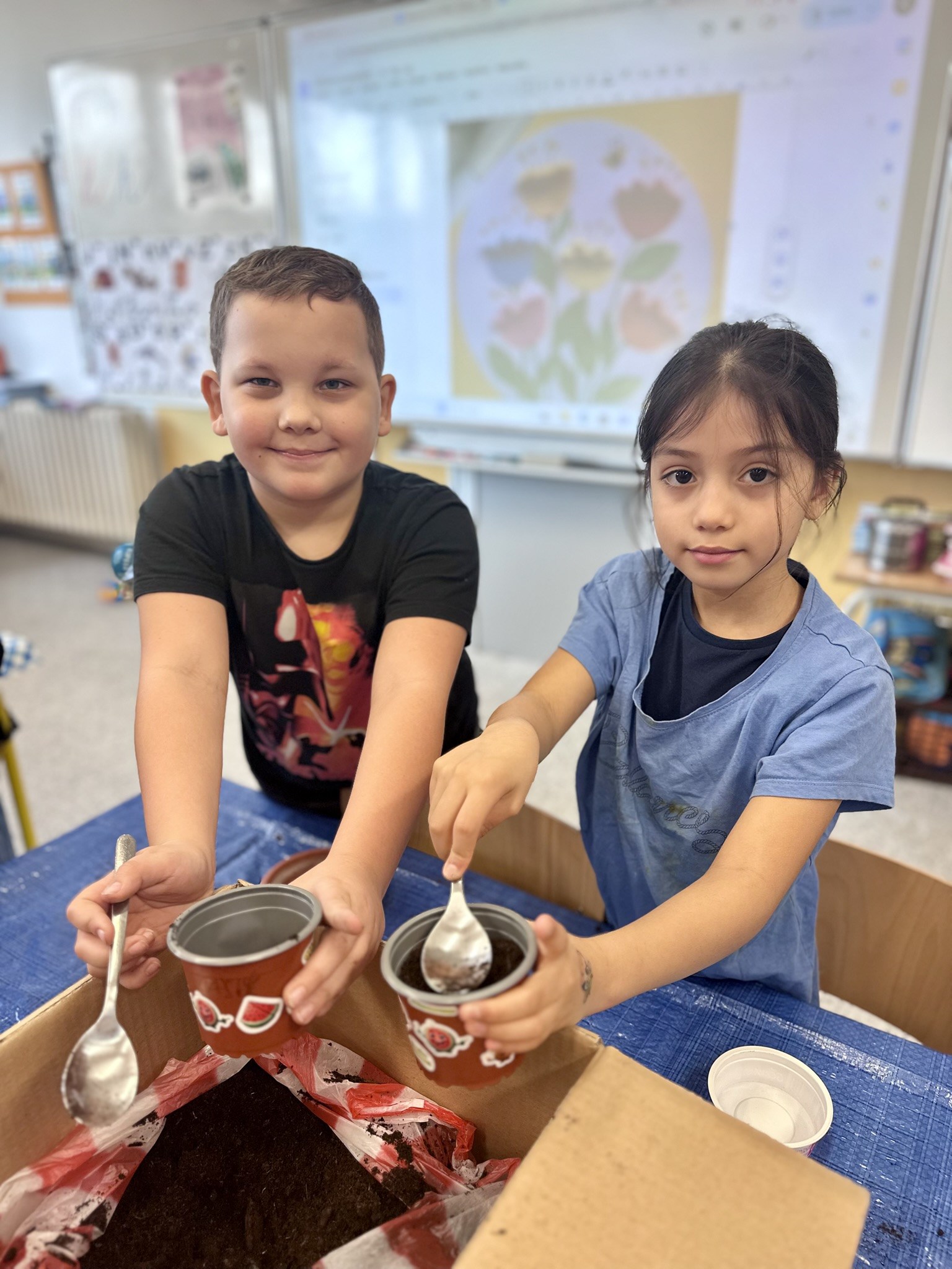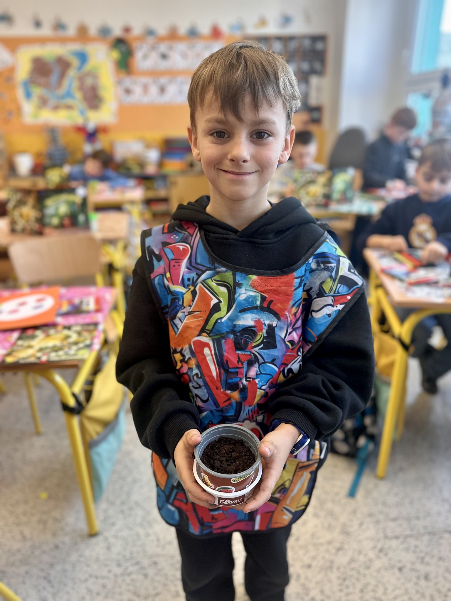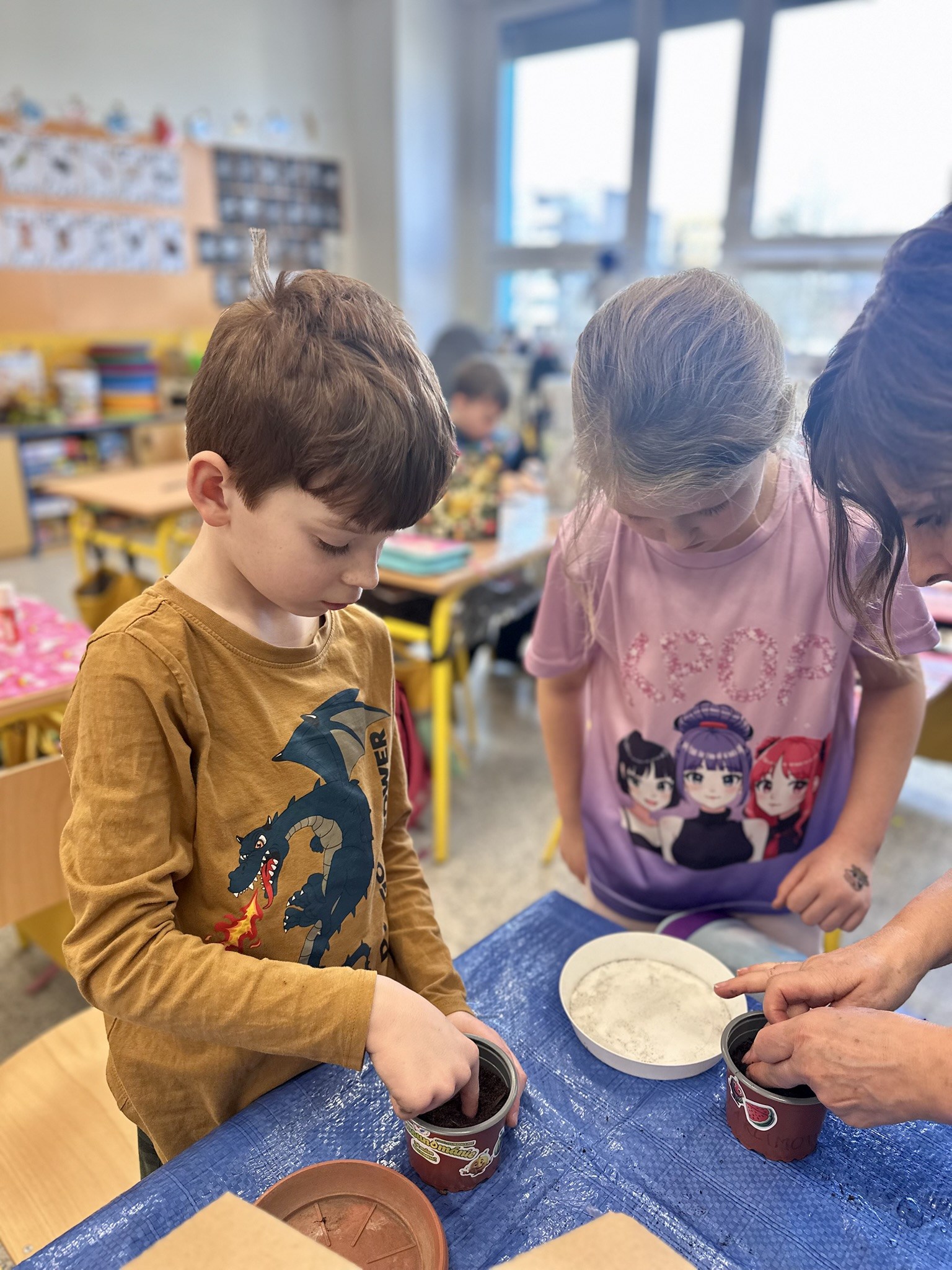 V březnu jsme se v pracovních činnostech věnovali zahradničení. V rámci projektu Ovoce a zelenina do škol jsme získali do školy semínka melounů. Ta jsme si zaseli a během celého měsíce března se o ně starali. Před Velikonocemi se už většině dětí začala rostlinka klubat z hlíny a my tak můžeme pozorovat, jak se semínko mění v rostlinu.