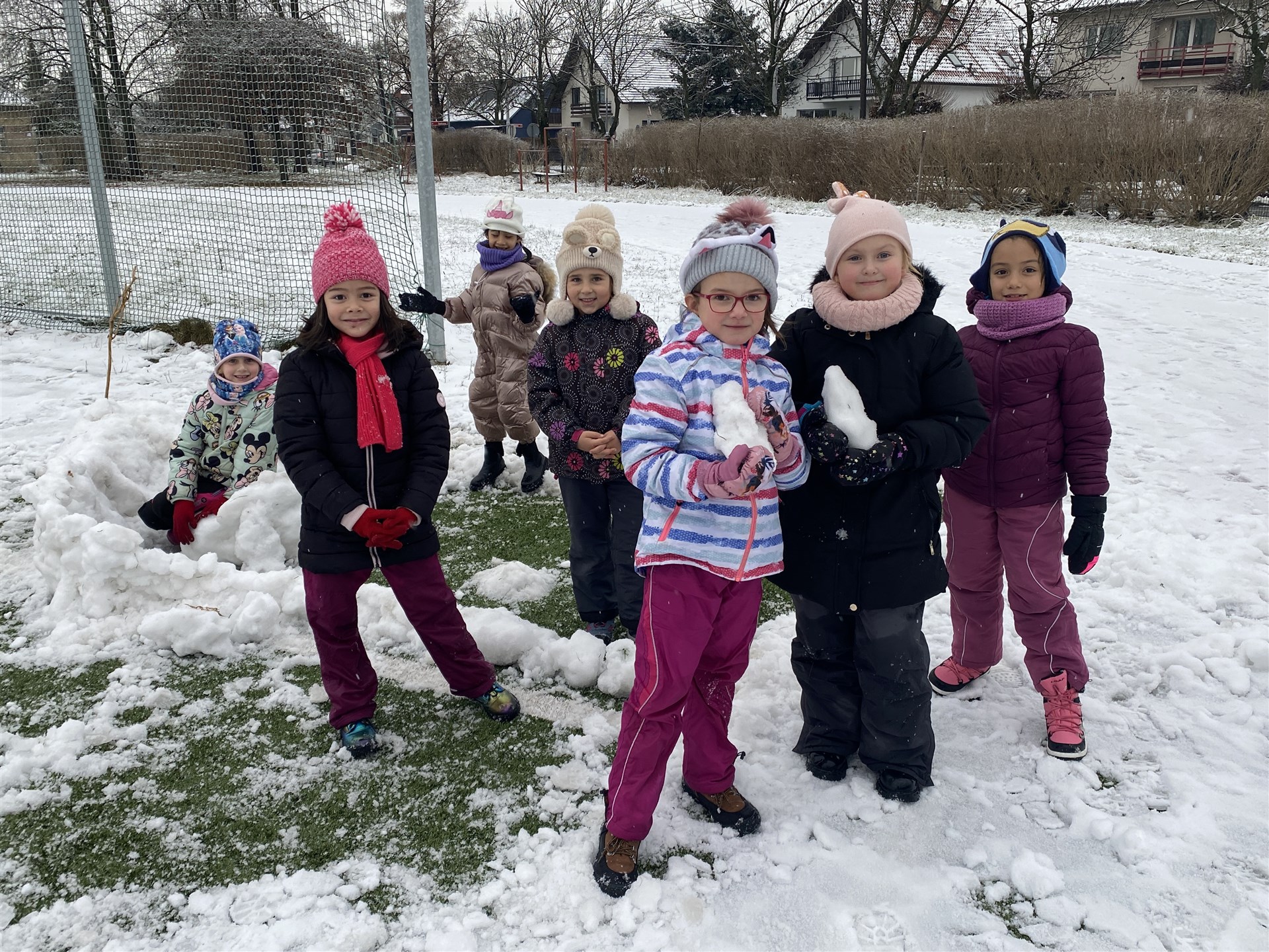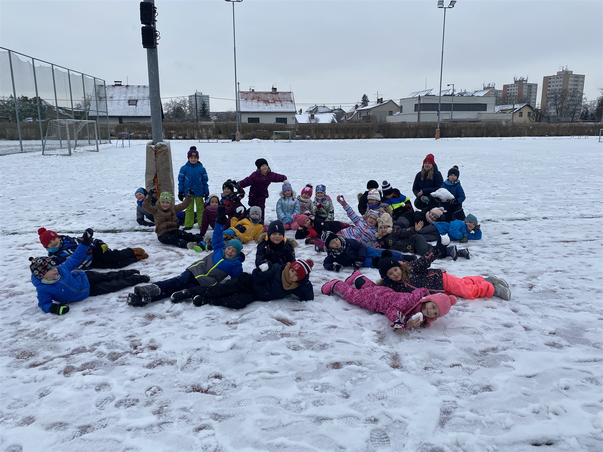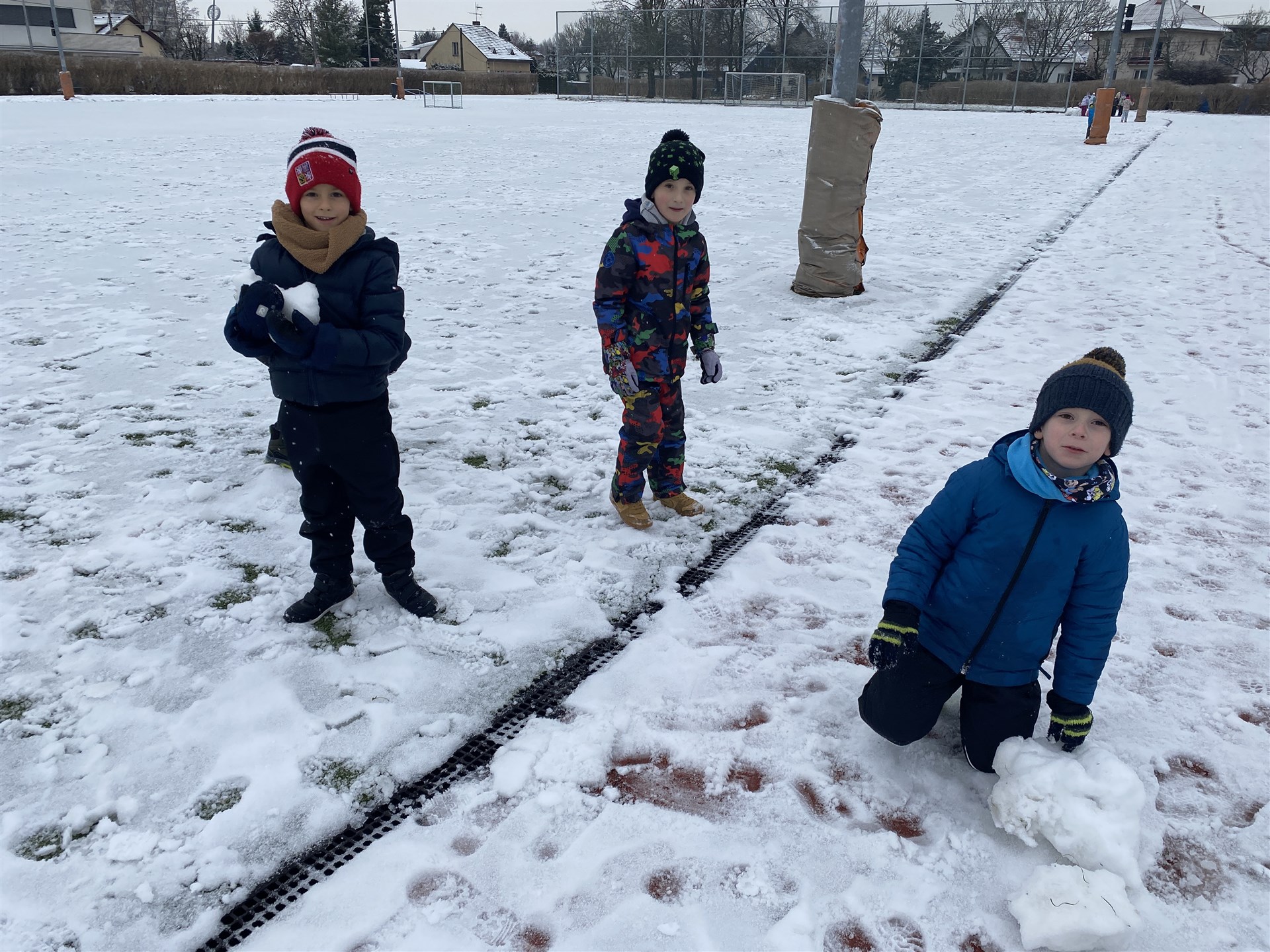Využili jsme toho, že napadl sníh a vydali se cvičit ven. Proběhli jsme se po stadionu, vyvolali pořádnou koulovačku, ale také vytvářeli andělíčky a stavěli sněhuláky.