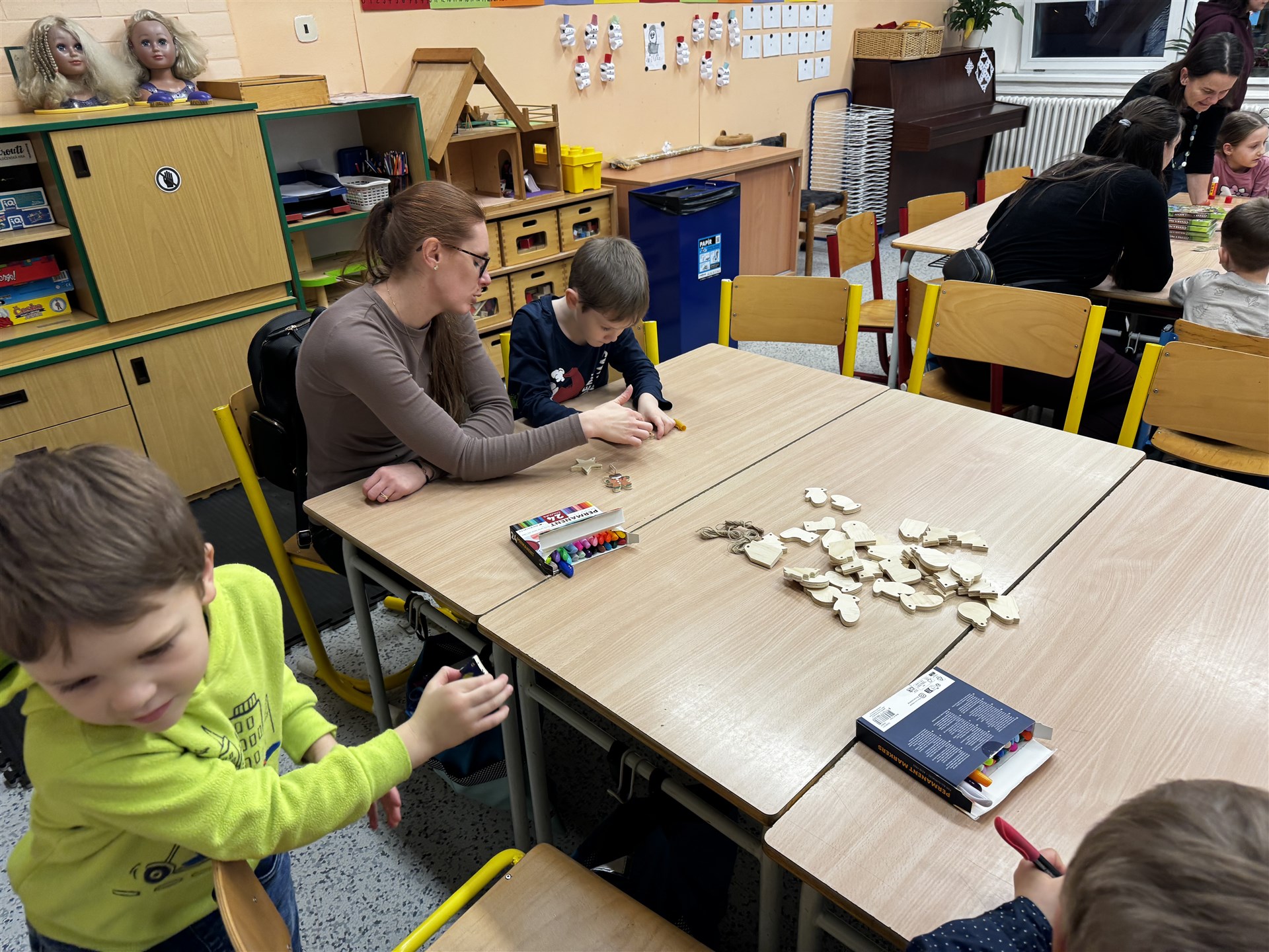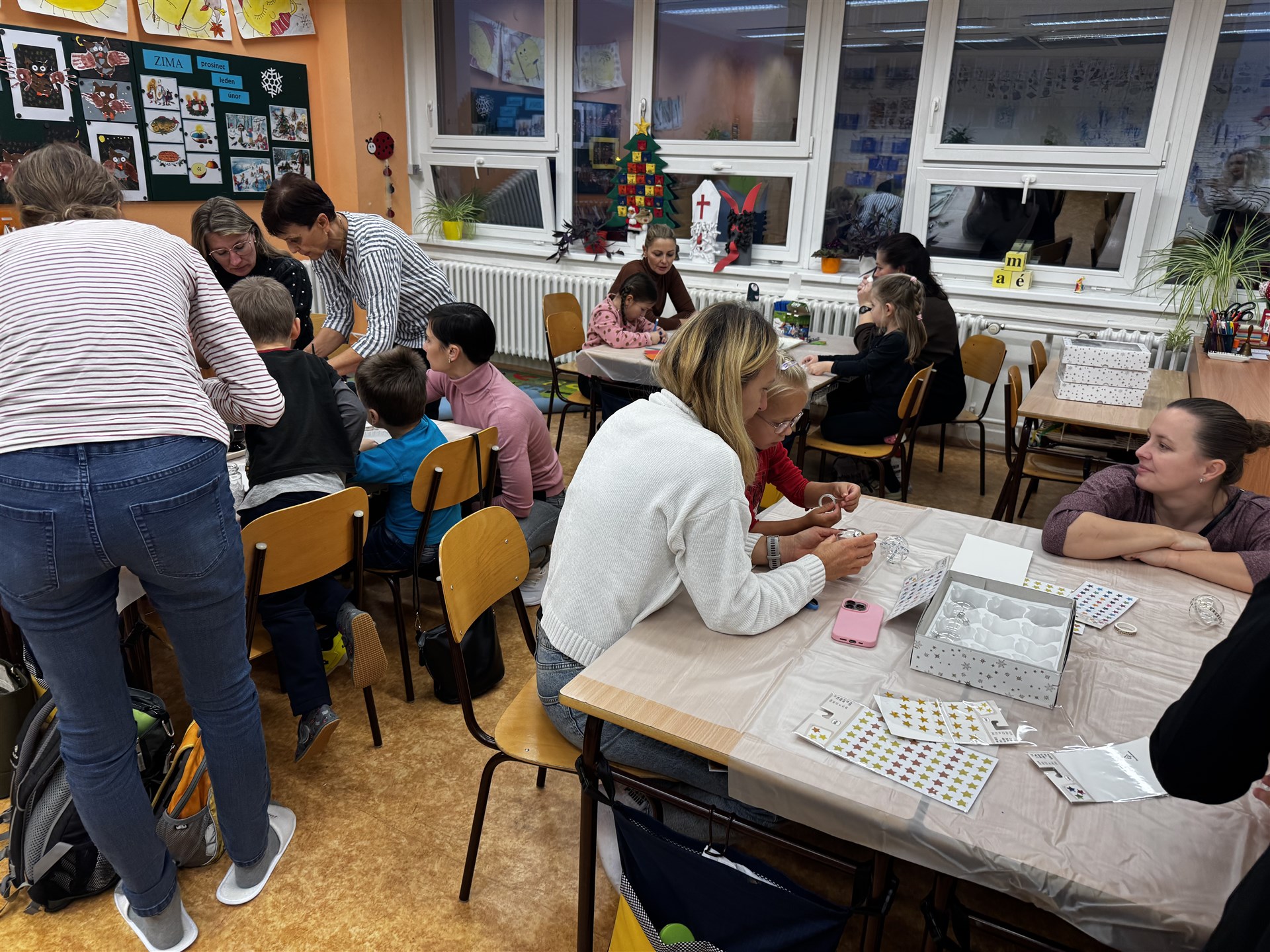 Společné tvoření bylo nejen o výrobkách, ale hlavně o sdíleném čase, radosti a vánoční pohodě. Děkujeme rodičům za společně strávený čas, hojnou účast a pomoc.