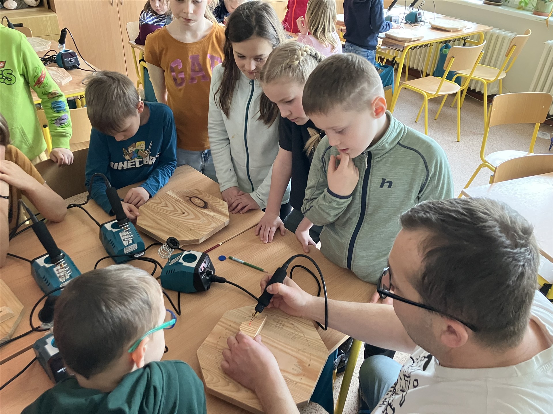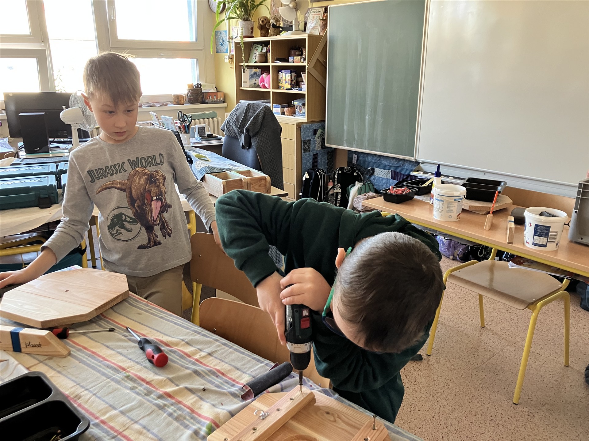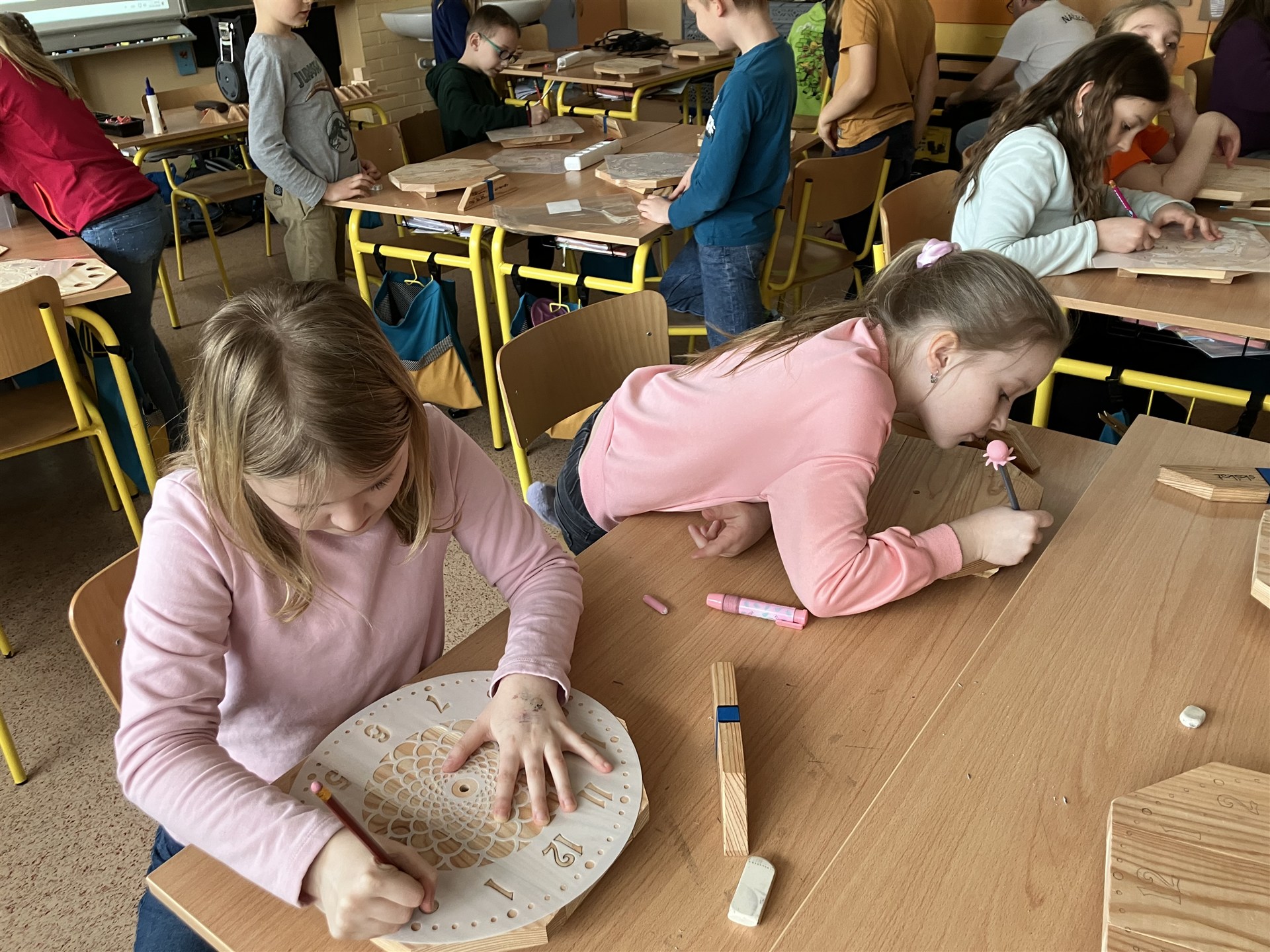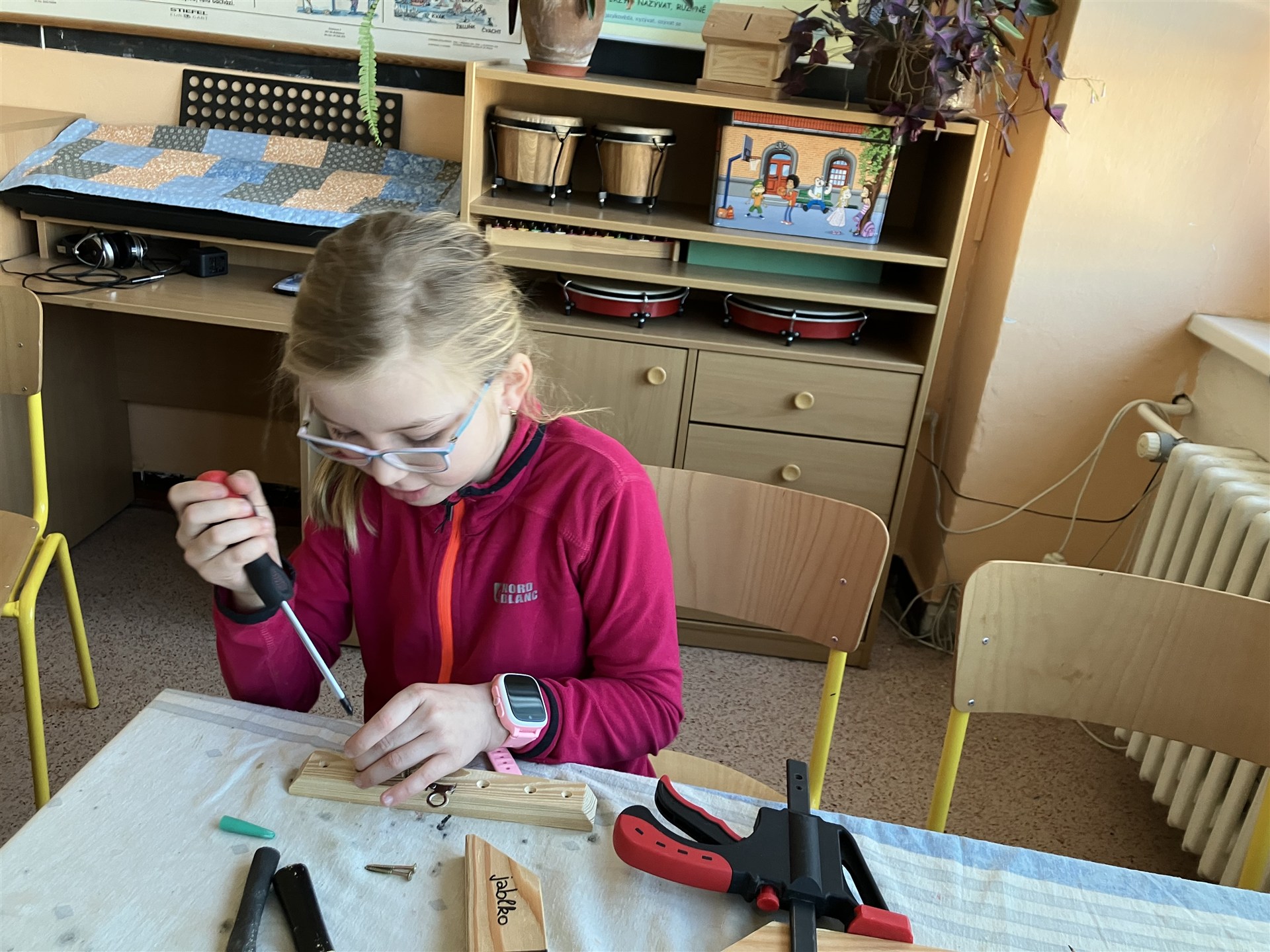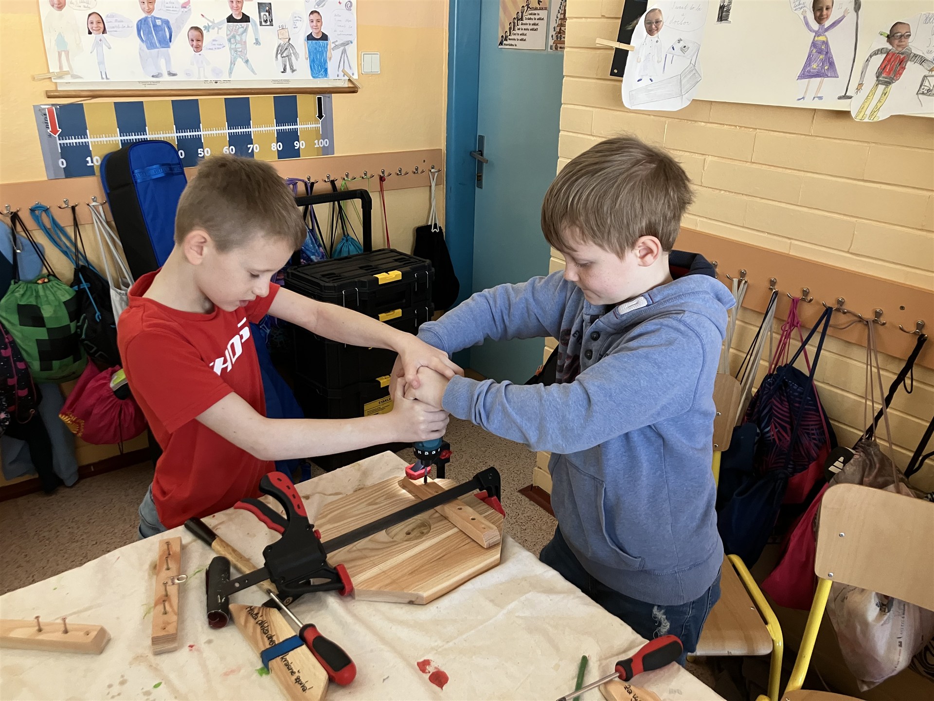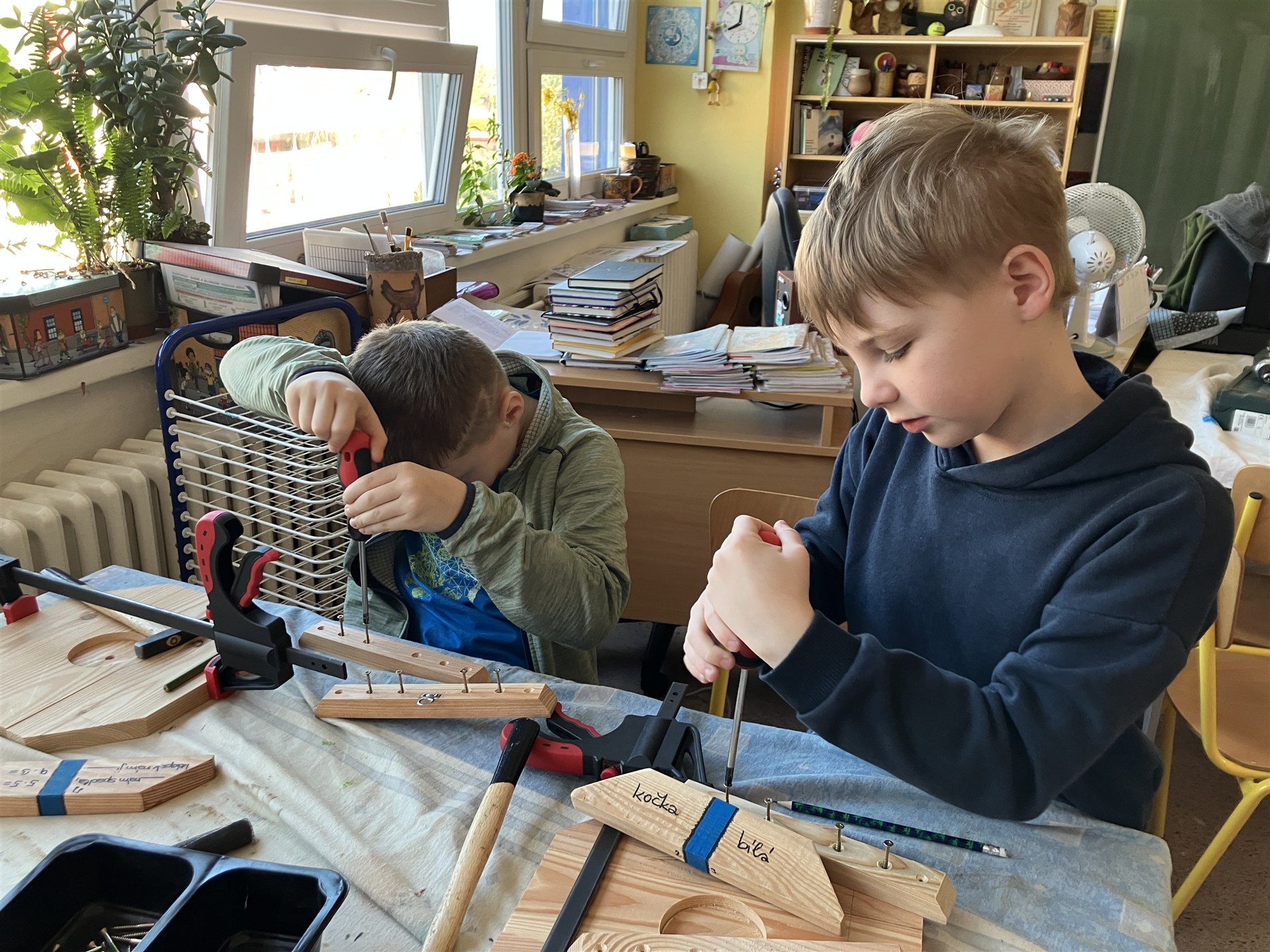 Ve středu 1. 4. 2026 přijel za dětmi ze 3. C pan truhlář Petr Kaněra, přivezl s sebou truhlářské nářadí a připravené jednotlivé díly z modřínového dřeva na výrobu hodin. Pod jeho vedením si žáci díly spojili, nazdobili, vložili si hodinový strojek i s baterkou, připevnili si hodinové ručičky. Děti se k dílu stavěly velmi pozorně, zodpovědně i šikovně, všechny si přály, aby se jim dílo povedlo a aby se jejich hodiny líbily, protože se těšily, až je doma zavěsí. Práce se dřevem se nám všem líbila a mnoho nás naučila. Mgr. Kamila Dariusová