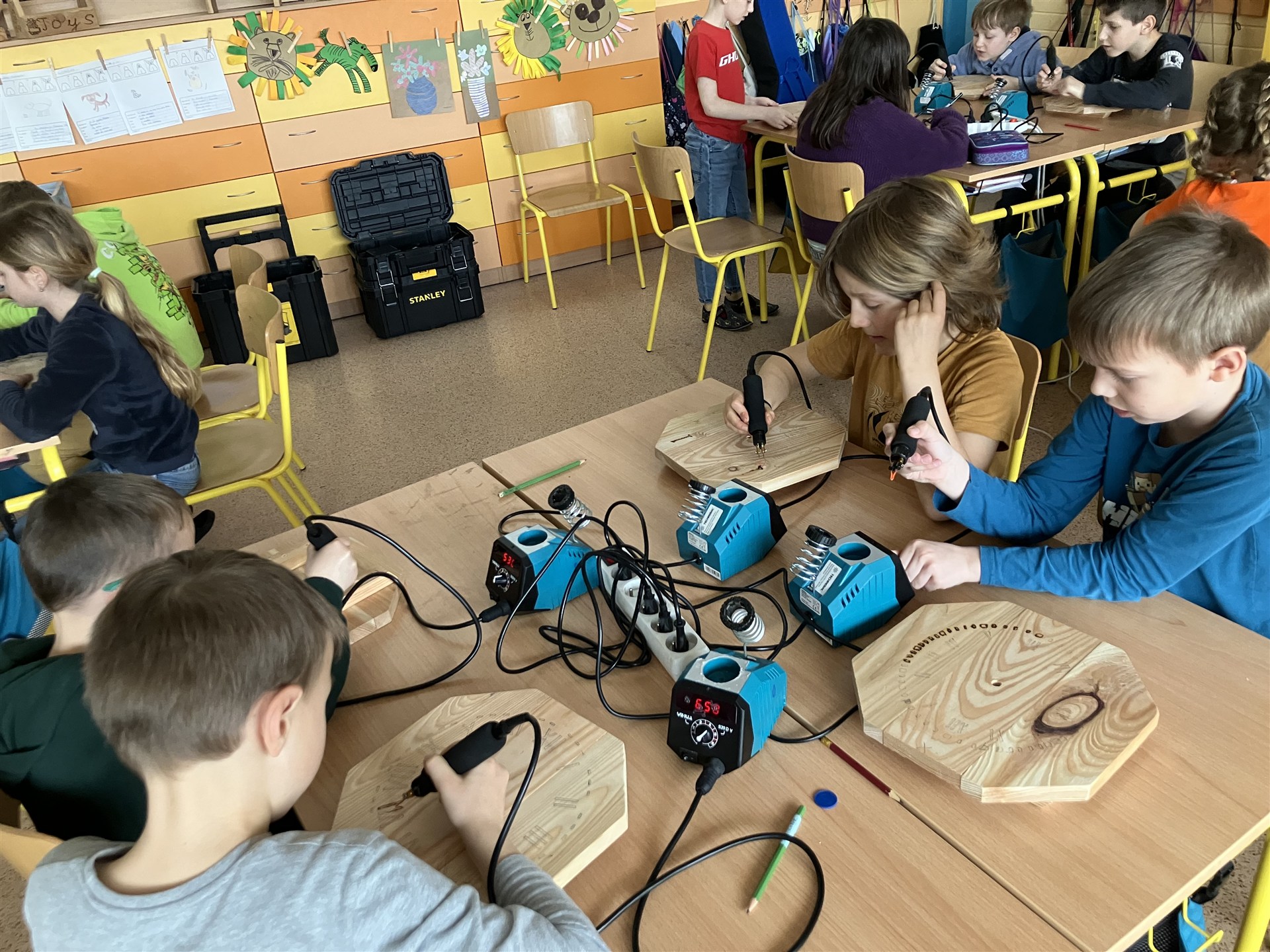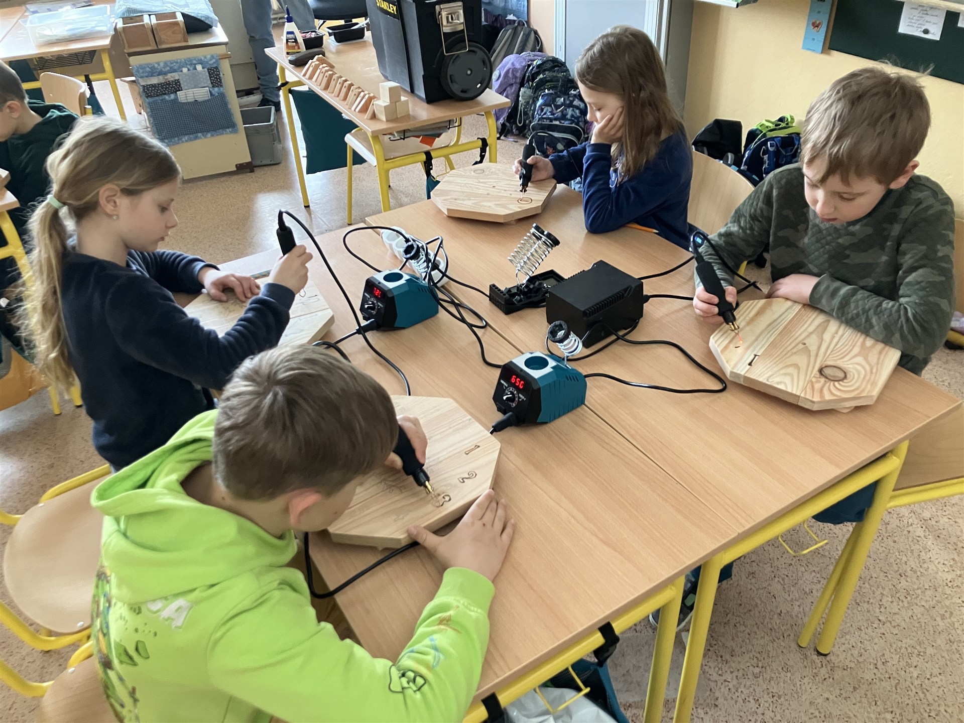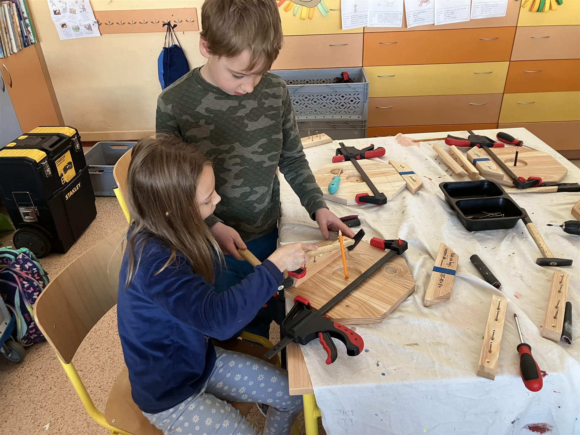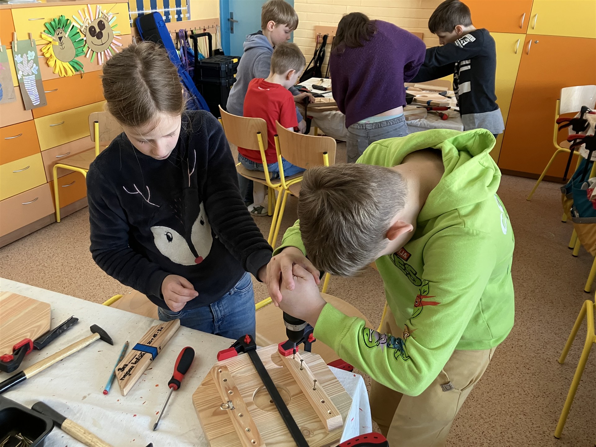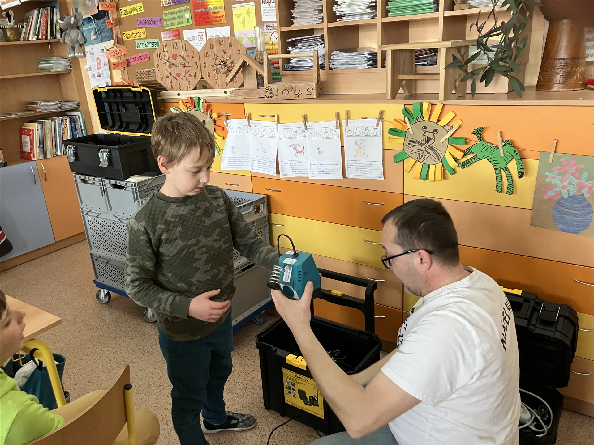 Ve středu 1. 4. 2026 přijel za dětmi ze 3. C pan truhlář Petr Kaněra, přivezl s sebou truhlářské nářadí a připravené jednotlivé díly z modřínového dřeva na výrobu hodin. Pod jeho vedením si žáci díly spojili, nazdobili, vložili si hodinový strojek i s baterkou, připevnili si hodinové ručičky. Děti se k dílu stavěly velmi pozorně, zodpovědně i šikovně, všechny si přály, aby se jim dílo povedlo a aby se jejich hodiny líbily, protože se těšily, až je doma zavěsí. Práce se dřevem se nám všem líbila a mnoho nás naučila. Mgr. Kamila Dariusová