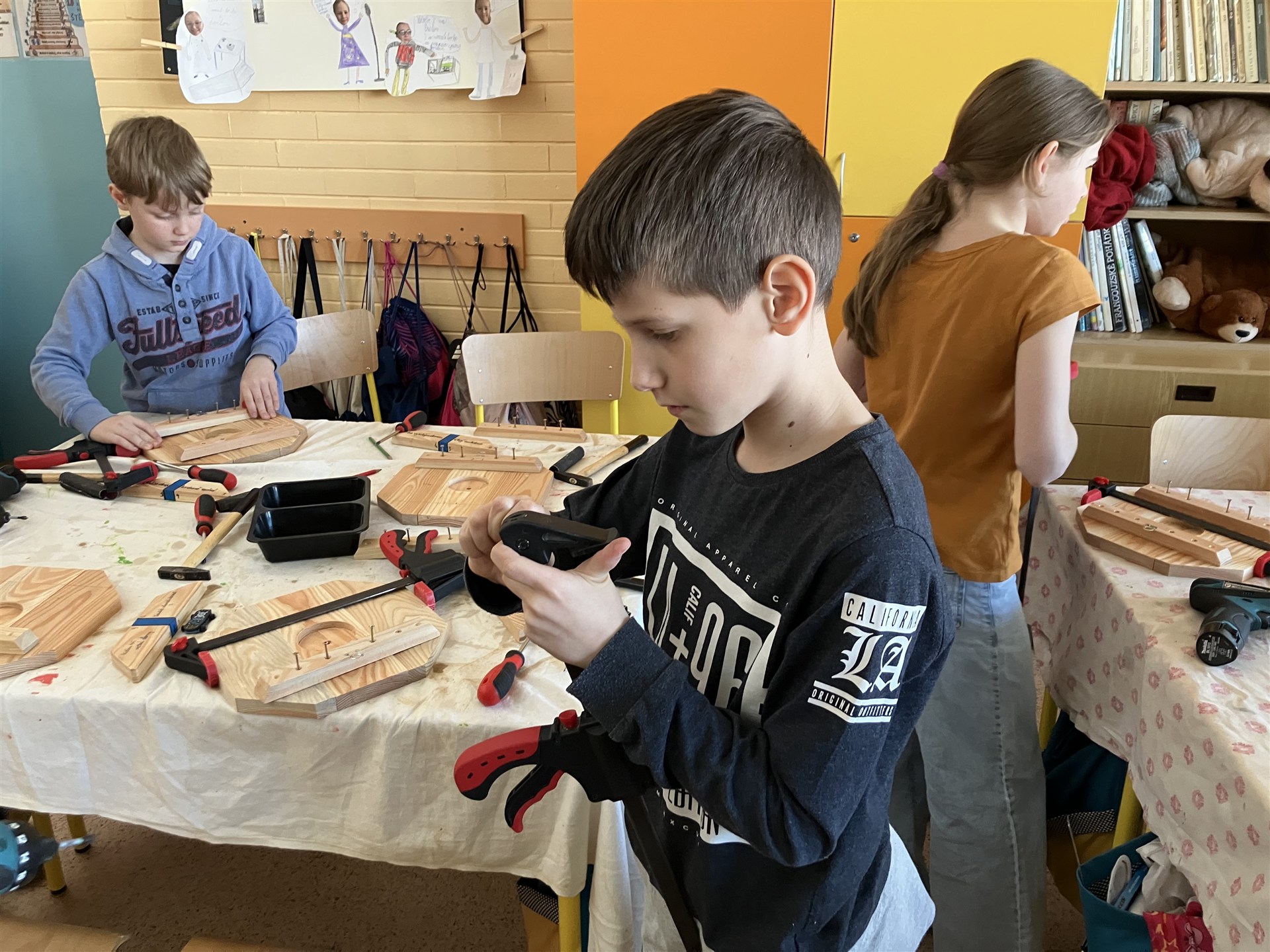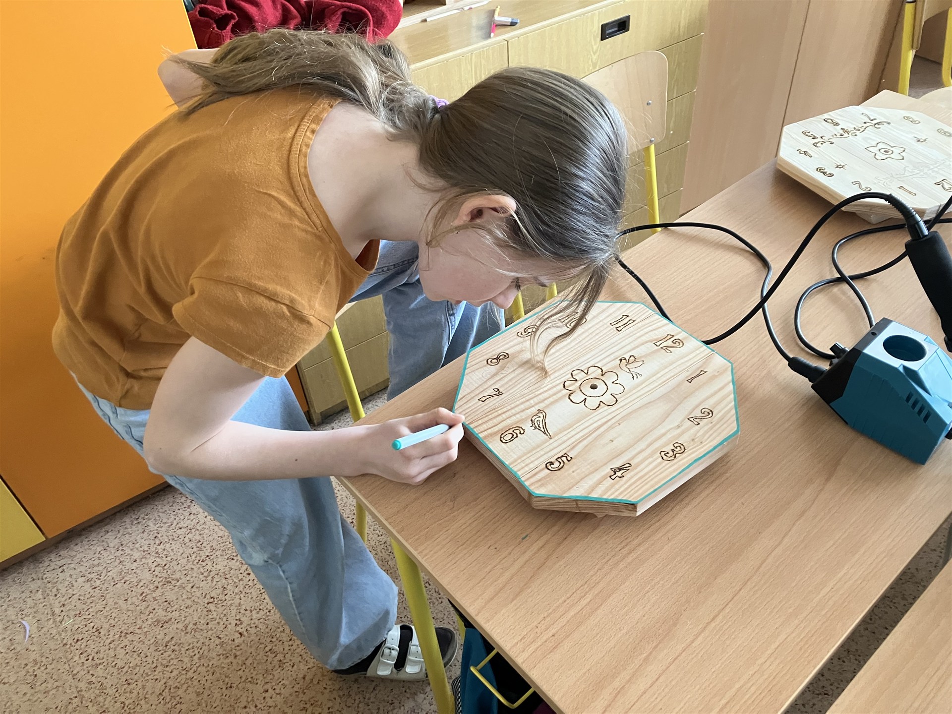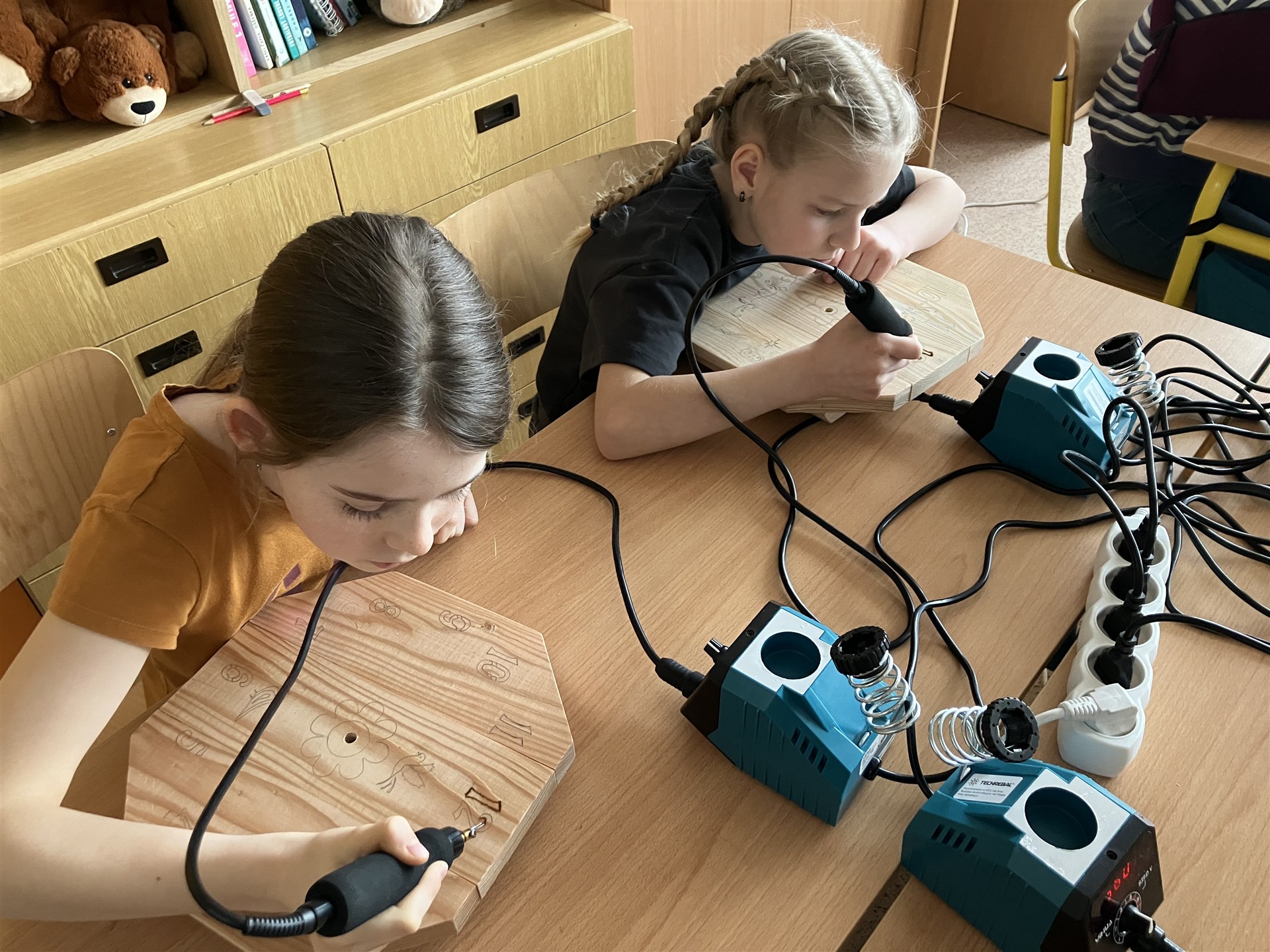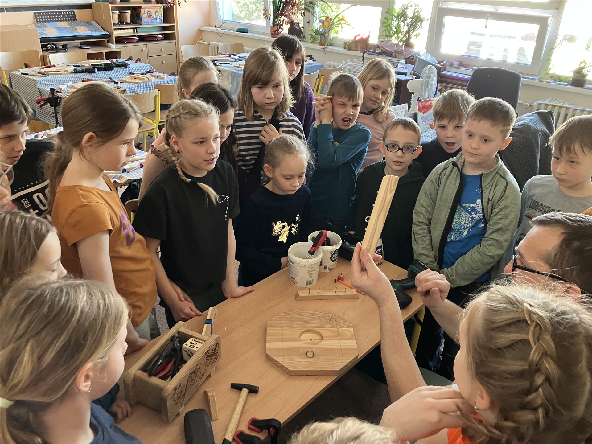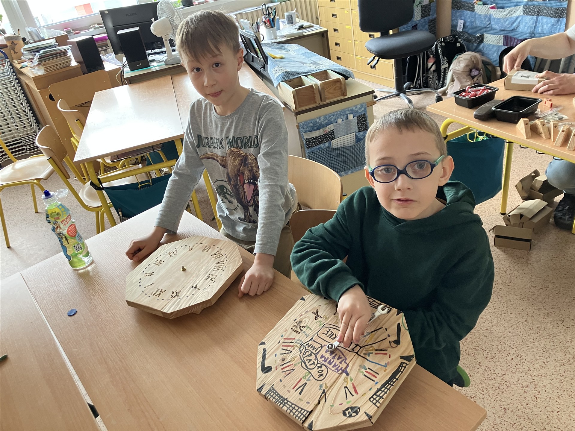 Ve středu 1. 4. 2026 přijel za dětmi ze 3. C pan truhlář Petr Kaněra, přivezl s sebou truhlářské nářadí a připravené jednotlivé díly z modřínového dřeva na výrobu hodin. Pod jeho vedením si žáci díly spojili, nazdobili, vložili si hodinový strojek i s baterkou, připevnili si hodinové ručičky. Děti se k dílu stavěly velmi pozorně, zodpovědně i šikovně, všechny si přály, aby se jim dílo povedlo a aby se jejich hodiny líbily, protože se těšily, až je doma zavěsí. Práce se dřevem se nám všem líbila a mnoho nás naučila. Mgr. Kamila Dariusová